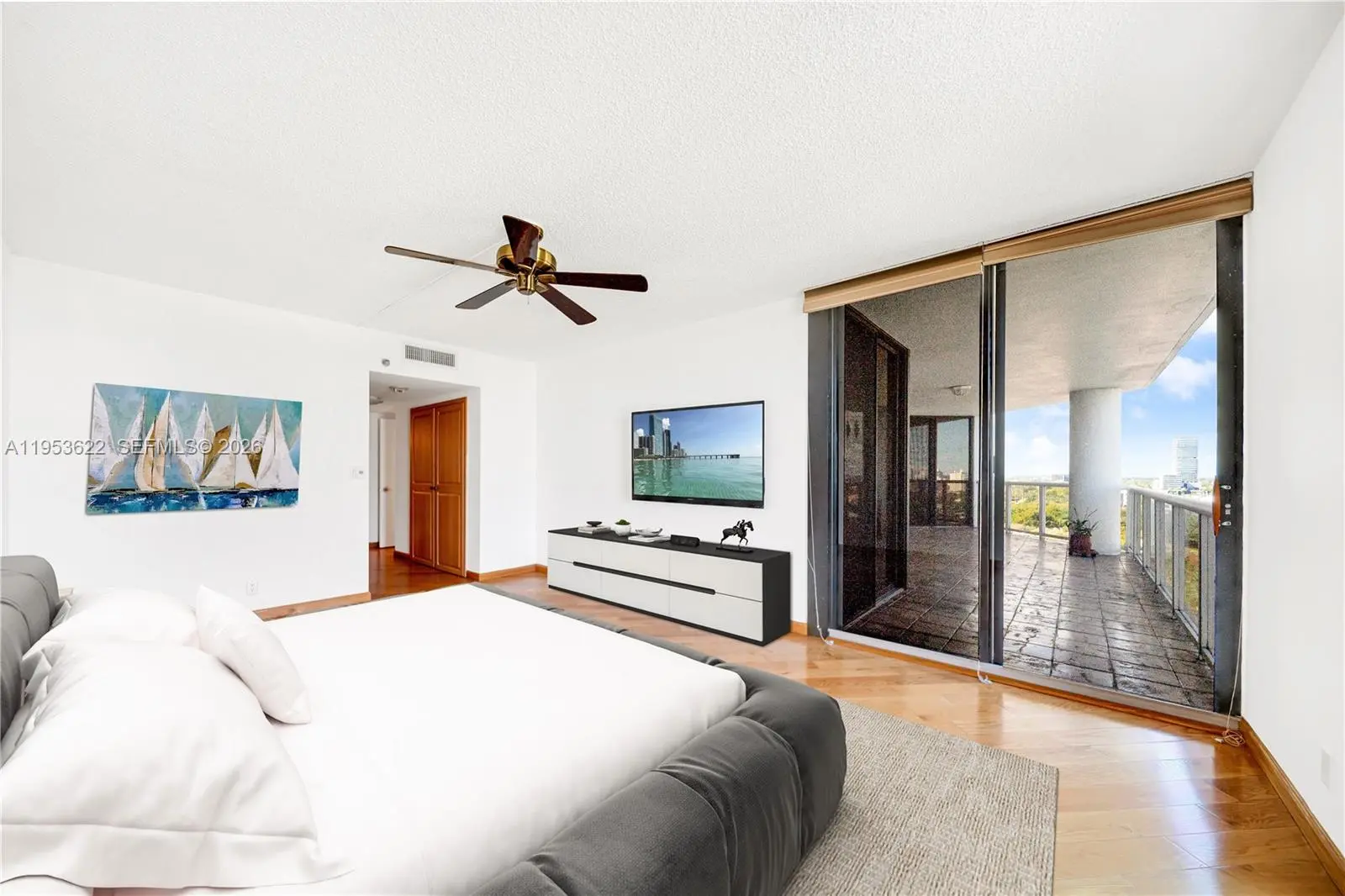 Beautiful condo in Harbor Tower Residences. Set within the exclusive, guard-gated community of Aventura Waterways, this beautifully residence at Harbor Towers delivers space, and light. Offering 2 bedrooms, 2 baths, and 1,820 square feet, third bedroom open to the living room, can be easily converted and closed off for third bedroom. Seller will cover expense of putting the wall and door to convert into third bedroom. Oak wood throughout, the home features a bright, flowing layout ideal for both everyday living and entertaining. A generous 350-square-foot balcony overlooks the tranquil canal. The kitchen opens to a casual breakfast area, while a separate laundry room adds practicality. Floor-to-ceiling windows and sliding glass doors in every bedroom create a seamless indoor-outdoor connection and fill the home with natural light. The primary suite includes a spacious walk-in closet and an elegant bath with dual sinks, soaking tub, glass shower, and bidet. Harbor Towers offers a true resort lifestyle with an infinity-edge pool, spa, tennis courts, fitness center, clubhouse, BBQ area, and waterfront walking paths. Residents enjoy a secure lobby, concierge services, and complimentary valet. The unit comes with two covered parking spaces and a storage unit. Perfectly located near Aventura Mall, shops, restaurants, parks, and top-rated schools, houses of worship, this residence combines comfort, sophistication, and convenience in one exceptional setting.