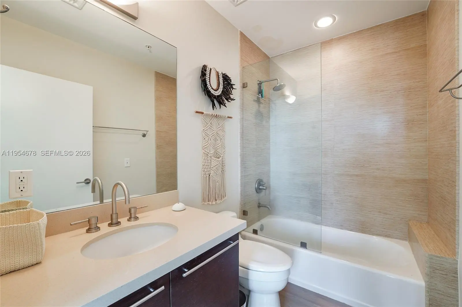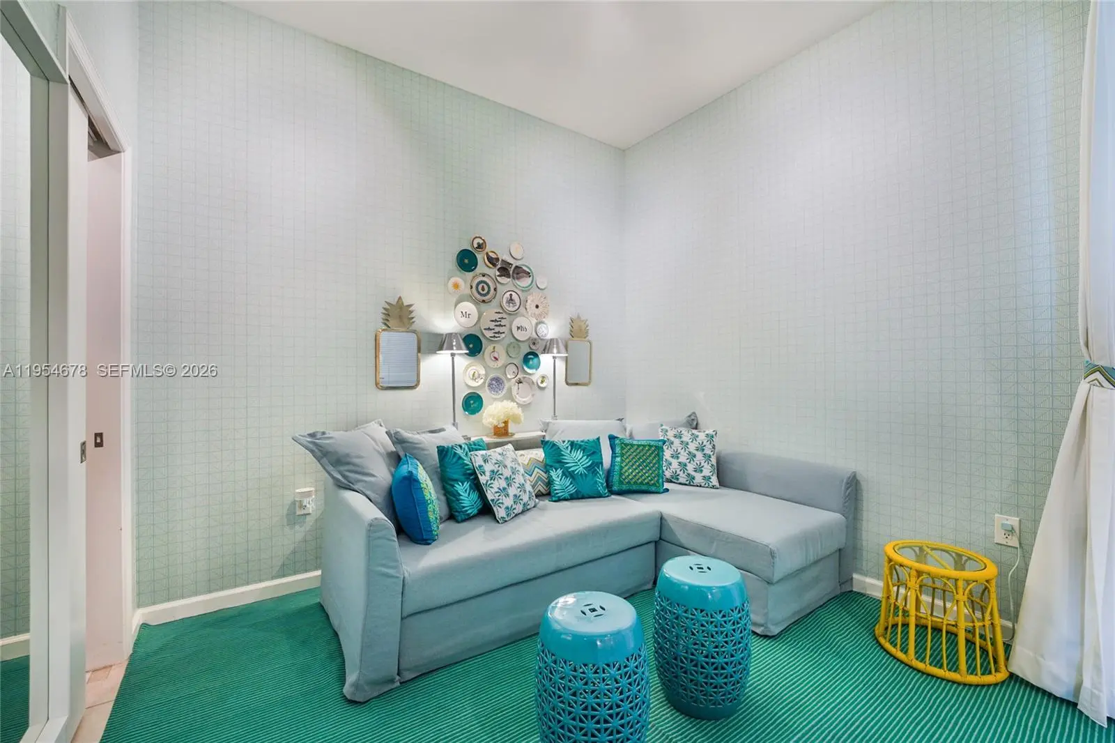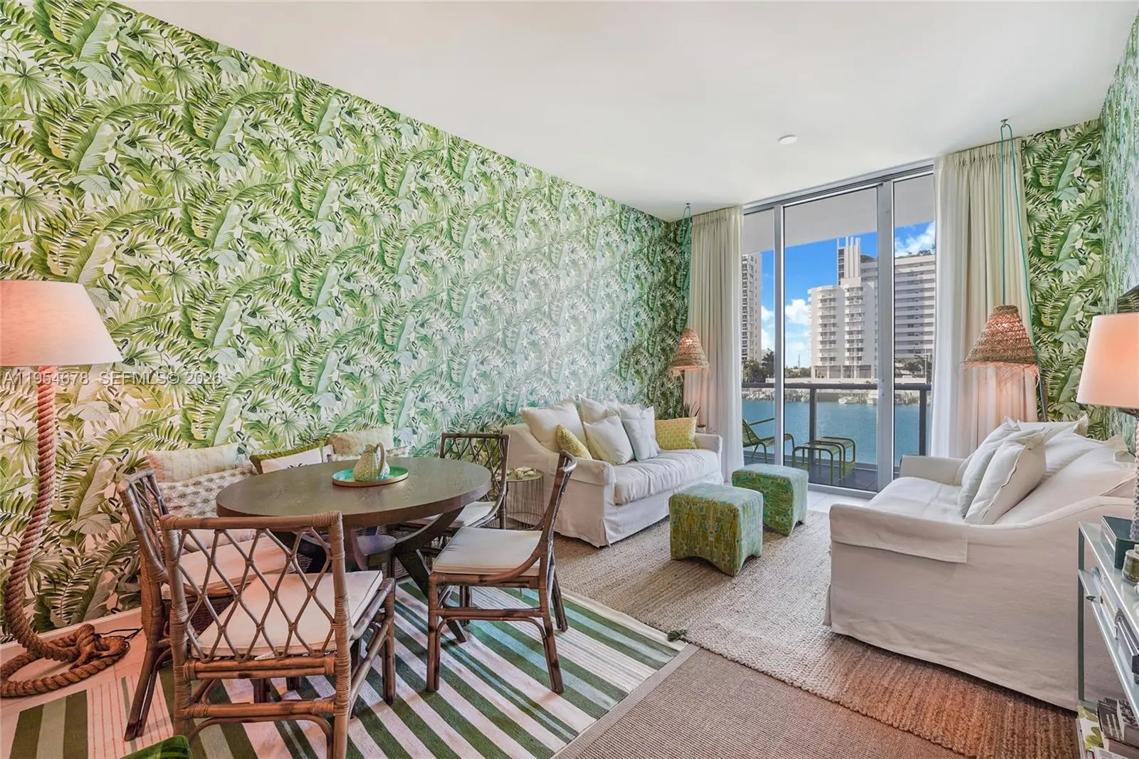 Furnished 1-bedroom, 2-bath residence with den in a boutique waterfront luxury building in North Bay Village. Enjoy bay views and spectacular sunsets from this well-designed unit featuring high ceilings, excellent flow-through layout, and ample closet space. The primary bedroom includes a walk-in closet; the den offers its own closet and flexibility for office or guest use. Modern European kitchen with stainless steel appliances and quartz countertops. Washer and dryer in unit. Eloquence on the Bay offers resort-style amenities including private marina, tennis court, half basketball court, EV charging stations, pool and jacuzzi, fitness center, and meeting/party room. Prime location just minutes from the beach, Midtown, Downtown Miami, and Brickell.