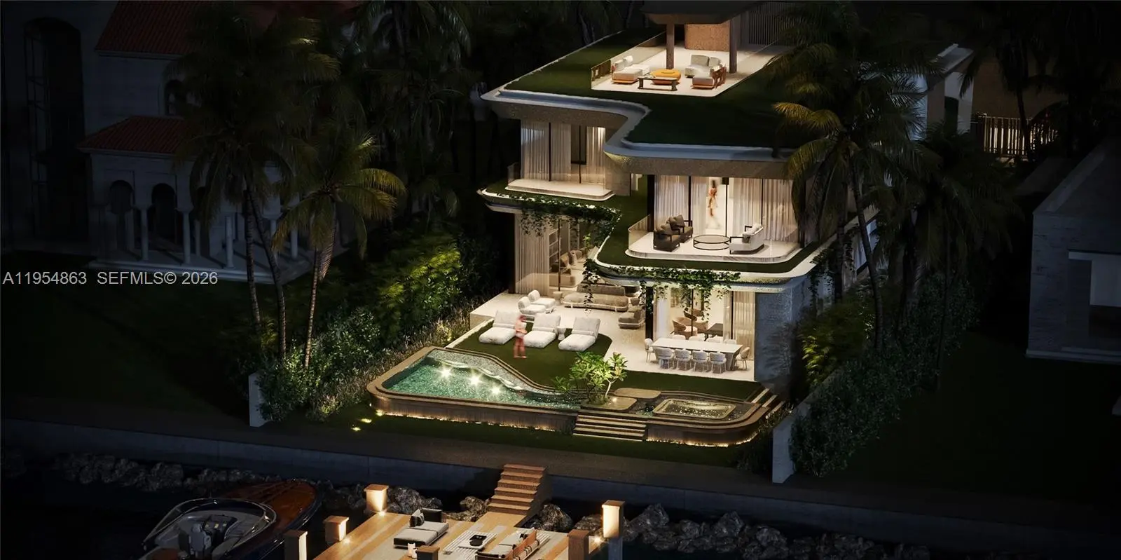 This rare architectural masterpiece by DOMO Architecture is set for completion in April 2026 (updated January 2026) Set on a 10,500-square-foot lot with 60 feet of prime water frontage, the property delivers spectacular downtown views and breathtaking sunsets. The property boasts 6 bedrooms, 6 full and 2 half bathrooms, and 5,750 square feet under AC. The home is a fully automated smart residence, offering effortless control of lighting, climate, audio, security, and window treatments at the touch of a button and includes a 500 square foot garage , a 500 square foot private dock, and a covered rooftop terrace with unbeatable views. Located within the prestigious, guard-gated Hibiscus Island / Palm Island community, residents benefit from 24-hour security provided by the Miami Beach Police. The island lifestyle includes tennis courts, basketball courts, a children’s playground, and expansive green spaces, creating a true neighborhood feel. Perfectly positioned between South Beach, Downtown Miami, Design District, Coconut Grove and Bal Harbour Shops, this home offers immediate access to world-class dining, luxury shopping, culture, nightlife, and beaches. Located on the MacArthur Causeway, direct access to i95 provides expedited travel all around the city avoiding many high traffic areas. For inquiries and showings text or call listing agent.