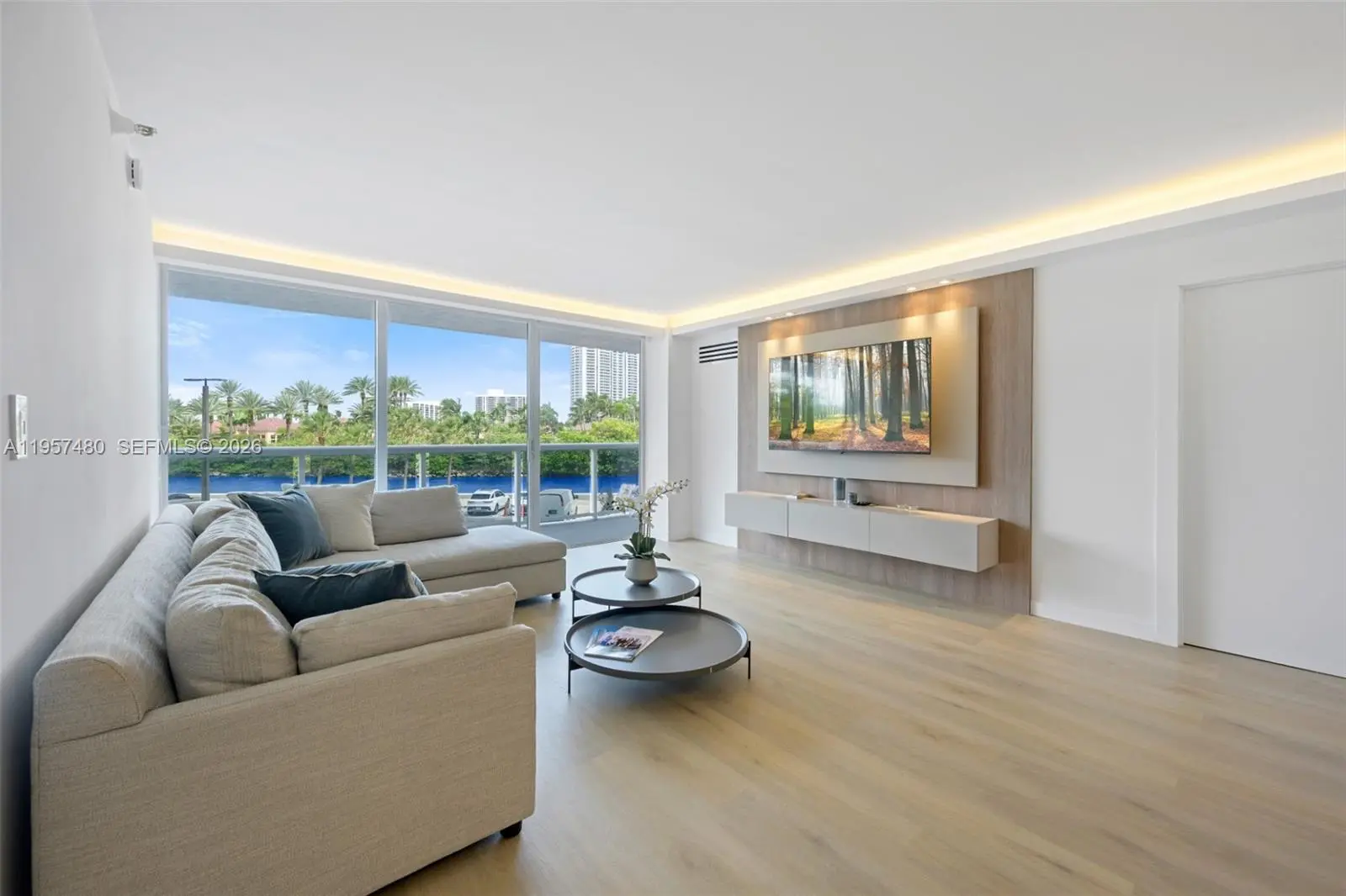 Step into luxury with this fully furnished and renovated apartment 2 Bed/2 Bath for rent, showcasing high-end finishes and meticulous attention to detail. The split floor plan ensures privacy, while abundant natural light and serene water views enhance the living experience from a spacious private balcony. The apartment features a modern kitchen with quartz countertops and brand-new stainless steel appliances. Both generously sized bedrooms and beautiful bathrooms. Residents benefit from 24/7 security, a front desk, valet service, a pool, and a gym within the building. This property is on the Aventura Circle" close to restaurants, beaches, Aventura mall, highways, and zoned for A+ schools. This unit combines modern elegance with a prime location.
