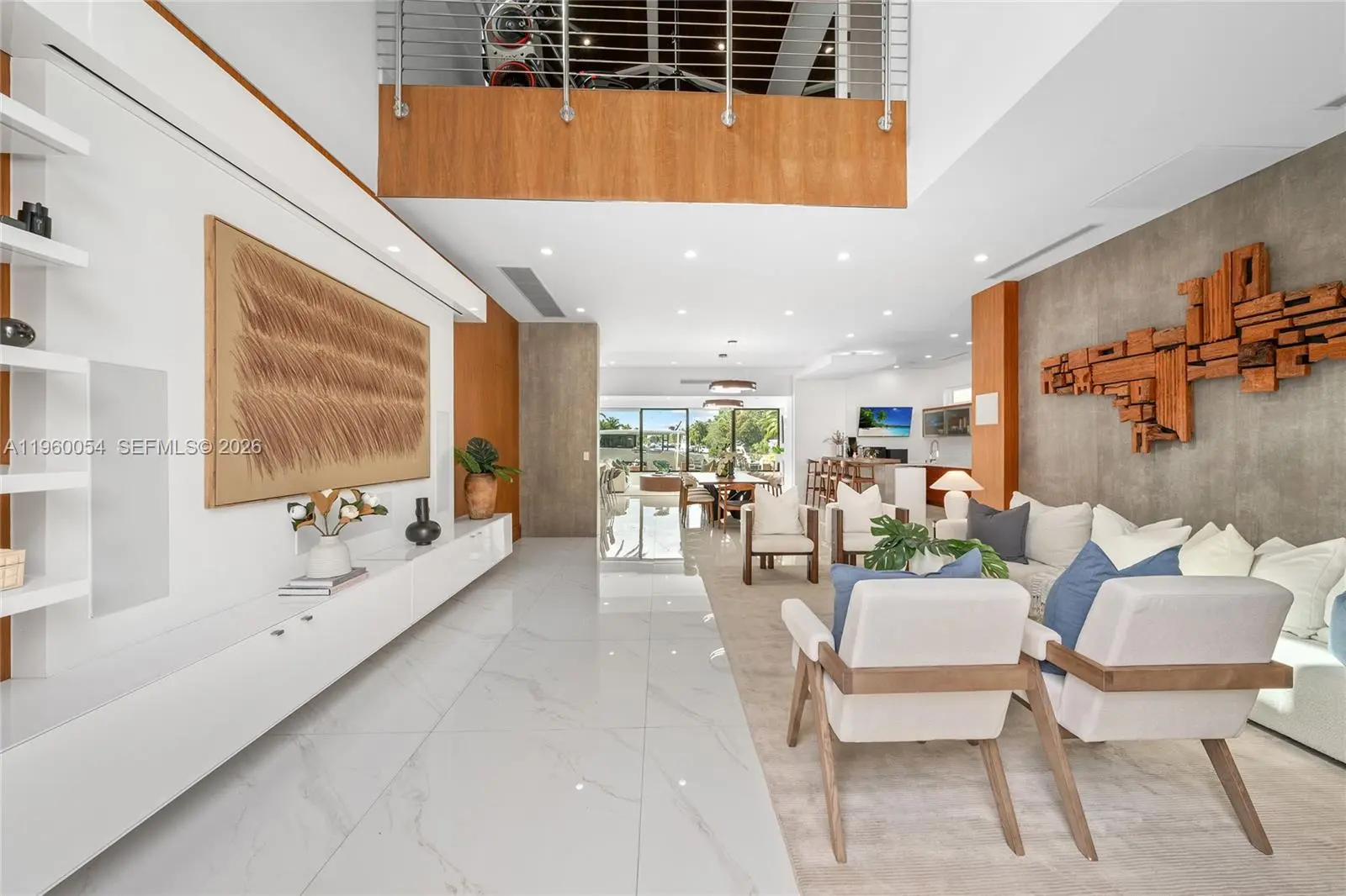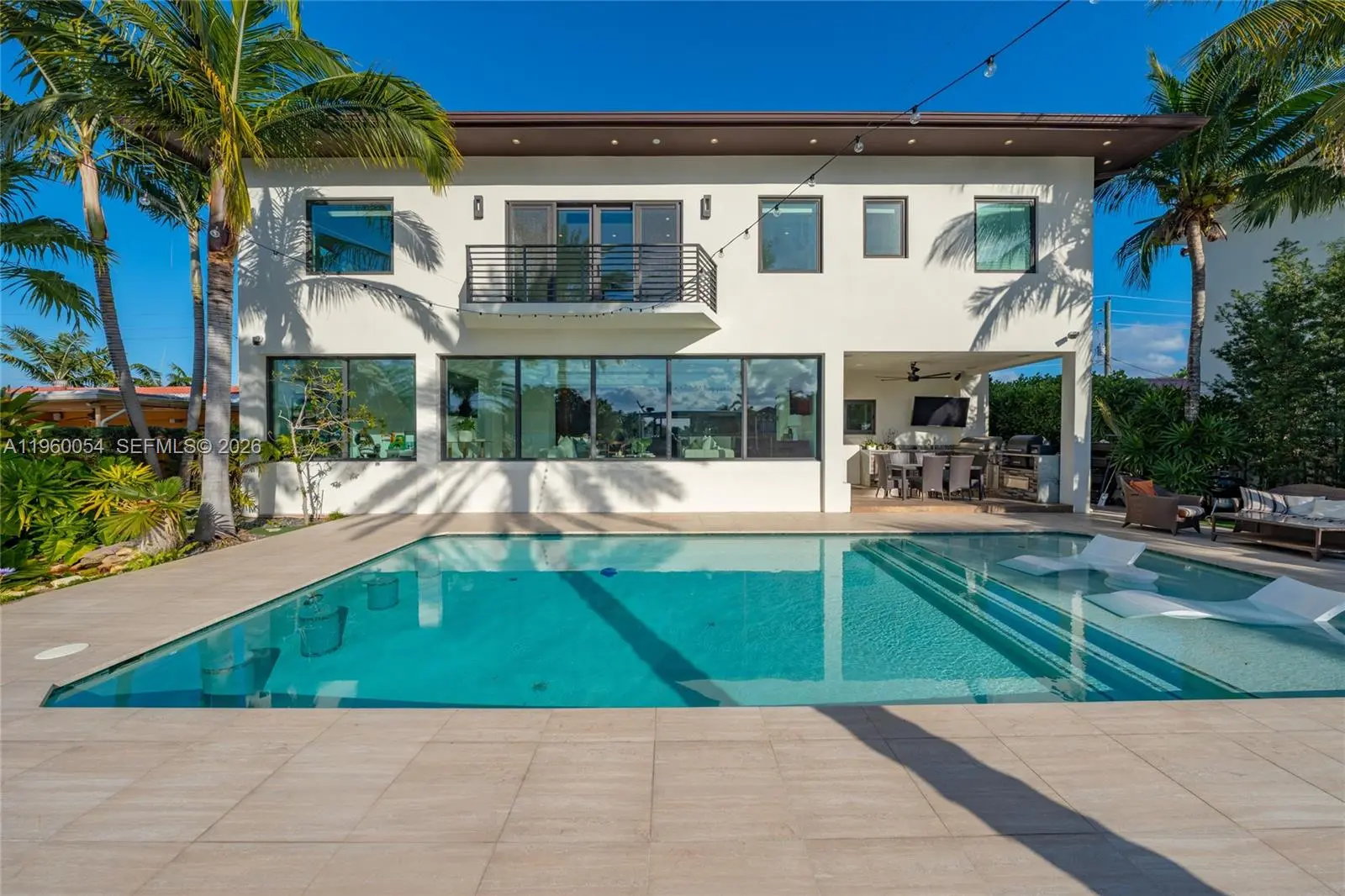 This exceptional waterfront residence is where modern design, thoughtful scale, and a truly rare view come together. Framed by floor to ceiling glass, the home opens to a wide, palm-lined water view that feels more like a private lagoon than a typical waterway delivering sunset views, privacy, and a sense of calm that’s increasingly hard to find. The interior is airy and refined, with clean architectural lines, warm wood accents, and seamless indoor/outdoor flow. Living spaces are designed for both everyday comfort and elevated entertaining, all oriented toward the water. The kitchen and dining areas connect effortlessly to expansive terraces, creating a natural rhythm between spaces. Outdoors, a resort-style pool, generous dock, and lush tropical landscaping set the stage for relaxed afternoons and unforgettable evenings. Whether you’re watching boats drift by, hosting friends at sunset, or enjoying the quiet luxury of space and light, this home offers a lifestyle defined by ease, beauty, and perspective. A contemporary waterfront home with a view that stands in a class of its own.