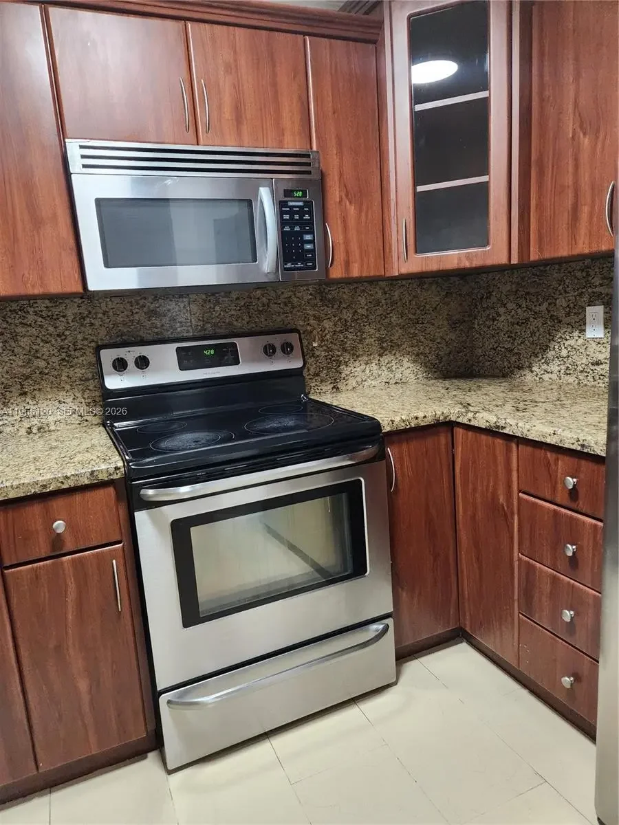 Great fully upgraded Townhouse in Sunset Harbour in Kendall! This comfortable 3 bedroom & 3 full bathroom offers a downstair Bedroom with a full bathroom, a very spacious living/dining area, updated kitchen complete granite countertops, wood cabinetry & SS appliances. The two bedrooms upstairs have a full bathroom each. Tile floor. Upgraded hurricane shutters. The low $95 per month HOA dues cover the common areas, such as pool, tennis, racket courts, & clubhouse. There are 2 assigned parking spaces right in front of unit, plus plenty of guest parking nearby. The backyard patio is wonderful & very private, near schools, shopping center, restaurants, major expressways. Great home for 1st time buyers! Come see it!