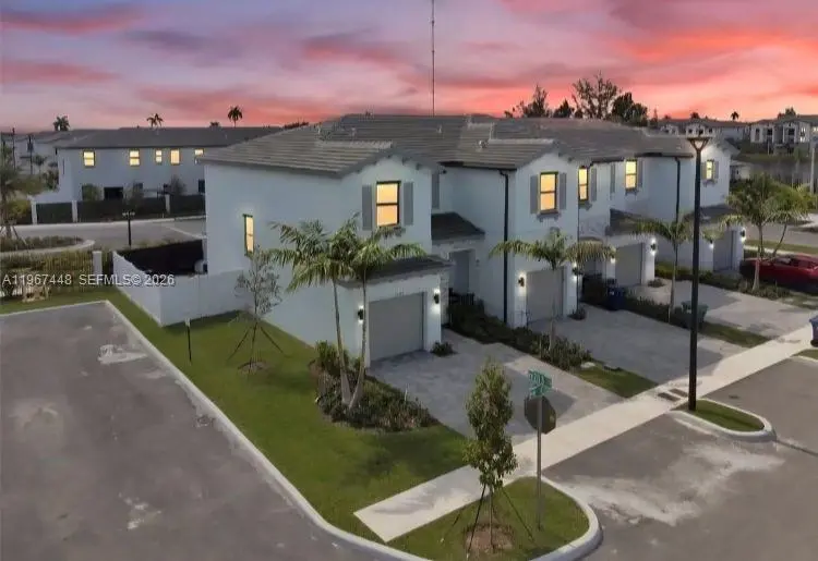 Welcome Home to this Luxurious New Construction Townhouse located in the most thriving city of Miami Gardens! This Amazing 1600 SqFT home boasts 3 spacious bedrooms, 2.5 bathrooms, 1 car garage and space for 2 additional cars on it’s brick paved driveway. While Packing premium Features that include an Open floor-plan kitchen with granite countertops, soft close shaker cabinets, Tile flooring, zebra window blinds, built in Smart Home System, and stainless steel appliances still covered under warranty. This corner lot model has the perfect backyard for entertaining family and friends while covered with a privacy fence all around. This gated community offers vacation style amenities as in a fitness center, pool and clubhouse