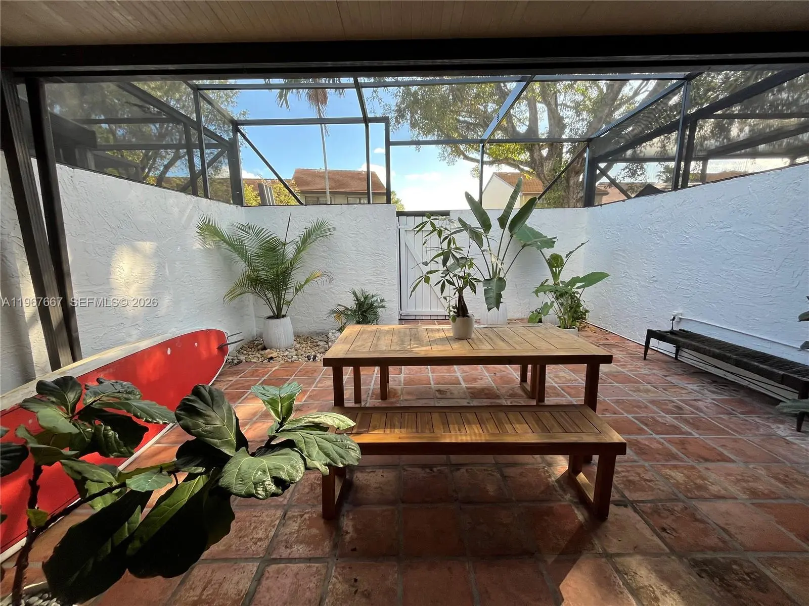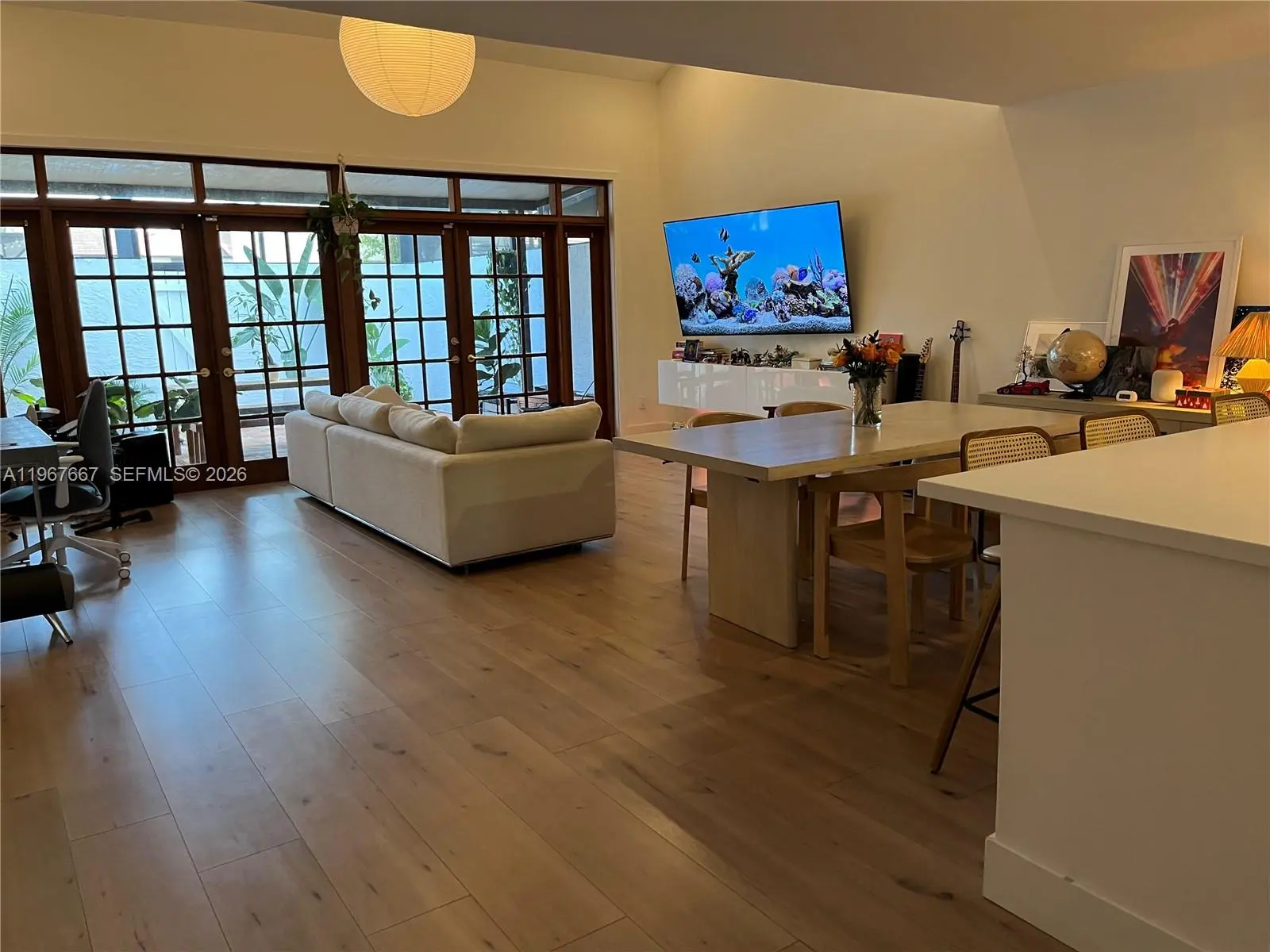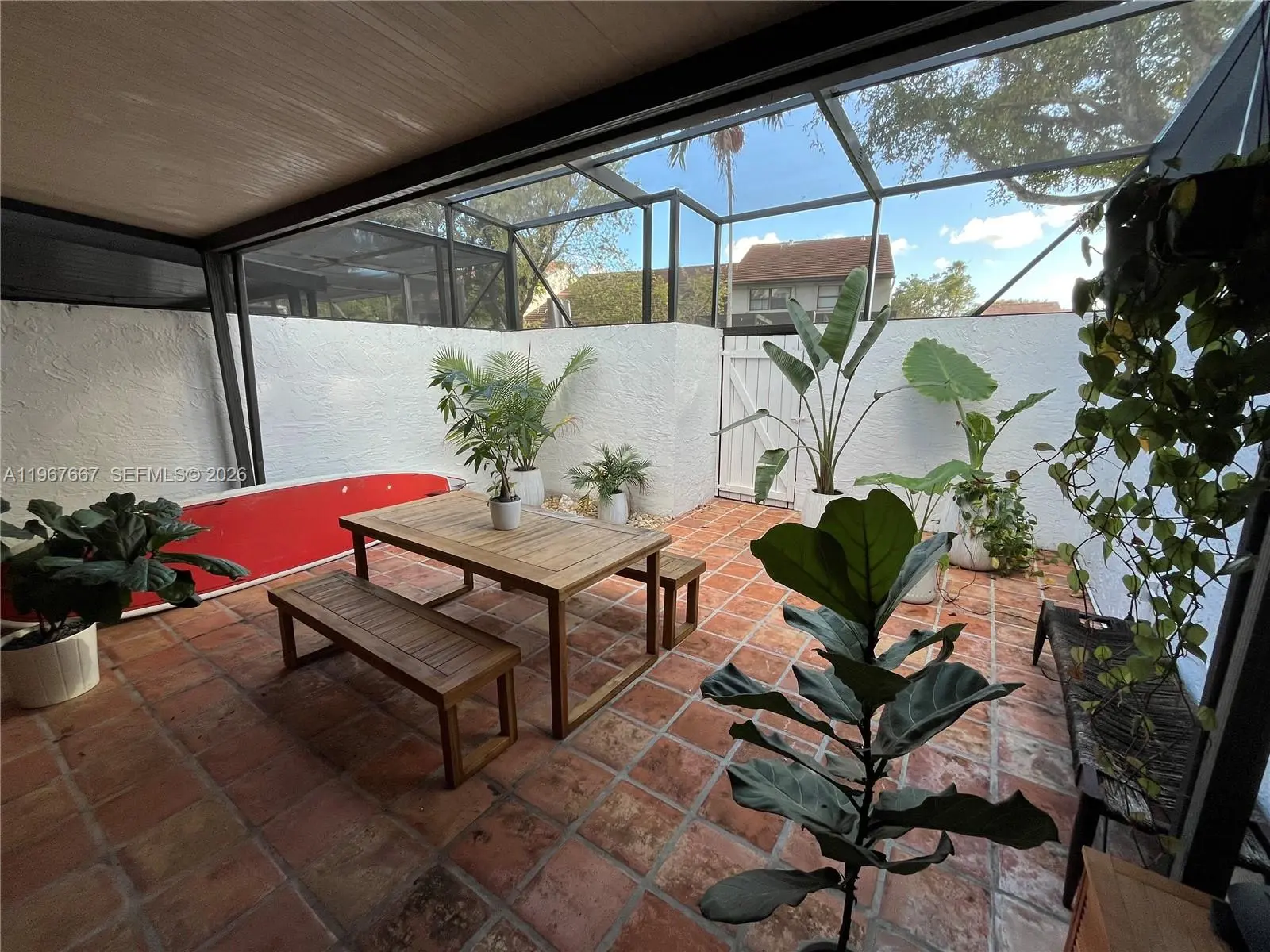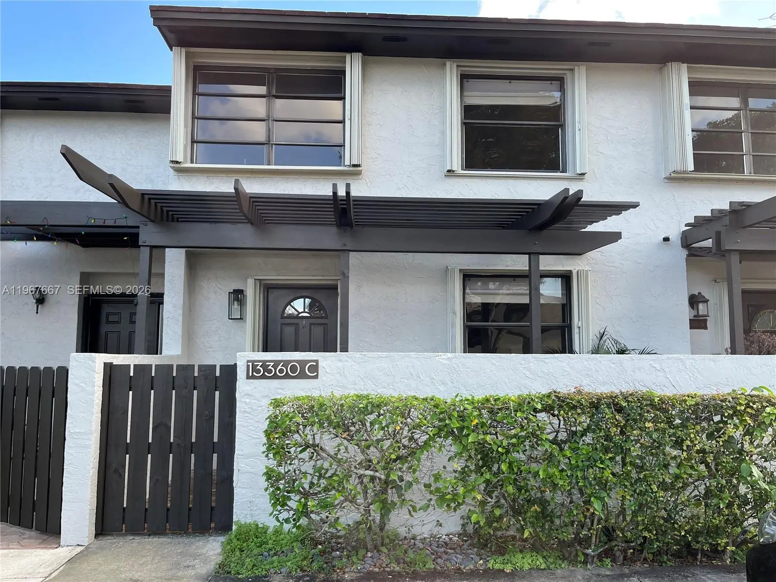 Welcome to Exclusive Calusa Point!. Amazing 3 bedroom, 2 bath townhouse impeccably remodeled filled with natural light and beautiful French doors opening to a large screened-in patio. The unit features open concept floor plan with high ceiling modern loft style main bedroom, wood like plank floors throughout, new kitchen cabinets and appliances including an induction stove. Custom closets throughout including the entryway and plenty of storage. Recessed / dimmable lighting throughout. New custom patio screen is elevated, new front gate and new front trellis. One bedroom and full bath on main floor. The unit has new exterior paint since December. Community offers 24 hour security gated entrance, swimming pool, child playground, tennis courts and basketball court. Excellent location near major highways, schools and shopping malls. Lot and Block that will qualify for all financing. Plenty of guest parking. This unit offers many upgrades, won't last!