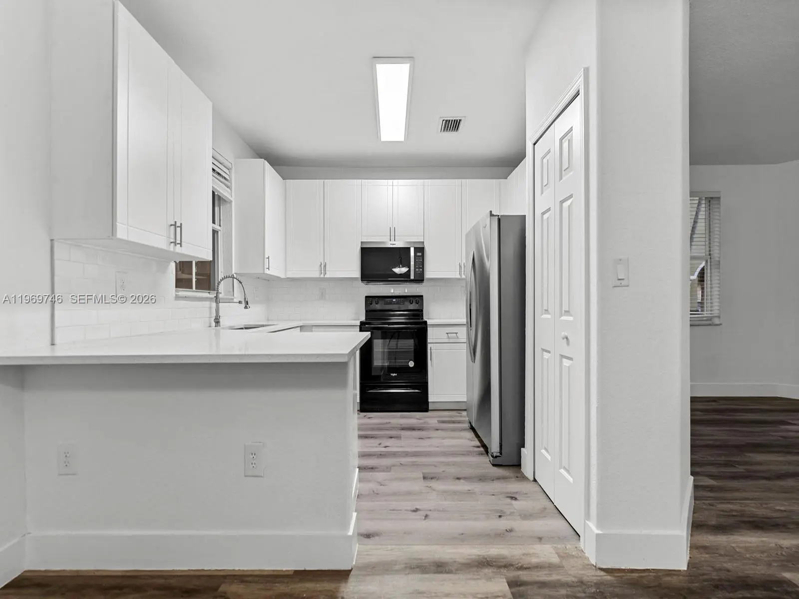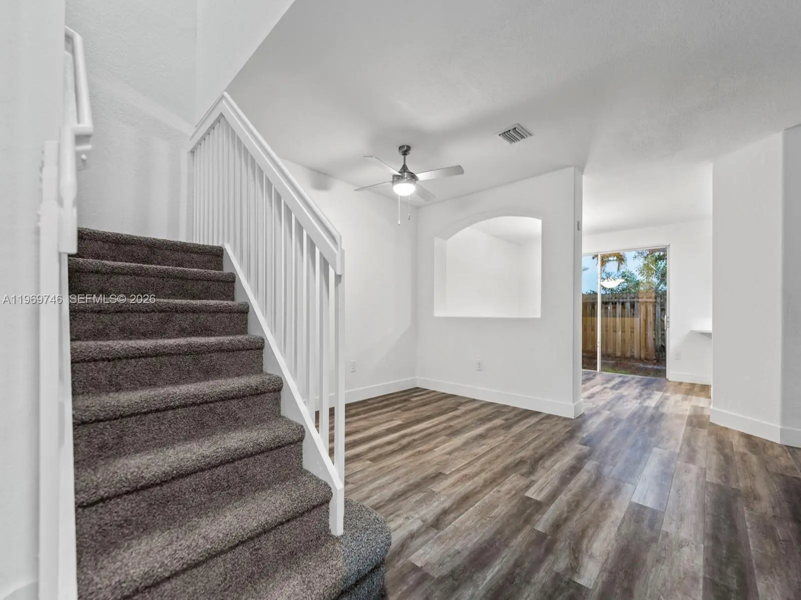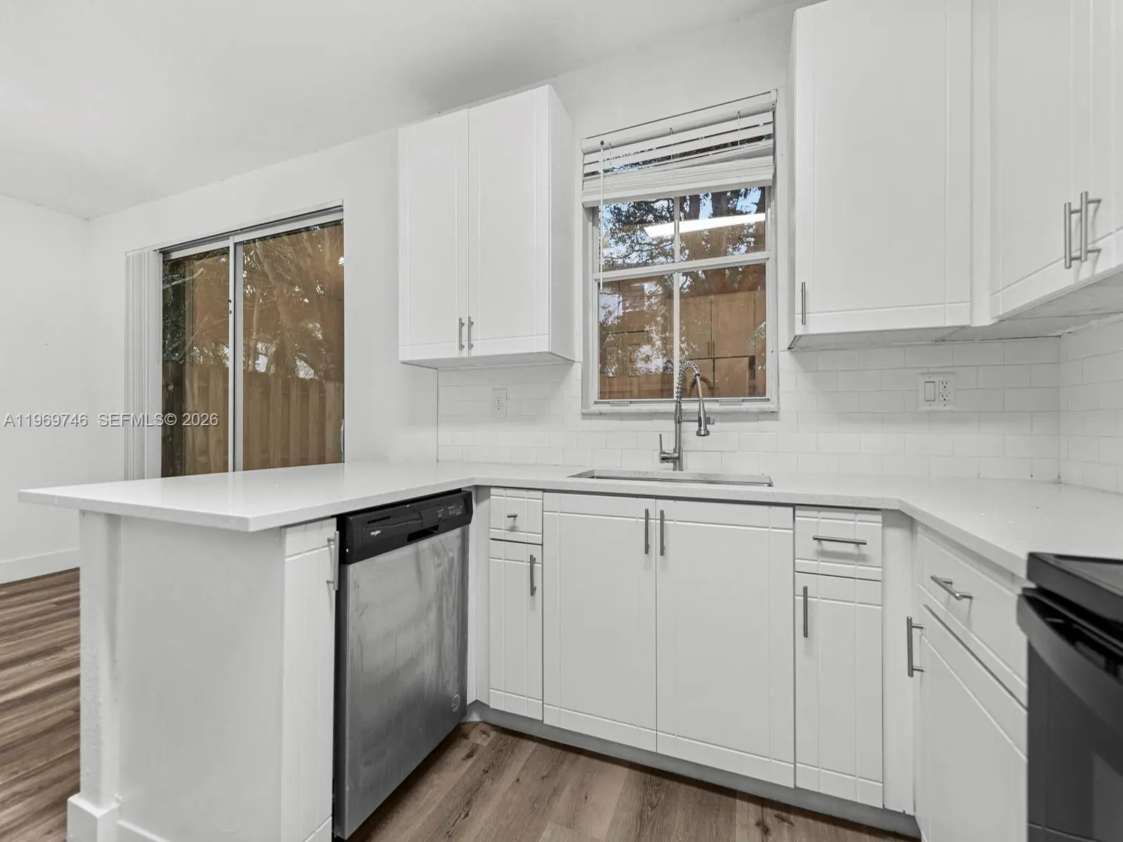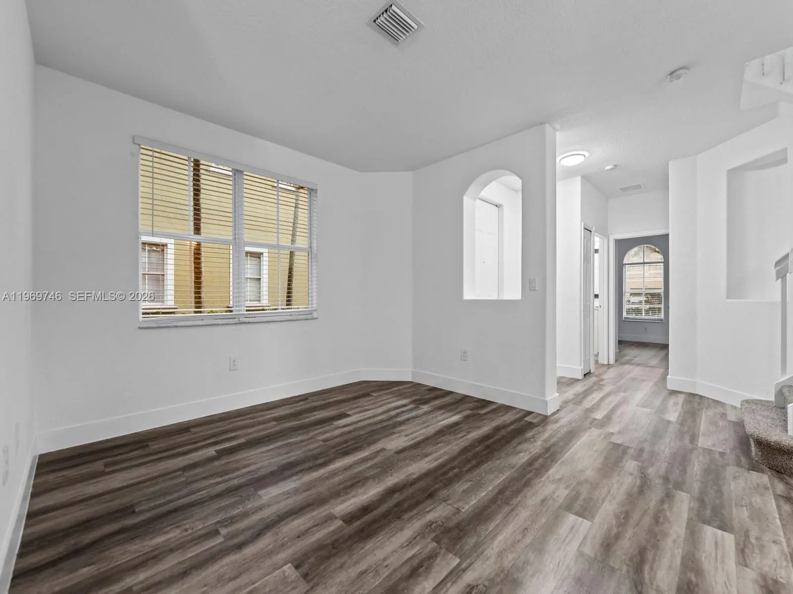 Welcome to your beautifully updated new home! This stunning 4-bedroom, 3-bathroom corner-unit townhouse offers the perfect blend of modern comfort and Mediterranean charm. From the moment you pull into the brick-paver driveway with its attached garage, you'll be captivated by the lush palm trees and striking architectural details. Step inside to discover a bright, airy, and open-concept floor plan flooded with natural light. The interior boasts crisp white walls, elegant arched cutouts, and updated flooring that flows seamlessly throughout the main living areas. The heart of the home is the pristine, fully upgraded kitchen, featuring sleek white shaker cabinetry, stainless steel appliances, a subway tile backsplash, and a convenient breakfast bar. The spacious living and dining areas open up through large sliding glass doors to a private, fenced backyard space—perfect for enjoying your morning coffee or entertaining guests. New HVAC with fresh, modern finishes and the added privacy of a corner lot, this move-in-ready gem won’t last long! Low HOA fees include cable and internet, no approvals required.
