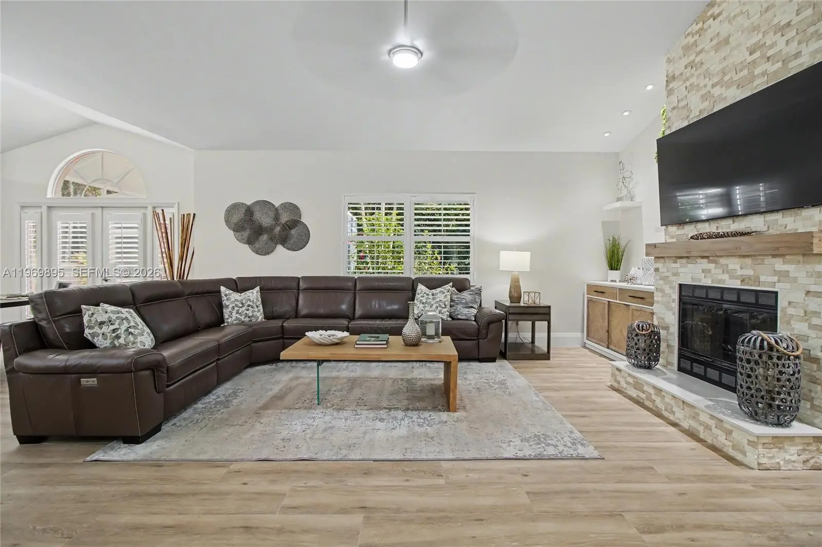 Exceptional estate offering 4 BR, 2 DENS, & 4 BA, set on 2.73 ACRES in highly Logan Woods desirable area, ideally located in the heart of the city while still offering privacy & space. This expansive residence is designed for elevated living with generous proportions & an open, welcoming, seamlessly connected layout. Interior highlights include a FULL THEATER RM with MOTORIZED RECLINERS (SEATS 6), striking CUSTOM-LIT GLASS ART FEATURE, FIREPLACE, CENTRAL VAC, SECURITY CAM SYS, INDOOR WET BAR, & WHOLE-HOME RO WATER SYS. The PRIMARY BA is beautifully appointed & includes a BIDET, while everyday functionality is enhanced by an IN-HOUSE LAUNDRY RM & OVERSIZED 2-CAR GARAGE. One DEN can easily convert to an add’l BR. A PRIVATE IN-LAW STE provides excellent versatility for guests or multigenerational living w/o disrupting the home’s overall flow. Outdoor living is truly resort-inspired, featuring a HEATED POOL & SPA within a SCREENED ENCLOSURE, a 2ND SCREENED PATIO for shaded lounge space, & an OUTDOOR SHOWER. Entertain effortlessly in the OUTDOOR KITCHEN beneath a GAZEBO with GAS COOKTOP, or gather around the PAVERED FIRE PIT AREA for evenings under the stars. The property is beautifully landscaped with AUTO SPRINKLER SYS & includes a STORAGE SHED for additional convenience. Offering acreage, luxury amenities, & a prime central location with NO HOA, this home presents a rare opportunity to enjoy estate living without sacrificing convenience.