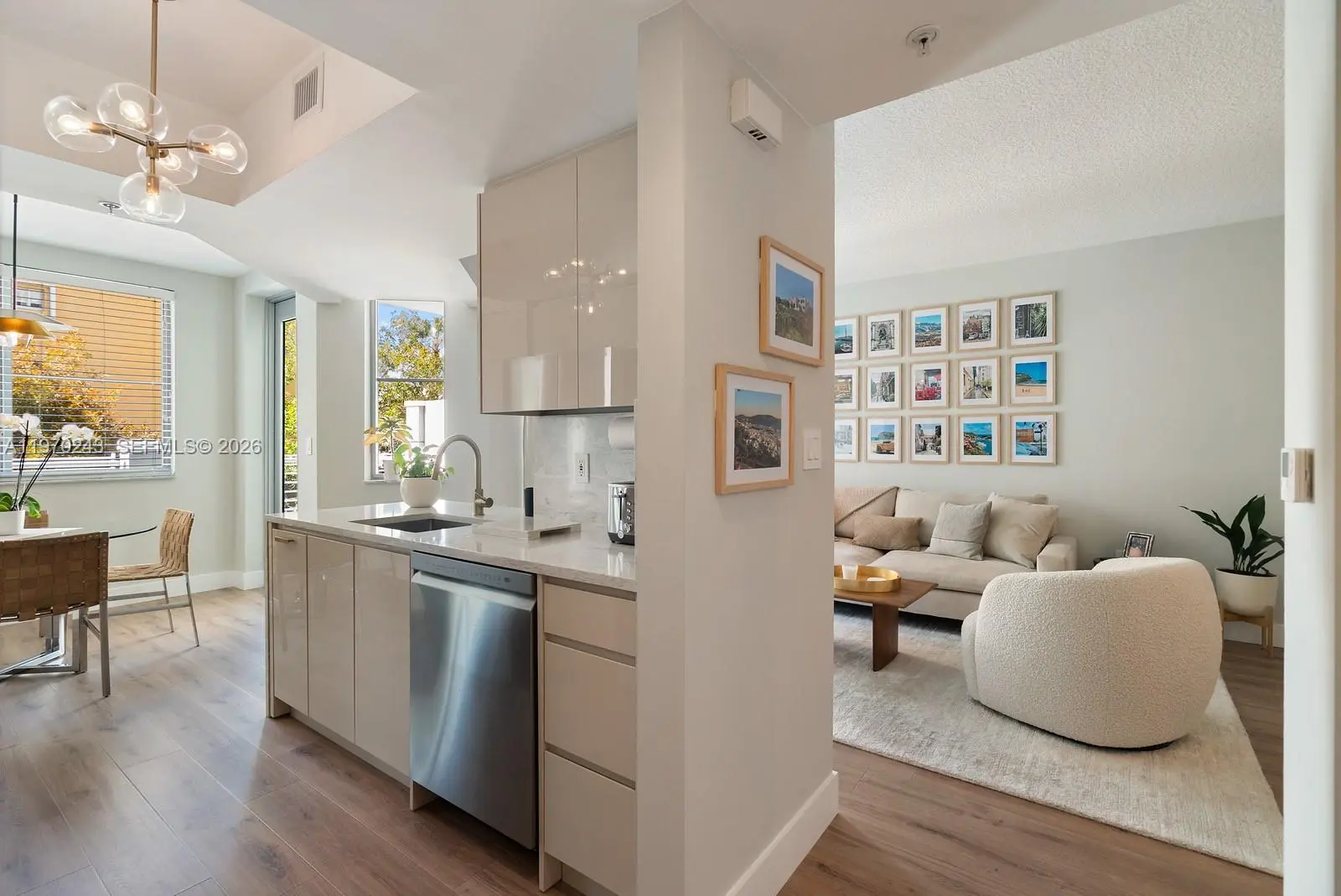 Fully furnished pied-a-terre in the Cosmopolitan Residences on South Beach. This sophisticated residence underwent a complete designer gut-renovation which delivered in 2025, including all new appliances, flooring, fixtures, and lighting throughout. Experience the sun-drenched living and dining area flow seamlessly into a contemporary kitchen appointed with custom high-gloss cabinetry and a waterfall-edge quartz countertop. The living room showcases custom built- in millwork and shelving leading to an expansive 31-foot-long terrace overlooking a tree lined street. A private oasis. The bedroom features a generous walk-in closet with an ensuite bath. Frameless glass walk- in shower with oversized porcelain tile. A full-service building known for its financial stability, they have a full-time manager, 24-hour security, and front desk staff. Amenities include a pool, jacuzzi, gymnasium, package room, and high-speed internet. Live in the coveted South of Fifth lifestyle steps to the beach, marina, park and world class dining.