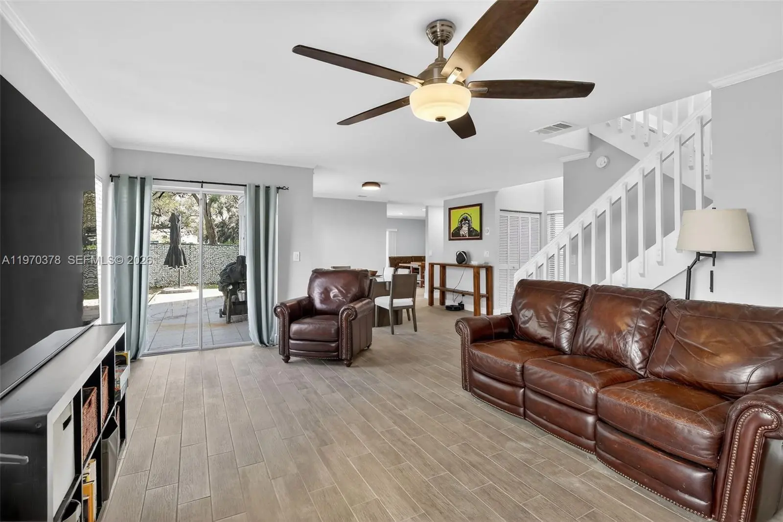 3BR/2.5BA townhome in the sought after Les Chateaux development of Hawkes Bluff showcasing exceptional 2025 upgrades. New roof (April 2025), full plumbing replacement (polybutylene removed Summer 2025), brand-new tile flooring throughout the main level, fresh interior and exterior paint, & smooth ceilings with popcorn removed. True Eat in Kitchen. Impact windows throughout most of the upstairs; Accordion shutters on remaining openings for peace of mind. Updated downstairs vanity adds a refined touch. Spacious layout with 1-car garage & large private fenced backyard ideal for entertaining or quiet retreat. A/C 2020. Community pool & playground. Prime location near top-rated schools, premier shopping, dining, the world-class medical center, and major highways.