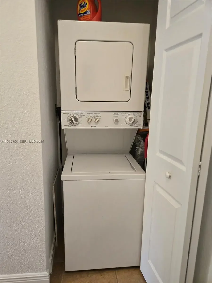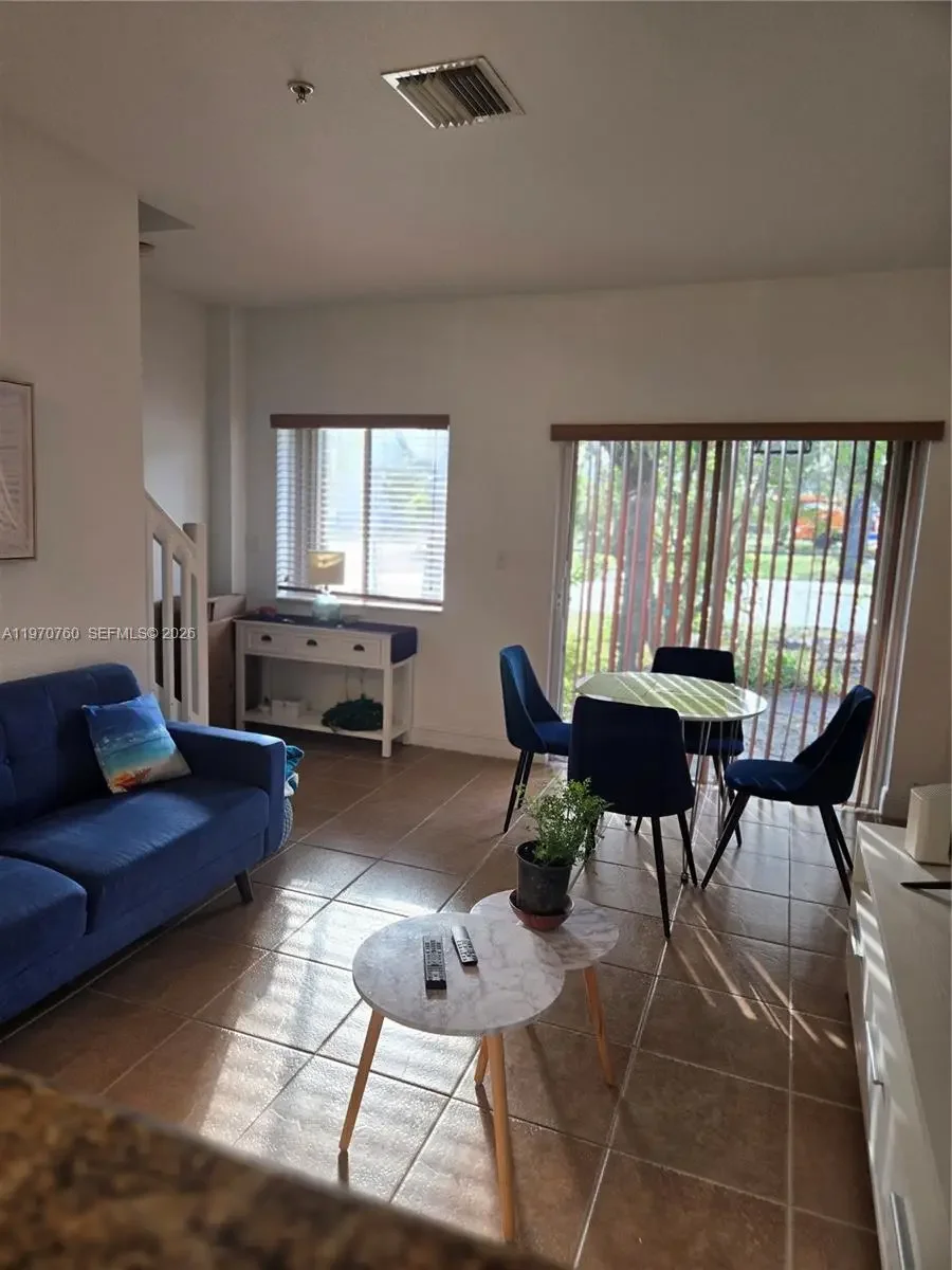 Excellent Location! Cozy 2-Bed, 2.5-Bath Corner unit 2 assigned parking spaces. Features granite kitchen, laminate & tile floors, washer/dryer inside, accordion shutters, and a private corner patio. Small quiet community in a top Miami area near highways, shooping and dining. No pets allowed. Move-in for March 01.