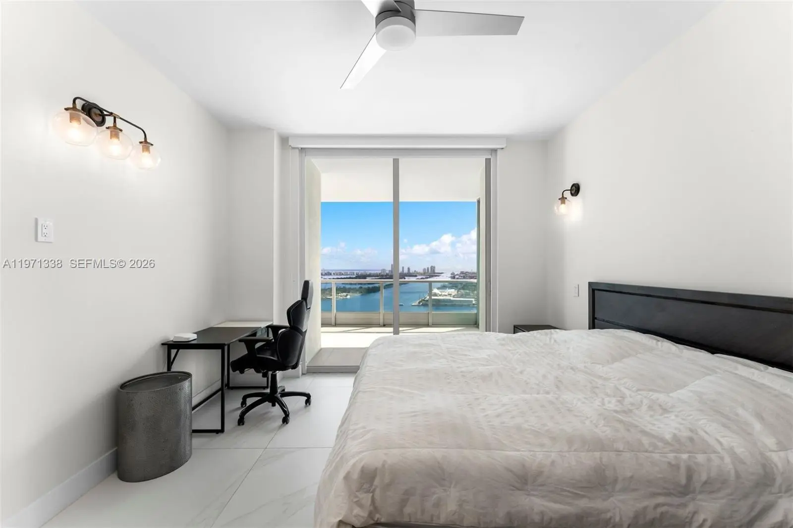A truly one-of-a-kind residence at 900 Biscayne, this exceptional apartment offers a floor plan found nowhere else in the building. Originally two neighboring units, the owner masterfully combined them to create a spacious 4-bedroom, 4-bath home spanning approximately 2,700 interior square feet plus three separate balcony areas. Fully remodeled with meticulous attention to detail, the residence showcases refined luxury throughout, featuring custom finishes, bespoke wood millwork, and thoughtfully designed custom cabinetry. Four-foot by four-foot Italian porcelain tile floors run seamlessly through the entire home, complemented by luxury lighting fixtures that enhance the modern ambiance. The chef’s kitchen is equipped with premium Sub-Zero refrigeration, a Miele stovetop, and elegant marble countertops, making it both beautiful and functional. All bathrooms have been completely updated with both master baths featuring marble tile, rainfall shower heads, and spa-inspired finishes. Enjoy spectacular sunrise and sunset views from three separate balconies, offering sweeping panoramas of Biscayne Bay, Downtown Miami, Port of Miami, and Miami Beach. Additional highlights include a private elevator entrance, separate service entrance, and the unit being offered fully furnished. Residents enjoy world-class amenities including a state-of-the-art gym, sauna, steam room, jacuzzi, cold plunge, resort pool, screening room, valet service—delivering an unmatched Miami lifestyle.