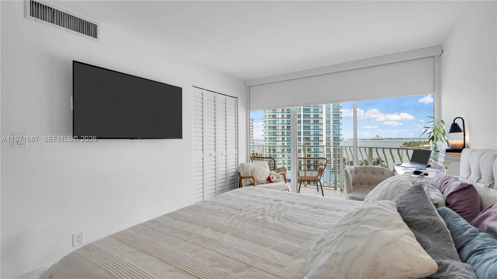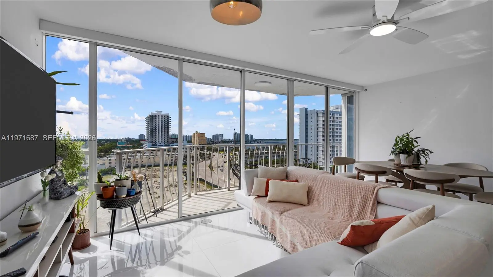 Stunning 2-bedroom, 2-bath residence at 7601 E Treasure Dr #1011 in the heart of North Bay Village. This modern unit features a sleek open-concept layout, within a year floor-to-ceiling completed remodeled, has new AC and new tank less water heater, showcasing breathtaking bay and skyline views. The contemporary kitchen is equipped with European-style cabinetry, quartz countertops, stainless steel appliances, and a spacious island perfect for entertaining. Enjoy glossy porcelain floors throughout, recessed lighting, and an in-unit washer and dryer for ultimate convenience. The expansive balcony offers the perfect space to relax and take in the water views and city sunsets. Located in a prime waterfront building just minutes from Miami Beach, Downtown, and major highways. Ideal for end-users or investors seeking luxury living in a rapidly growing area.