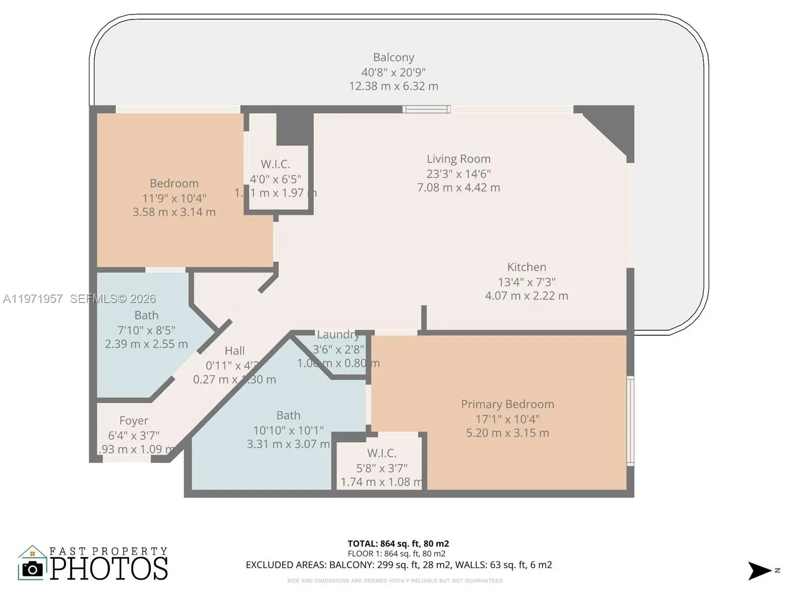 - 2 Bed, 2 Bath, 972 SqFt
