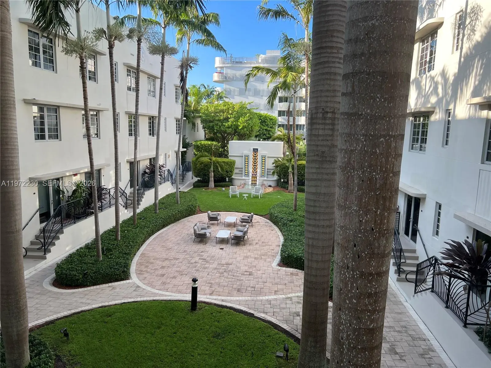 Top floor 1 bedroom apartment in the Restored Art Deco Governor building at Artecity. Great views overlooking courtyard & Art Deco fountain. Italian cabinets, stainless appliances, Washer/Dryer in unit, large casement impact windows, modern bath. Great amenities: includes beach service - 2 chairs & umbrella on the beach @ 21st St, heated pools, gym, game room, concierge, & valet parking including EV charging. Excellent location in the heart of South Beach, the cultural crossroads of art and fashion, beach life and nightlife. Close to Lincoln Road, Convention Center, Botanical Garden, Bass Museum, Collins Park, Bayshore Park, & Miami City Ballet. Comes with 1 Valet Parking Space, Price is for 12 mos, lease is minimum 6 months.