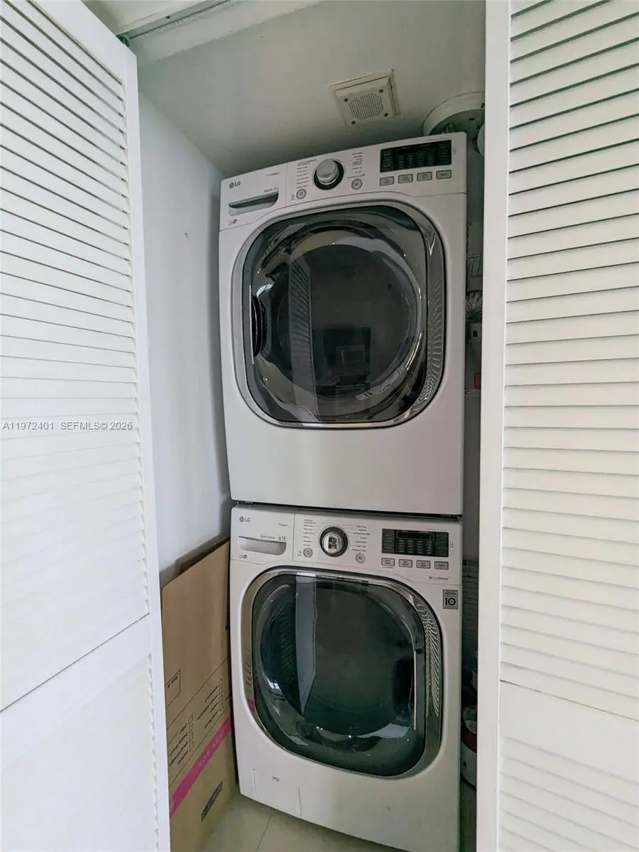 Take in sweeping views of the wide bay, the Miami Beach skyline, and passing cruise ships — truly breathtaking. Balcony access from both the bedroom and living area, tile flooring throughout, an updated kitchen and bathroom, impact doors and a spacious walk-in closet. Washer and dryer in unit for added convenience. One valet parking space included. The building offers 24-hour lobby security and a fully equipped exercise room. Centrally located near major highways, Metromover, and public transportation, and just minutes from the beach.
