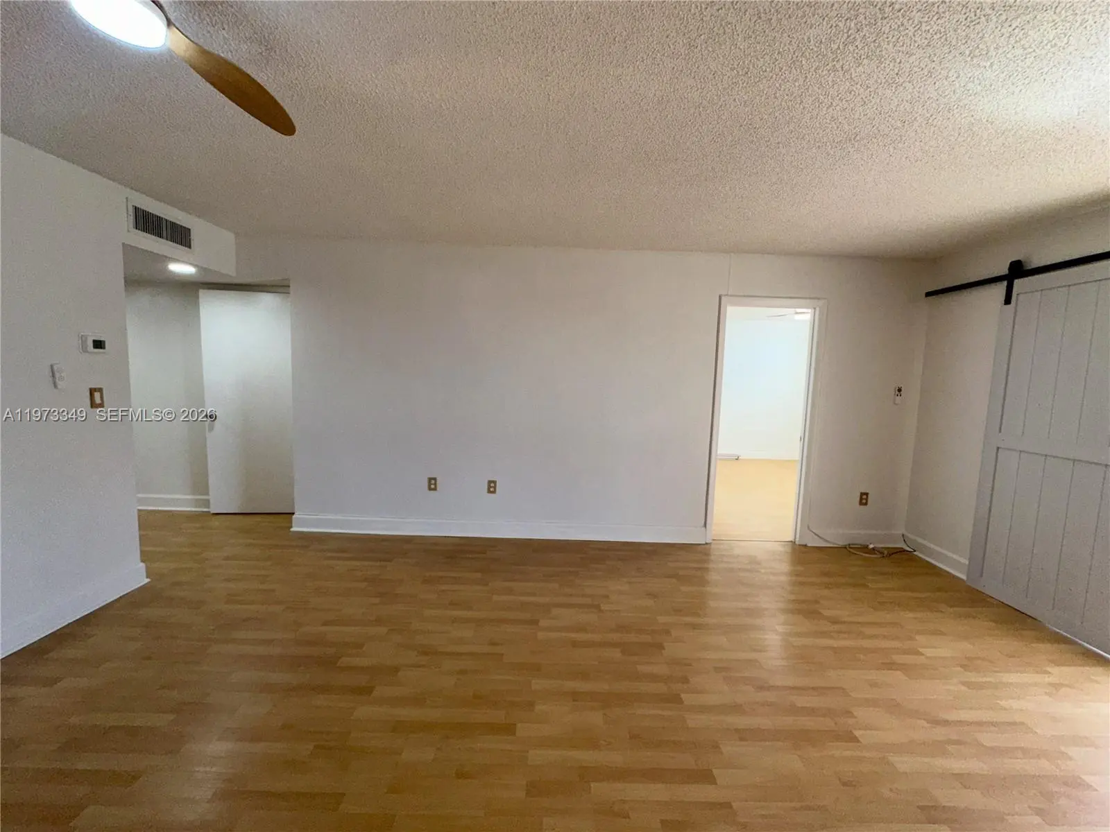BEAUTIFUL 1 BEDROOM + 2 FULL BATHS UNIT IN PRIME LOCATION! Spacious and bright layout featuring wood flooring throughout the living areas and a modern accent wood wall that adds warmth and character. Open living/dining area ideal for entertaining with sliding barn-style doors leading to a private balcony with open views and excellent natural light. The primary bedroom offers a generous layout with a large walk-in closet, and the unit includes two full bathrooms (both with bathtub) for added comfort and convenience. Functional kitchen with ample cabinetry and counter space.