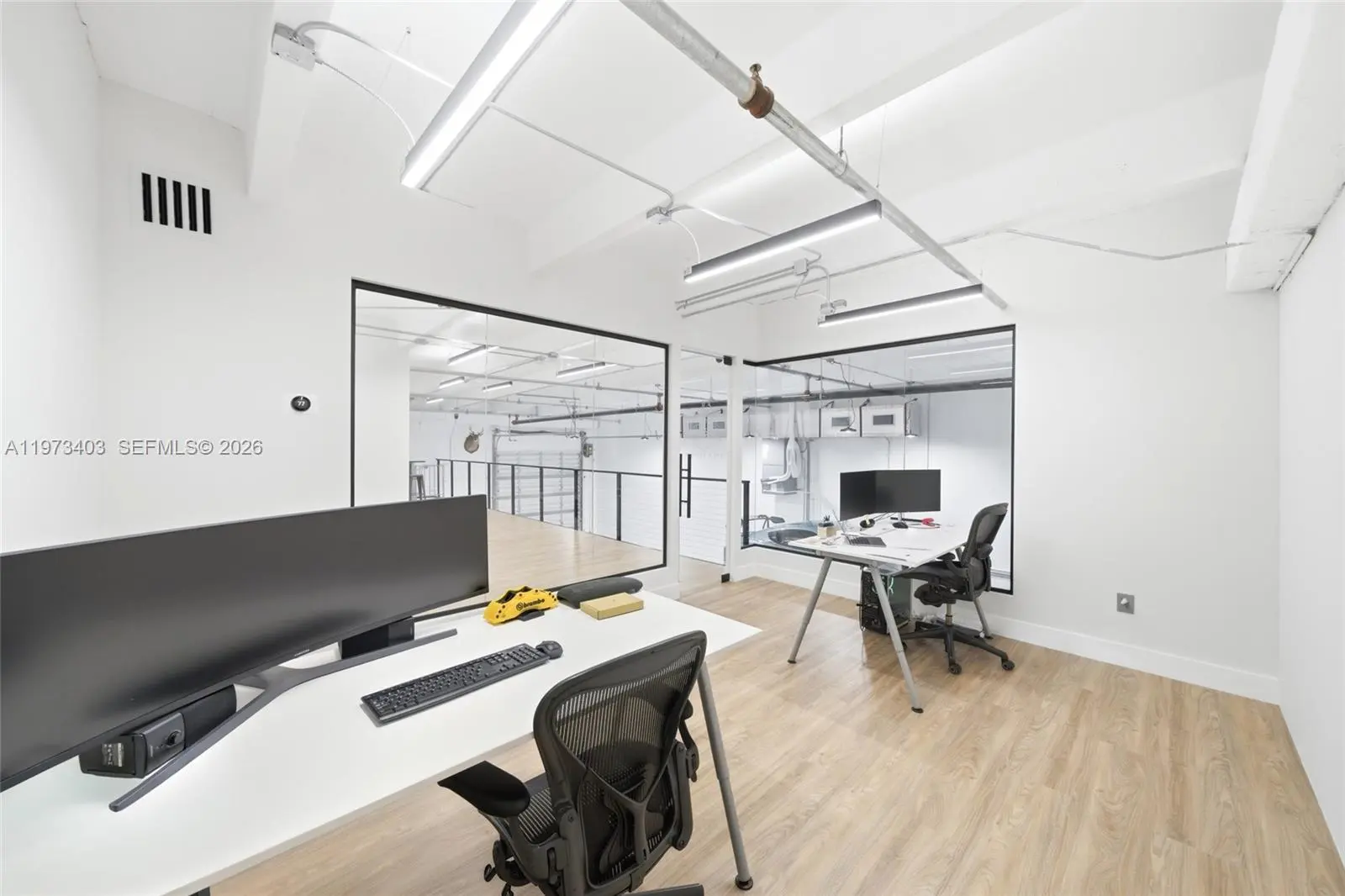 Rare, fully renovated warehouse opportunity offering 1,750 SF of thoughtfully designed space ideal for an owner-user, collector, or creative workspace. The property features new flooring throughout, a mezzanine area, full office build-out, kitchen, and full bathroom and half bathroom. The open warehouse layout allows for flexible use, and a car lift may be included in the sale price. A truly turnkey, one-of-a-kind industrial space located near Tamiami Airport, with seller financing available and limited inventory in this submarket.