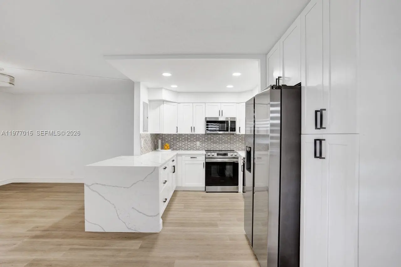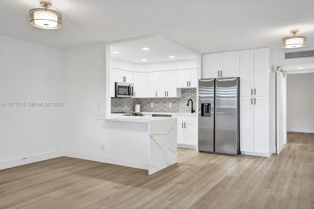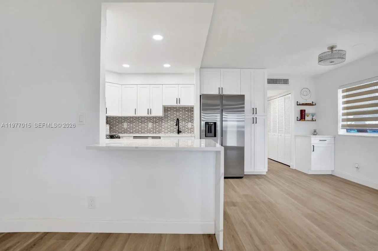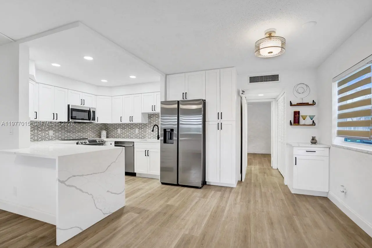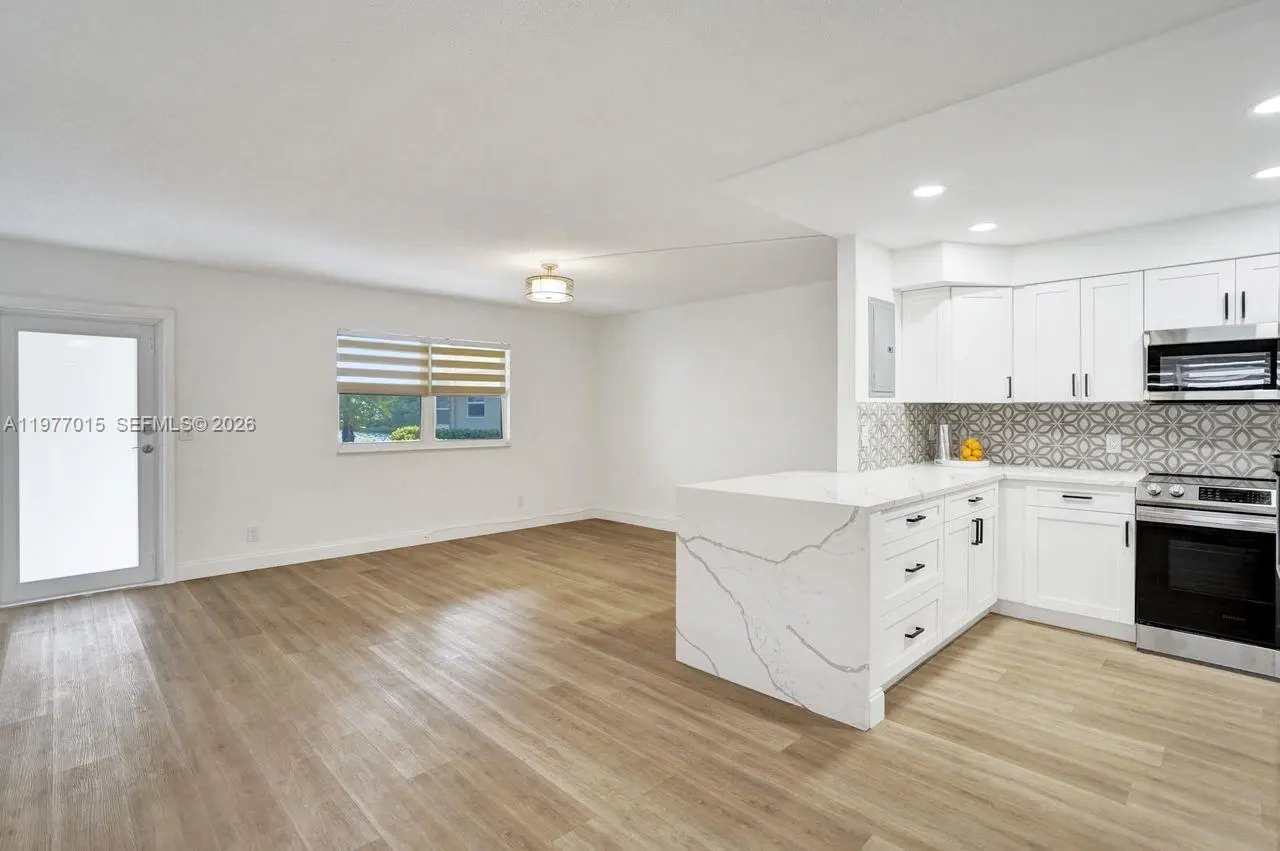 COMPLETELY REMODELED WITH IMPACT WINDOWS AND DOOR! Move-in ready 1-bedroom, 1.5-bath first-floor corner unit in the desirable Monaco section of Kings Point Golf and Country Club, a premier 55+ lifestyle community. Ideally located within walking distance to the clubhouse, this light and bright residence features impact windows and modern finishes throughout. The updated kitchen offers white soft-close cabinetry, quartz countertops and all new appliances. Additional upgrades include a new water heater, electrical panel and full-size washer and dryer located in the covered rear patio area. Enjoy the convenience of assigned parking space #22 located directly outside the back door. Residents of Kings Point enjoy an exceptional resort-style lifestyle with two 18-hole golf courses, three clubhouses, a state-of-the-art theater, library, five swimming pools, hot tub, tennis, pickleball, shuffleboard, fitness facilities, and countless social activities. Community courtesy buses provide transportation throughout the community and to nearby shopping, restaurants, and hospitals, with Downtown Delray and beaches just minutes away. No leasing permitted for the first two years of ownership. Estate sale, superbly priced and ready for immediate enjoyment of the Kings Point lifestyle.