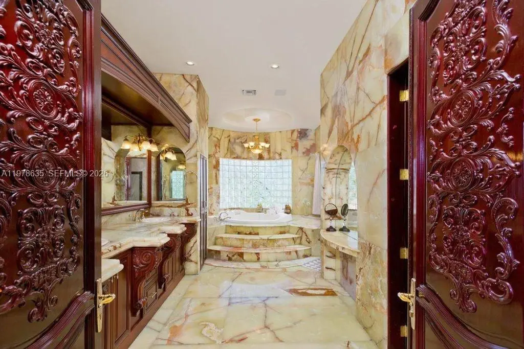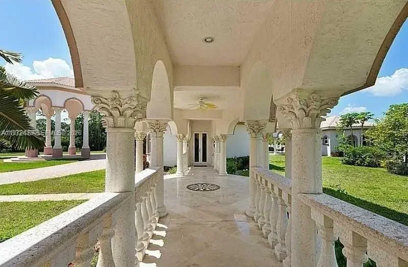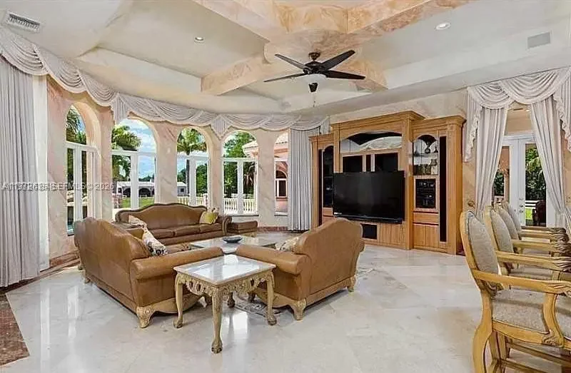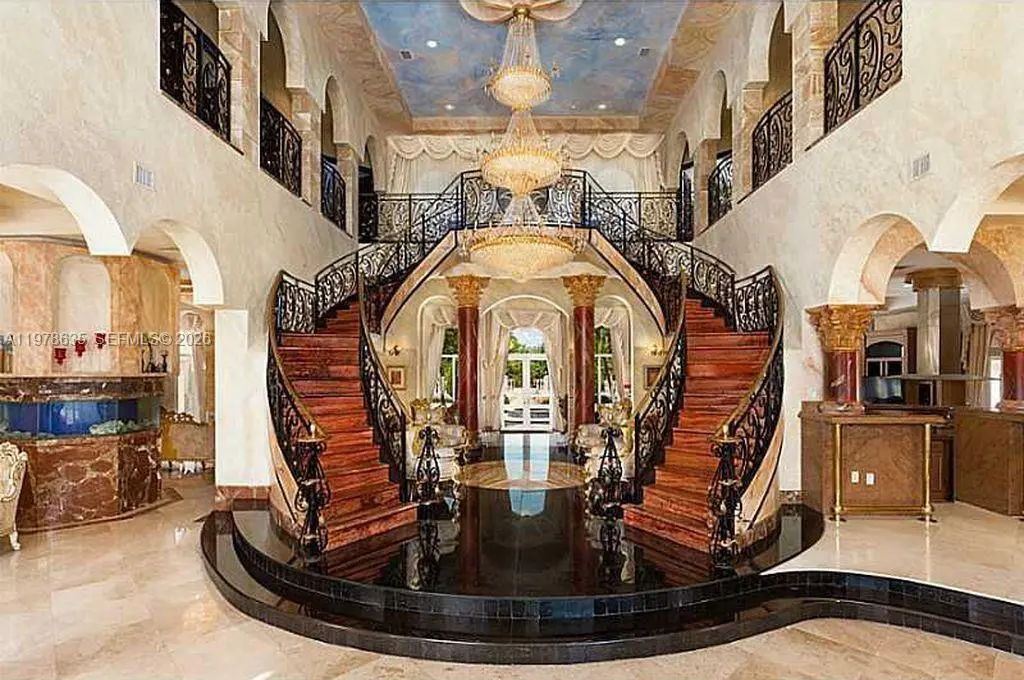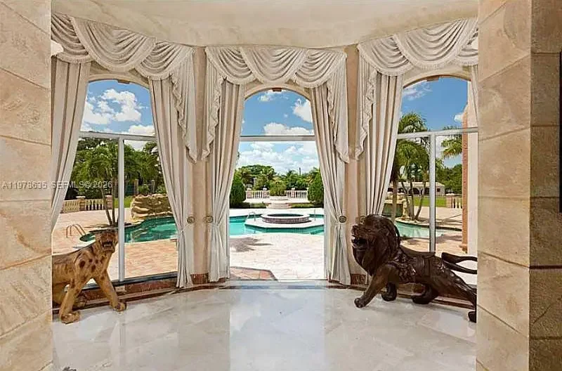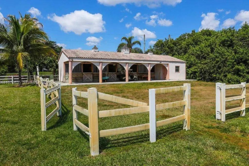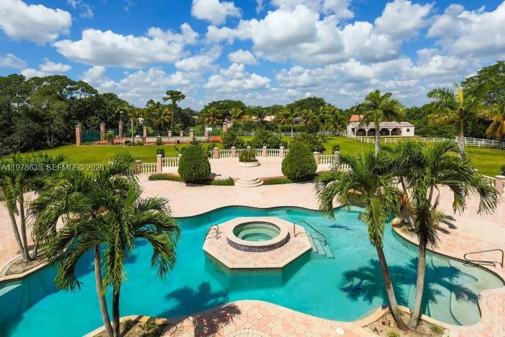 Extraordinary custom-built estate situated on over 5 private acres in prestigious West Boca Raton. Built in 2002, this magnificent residence offers more than 10,000 square feet of living space designed for luxury living, privacy, and grand-scale entertaining. A breathtaking marble-clad grand foyer welcomes you with a dramatic double wrap-around staircase featuring elegant wrought-iron railings, creating an impressive architectural centerpiece. The expansive floor plan includes formal living and dining rooms, a spacious family room, and a large chef’s kitchen with breakfast bar, ideal for gatherings and entertaining. The luxurious primary suite serves as a private retreat, complete with a raised soaking tub, dressing room, and spa-like bath. The estate also features five additional bedrooms and multiple bathrooms, offering ample space for family and guests. Step outside to enjoy a true resort-style setting with a spectacular pool and spa, expansive patio areas, and beautifully landscaped grounds. Additional amenities include two guest homes, private tennis courts, and horse stables, making this exceptional property ideal for equestrian enthusiasts or those seeking a private compound lifestyle. A rare opportunity to own a luxury estate offering space, privacy, and world-class amenities in the heart of West Boca Raton.