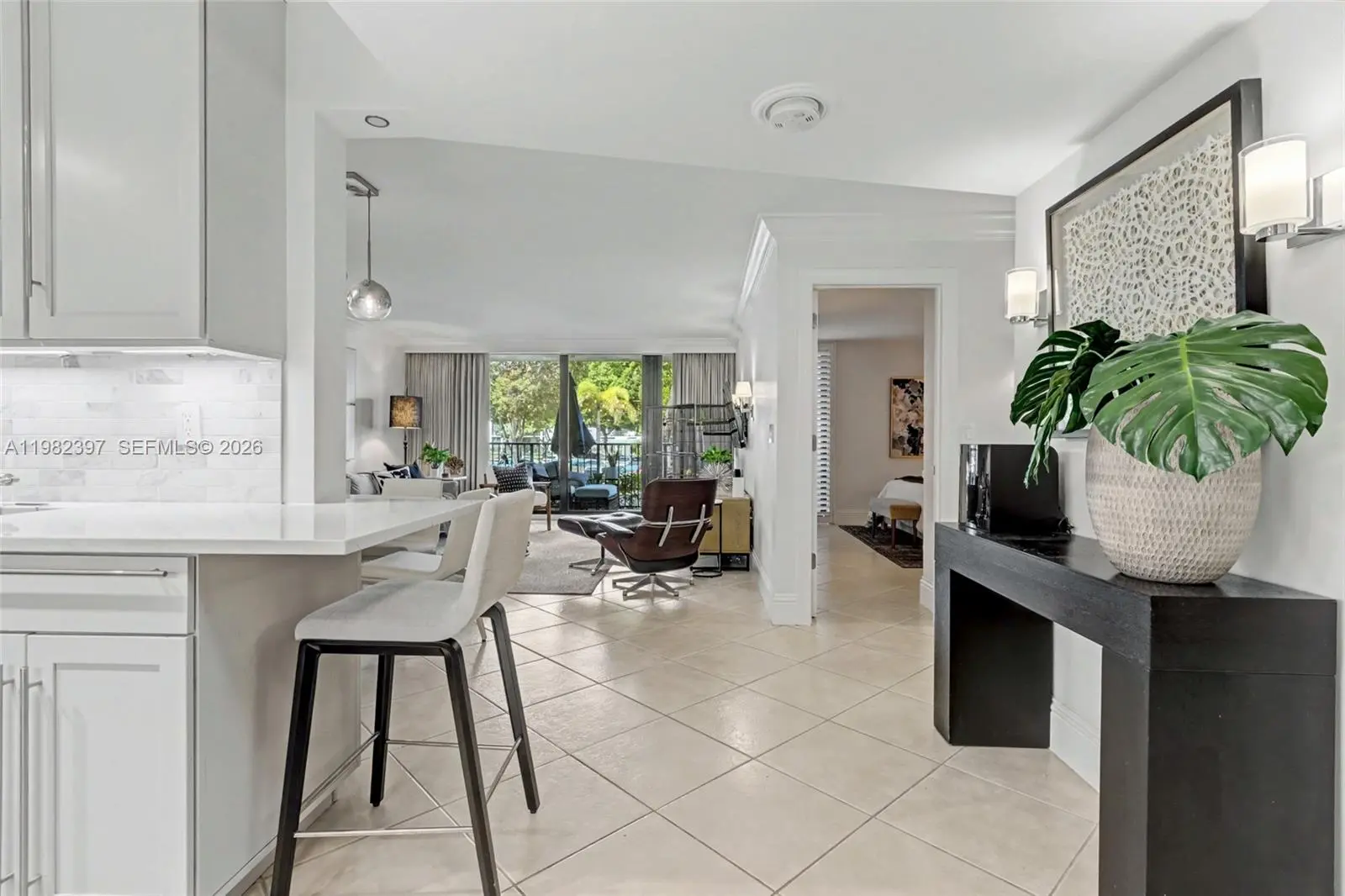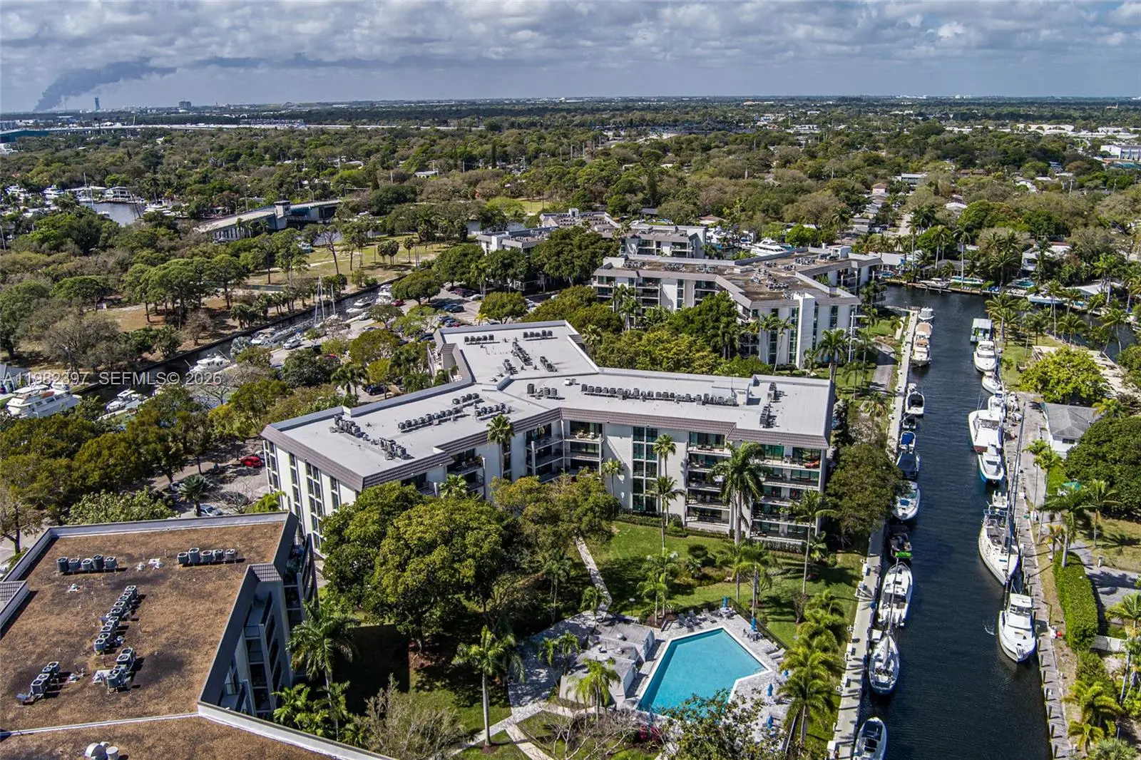 Explore a beautifully renovated first-floor condo with garage parking and a lovely partial river view! Located near the FLL airport, Las Olas, downtown, and the beach, this prime location offers unmatched convenience. Enjoy watching the Jungle Queen and yachts glide by every day. What a delightful experience! Or perhaps you’d like to take your own boat out. Boat packages are available at $40/foot per year for vessels up to 50' OAL, when available—no fixed bridges to the ocean. Amenities include 24/7 security, 3 heated pools, 2 tennis courts, and 2 pickleball courts. There is also kayak storage and BBQ areas. A boat dock surrounds the island, available for boat dockage as well as exercise 24 hrs. a day. The community boasts a well-funded reserve, newly installed high-impact windows, new balconies and railings, a contemporary new paint color, and new landscaping and lighting.