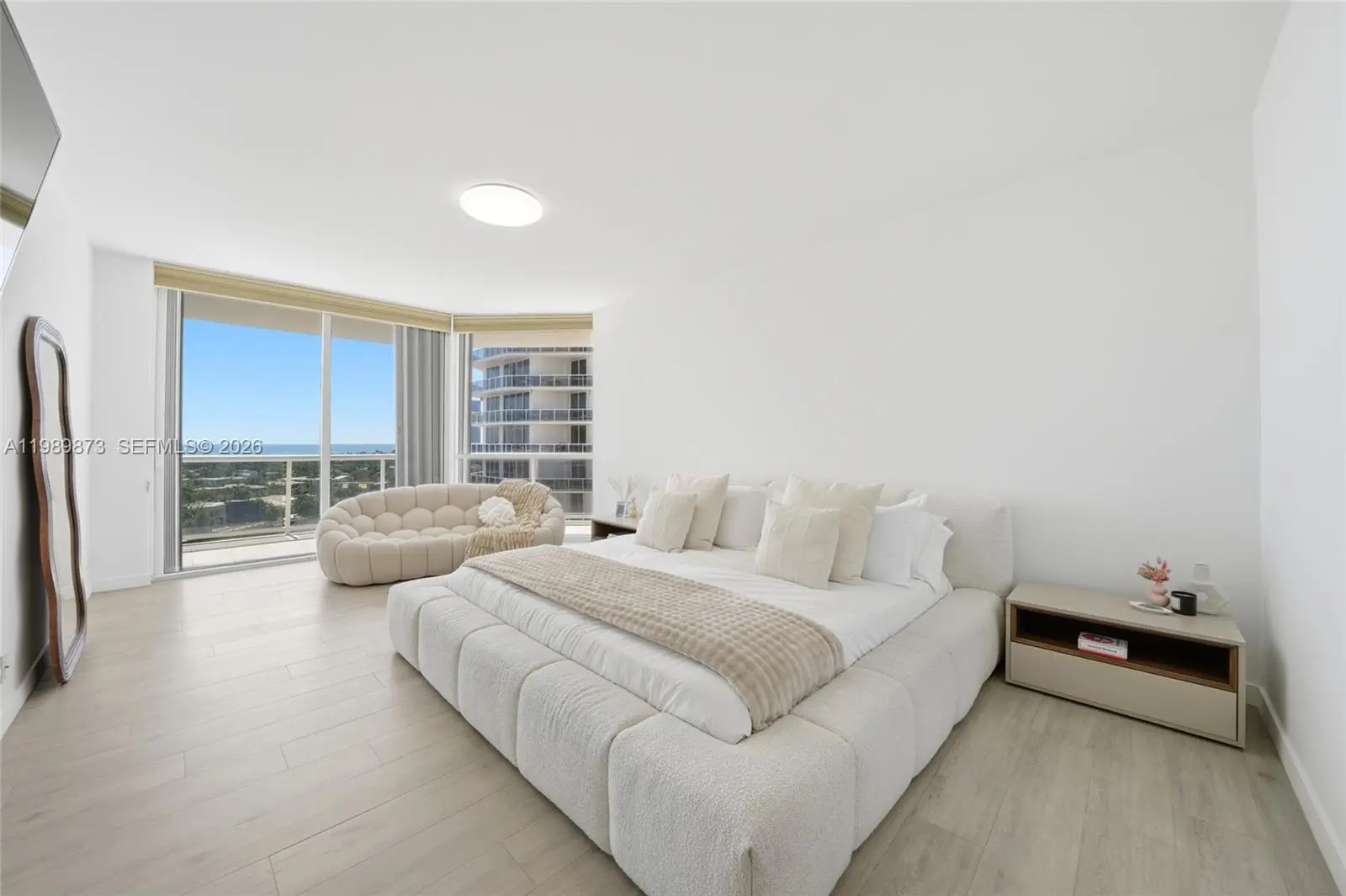 Experience luxury living in this stunningly renovated 3-bedroom 3-bathroom plus den residence situated within the exclusive One Island Place. This meticulously upgraded home features a private elevator foyer that opens into a splendid floor plan characterized by elegant ceramic and marble flooring throughout. Enjoy breathtaking, unobstructed views of the Ocean and Intracoastal Waterway from every living space, including the beautiful and spacious balcony. The interior boasts a modernized kitchen and renovated bathrooms, offering a sophisticated aesthetic. This versatile layout is a three-bedroom sanctuary with three full bathrooms, a separate laundry room for ultimate convenience, PLUS a separate Den/Office space. Residents benefit from significant peace of mind as the building has recently undergone a complete transformation, including sleek new lobbies and modernized elevators. The unit includes two covered parking spaces plus valet. Located in a premier development, the property offers amenities including two resort-style pools, a fitness center, tennis courts, and 24/7 security, all within walking distance of the Waterways. This exceptional property is easy to show; please review *broker remarks for instructions.