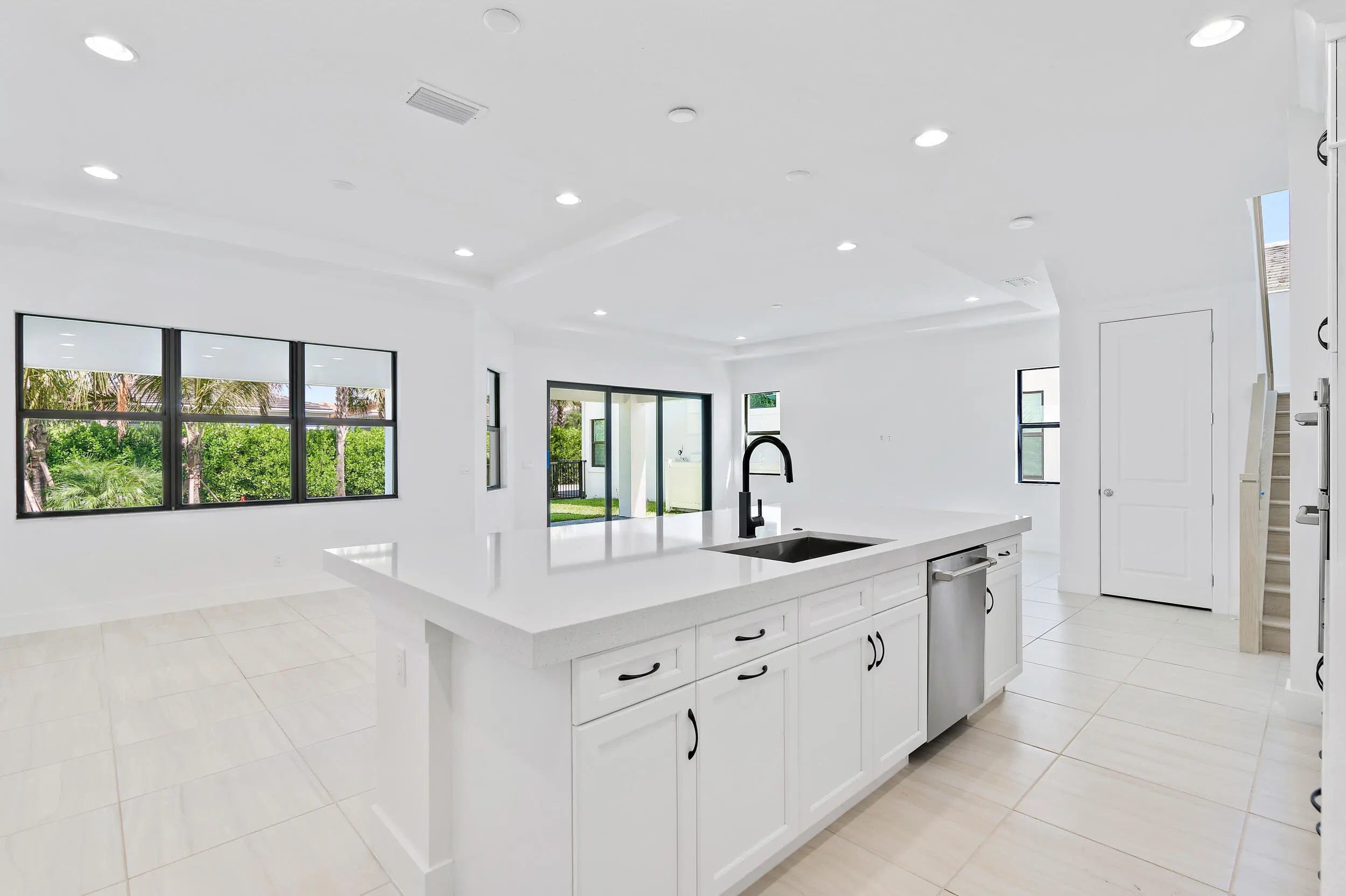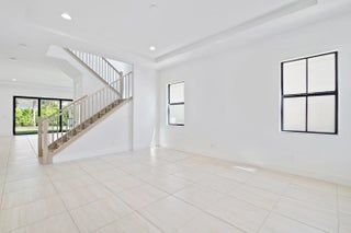 Absolutely stunning "Hudson" model located in the gated community of Artistry in Palm Beach Gardens. Built in 2022, this beautiful home has 4 bedrooms + den, 3 full bathrooms, a 1/2 bathroom, and a 2-car garage. The home welcomes you with an inviting foyer that opens to a grand living room with large windows and a coffered ceiling, creating a bright and open space. The family room, kitchen, and dining areas flow together seamlessly, ideal for both everyday living and entertaining. The upgraded kitchen features beautiful cabinetry, modern appliances, and a large island at the heart of the main living space and is ideal for everyday living and entertaining. The family room opens through triple sliders to the expansive lanai, while a triple window in the dining area fills the home with abundant natural light. The fenced and landscaped backyard creates a private outdoor setting perfect for relaxing or hosting guests. Impact windows throughout provide added security and efficiency. On the main floor you will also find a den and drop zone space near the garage, along with a conveniently positioned powder bathroom. Upstairs, a spacious loft provides additional living space and connects the bedrooms. The Owner's Suite is positioned at the rear of the home and features triple windows and a coffered ceiling, creating a bright and comfortable retreat. The Owner's Bath includes split vanities and two large walk-in closets. A large laundry room with ample cabinetry adds convenience, while three additional bedrooms complete the second floor. Artistry is a guard-gated community offering a modern clubhouse, state-of-the-art fitness center, basketball court, resort-style pool, walking trails, and more.