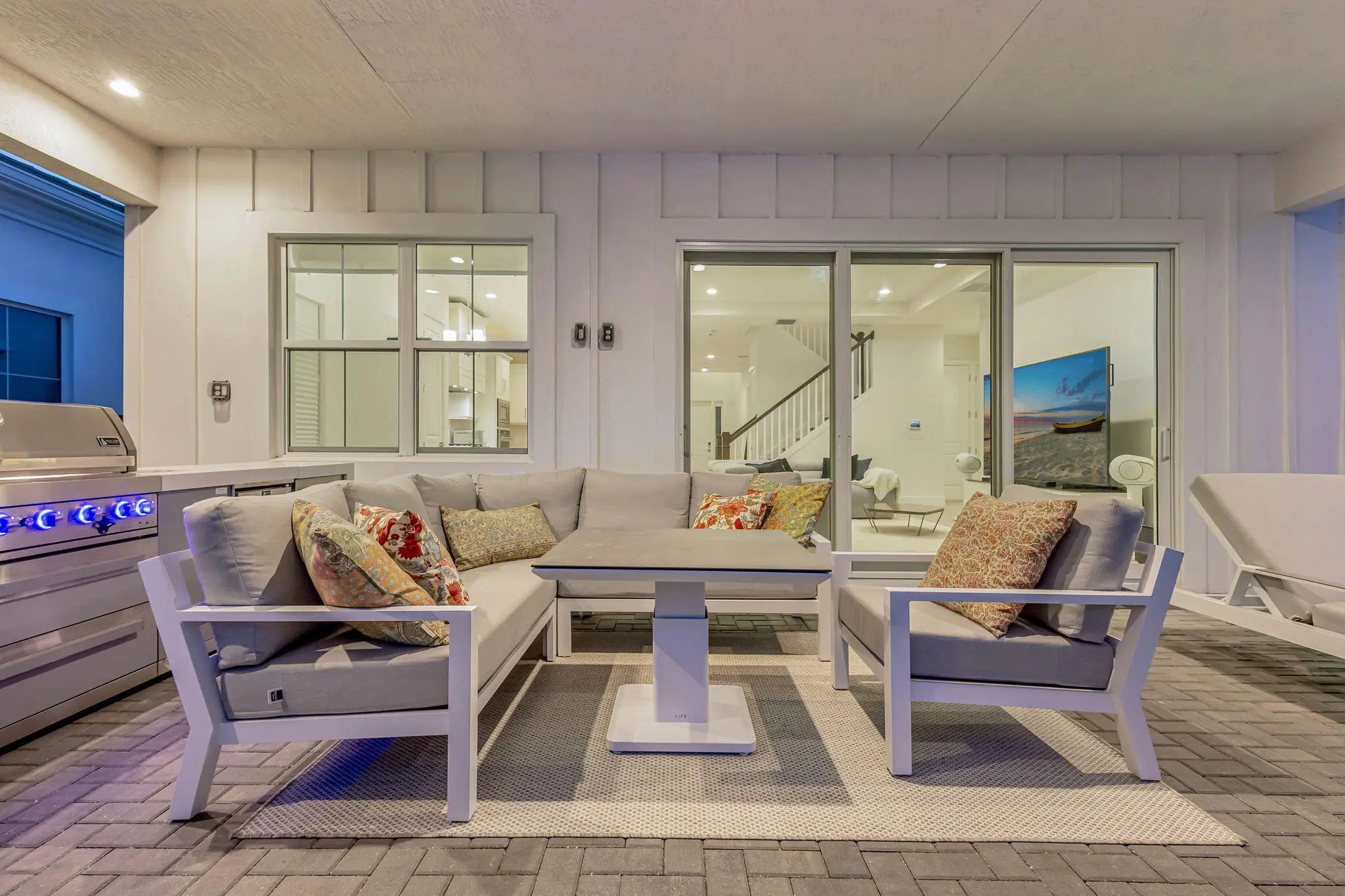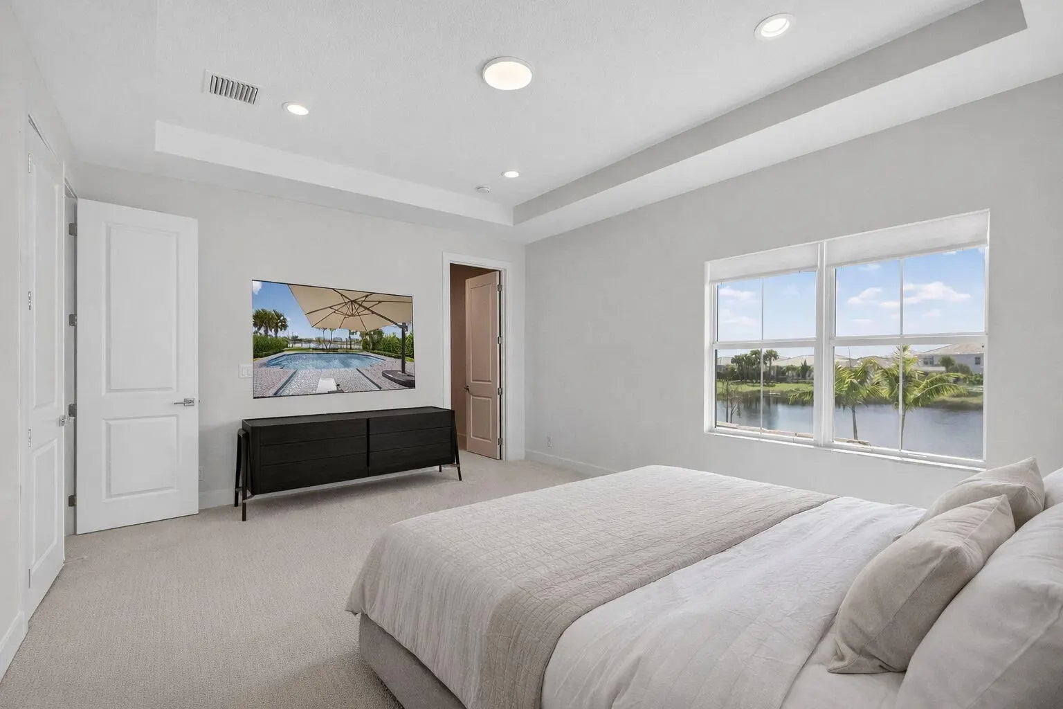 Waterfront living meets effortless luxury in this fully upgraded two-story pool home in the exclusive Windgate community of Avenir. Perfectly positioned on a private lakefront homesite, this residence offers stunning water views, exceptional outdoor living, and a flexible layout designed for today's lifestyle. Inside, bright open living spaces are complemented by two versatile flex rooms ideal for a home office, den, fitness studio, or media room. Thoughtfully designed for both everyday comfort and entertaining, the home blends style and functionality throughout. The outdoor setting is truly special. An expansive covered terrace with a fully equipped summer kitchen overlooks the sparkling pool and peaceful waterfront, creating the ultimate space for entertaining or relaxing year-round. Lush privacy landscaping and a fully fenced yard provide both beauty and seclusion. Additional highlights include a three-car garage, generous bedroom suites, and high-end upgrades throughout. Located in the heart of Avenir, residents enjoy resort-style amenities, scenic nature preserves, miles of trails, and convenient access to Palm Beach Gardens' premier shopping, dining, golf, and beaches. A rare opportunity to own a move-in-ready waterfront pool home in one of Avenir's most sought-after communities.