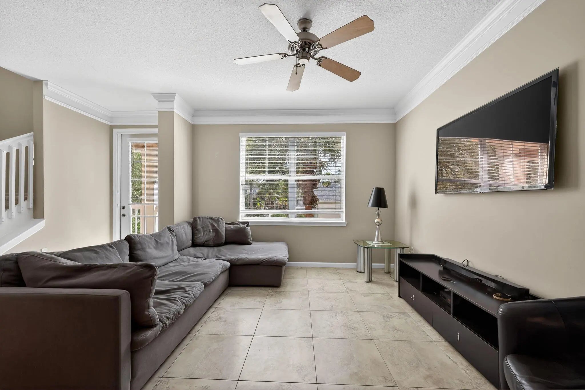 Beautiful townhome located in the highly desirable community of Abacoa in Jupiter. This spacious 3-bedroom, 3-bath residence offers three levels of thoughtfully designed living space filled with natural light. The first floor features a versatile flex room perfect for a home office, gym, or guest space, along with access to the attached two and a half-car garage. The main living level showcases an open-concept kitchen with stainless steel appliances, granite countertops, tiled backsplash, and wood cabinetry, flowing seamlessly into the dining and living areas. Elegant details such as crown molding and tray ceilings add character, while the living room opens to a private balcony overlooking the community pool. The second floor offers two spacious en-suite bedrooms, a convenient laundry area, and a loft space ideal for a workspace or reading nook. Hurricane-impact windows and doors provide added security and energy efficiency. Residents enjoy access to resort-style amenities including a pool, fitness center, playground, and clubhouse just steps away. Ideally located near shopping, dining, golf, and entertainment, and only minutes from Abacoa Town Center and Roger Dean Stadium, this home offers the perfect combination of comfort, convenience, and vibrant community living.