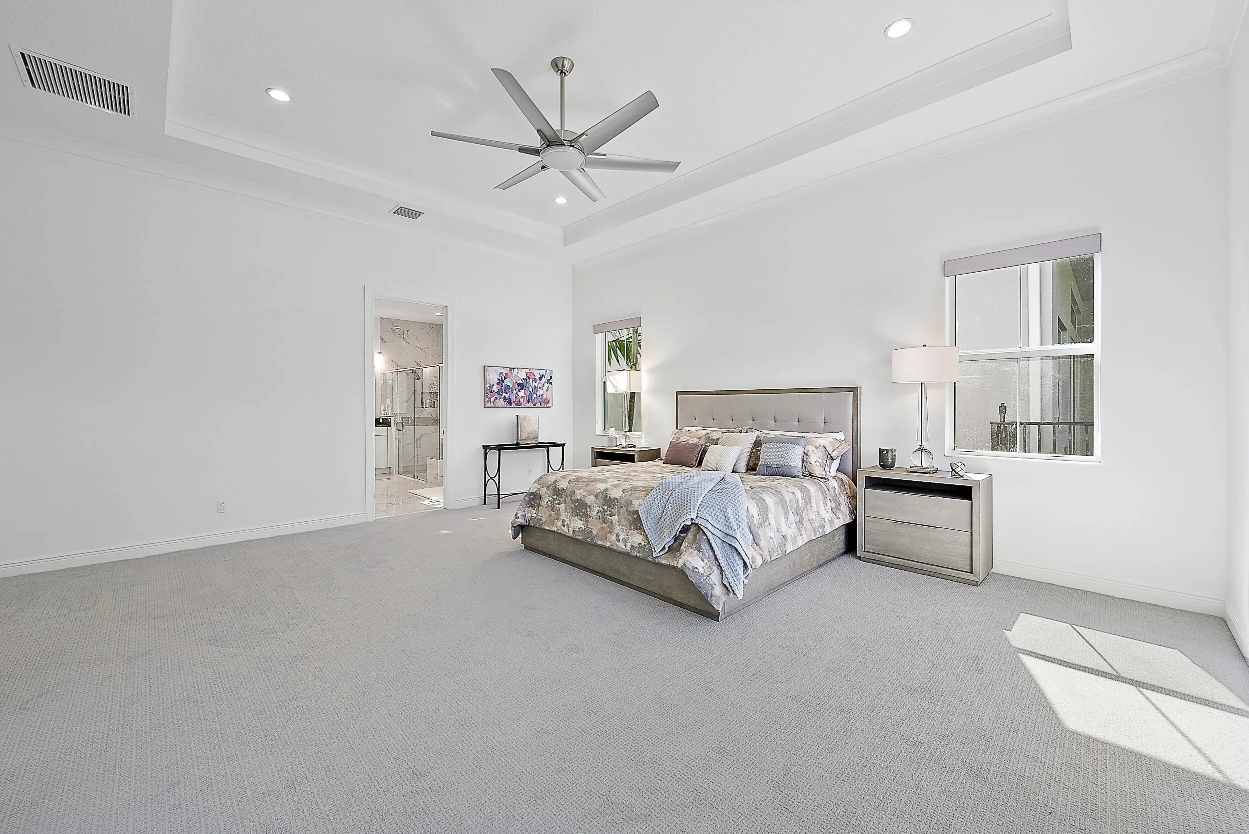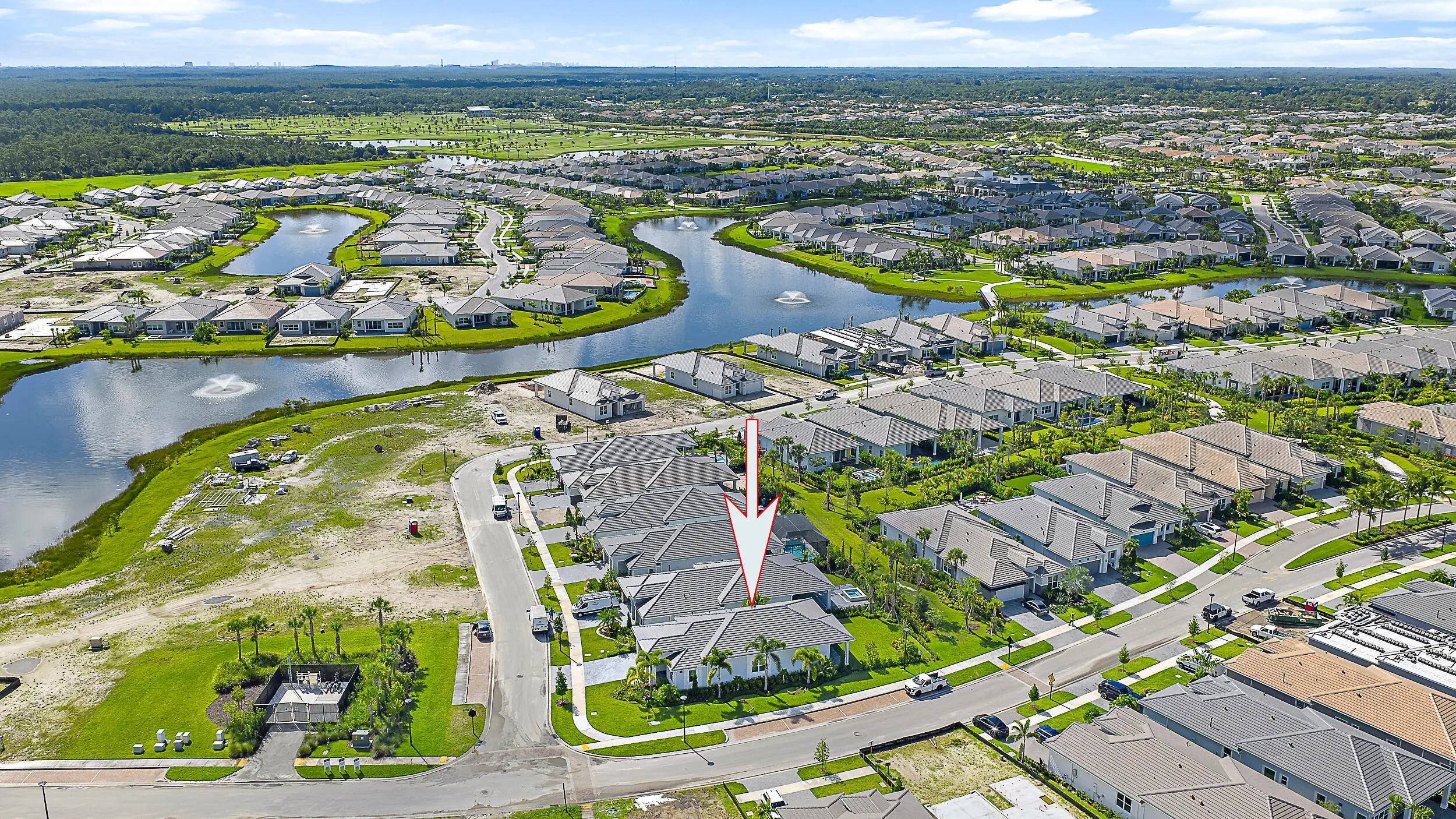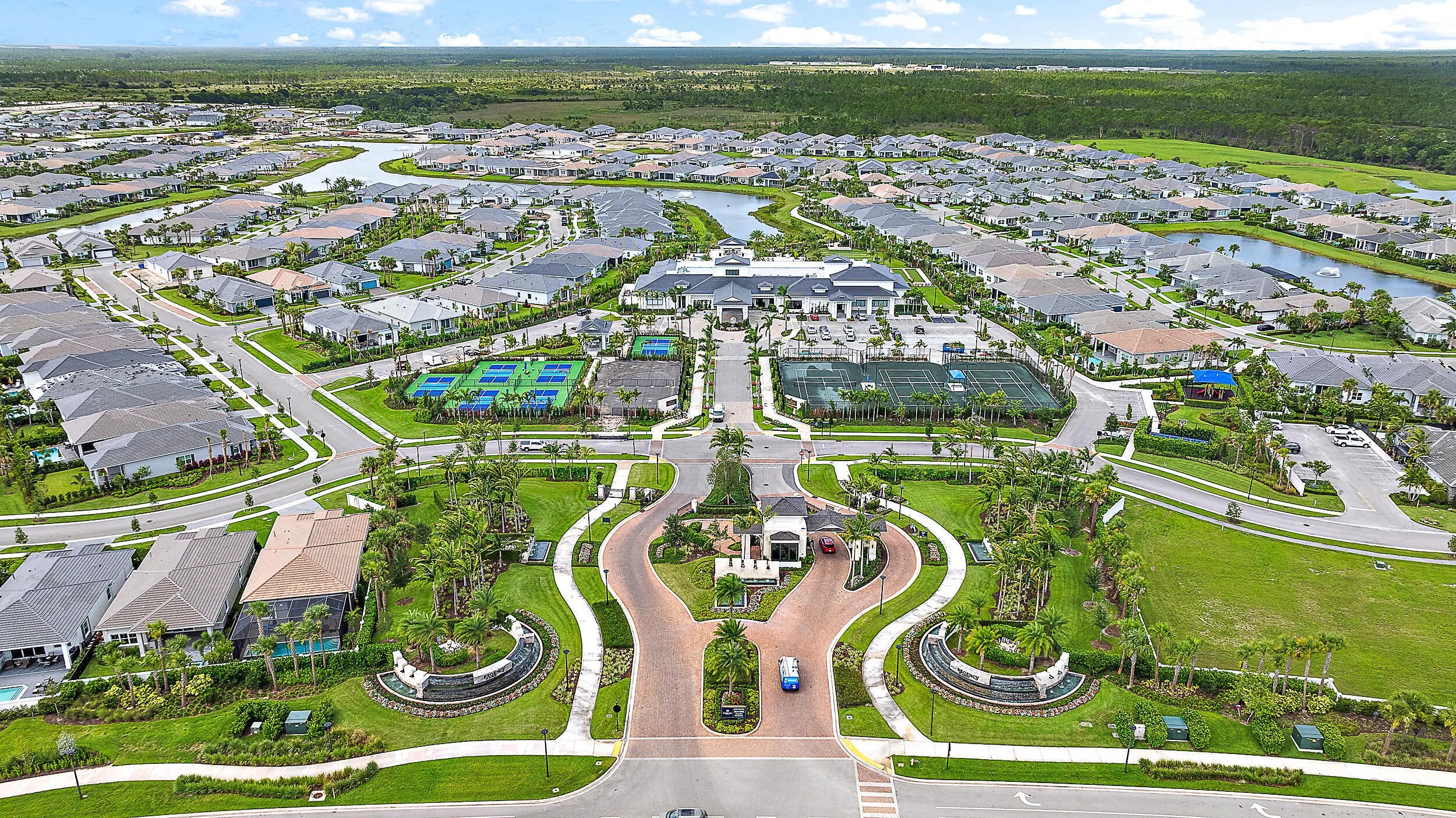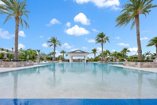 Set on a premium corner lot with lush landscaping and upgraded exterior finishes, this expanded Samantha model offers exceptional space and flexibility. Features include an expanded primary bedroom and great room, plus a den/office/guest room with custom bookcase. Open layout with tray-ceiling great room and dining area, gourmet kitchen with oversized island, professional-grade appliances, and reach-in pantry with pull-outs. Spa-style primary suite and covered lanai create seamless indoor-outdoor living in Regency at Avenir's resort-style 55+ community with Pearl Clubhouse, fitness center, pickleball, tennis, bocce, basketball, and resort pool.