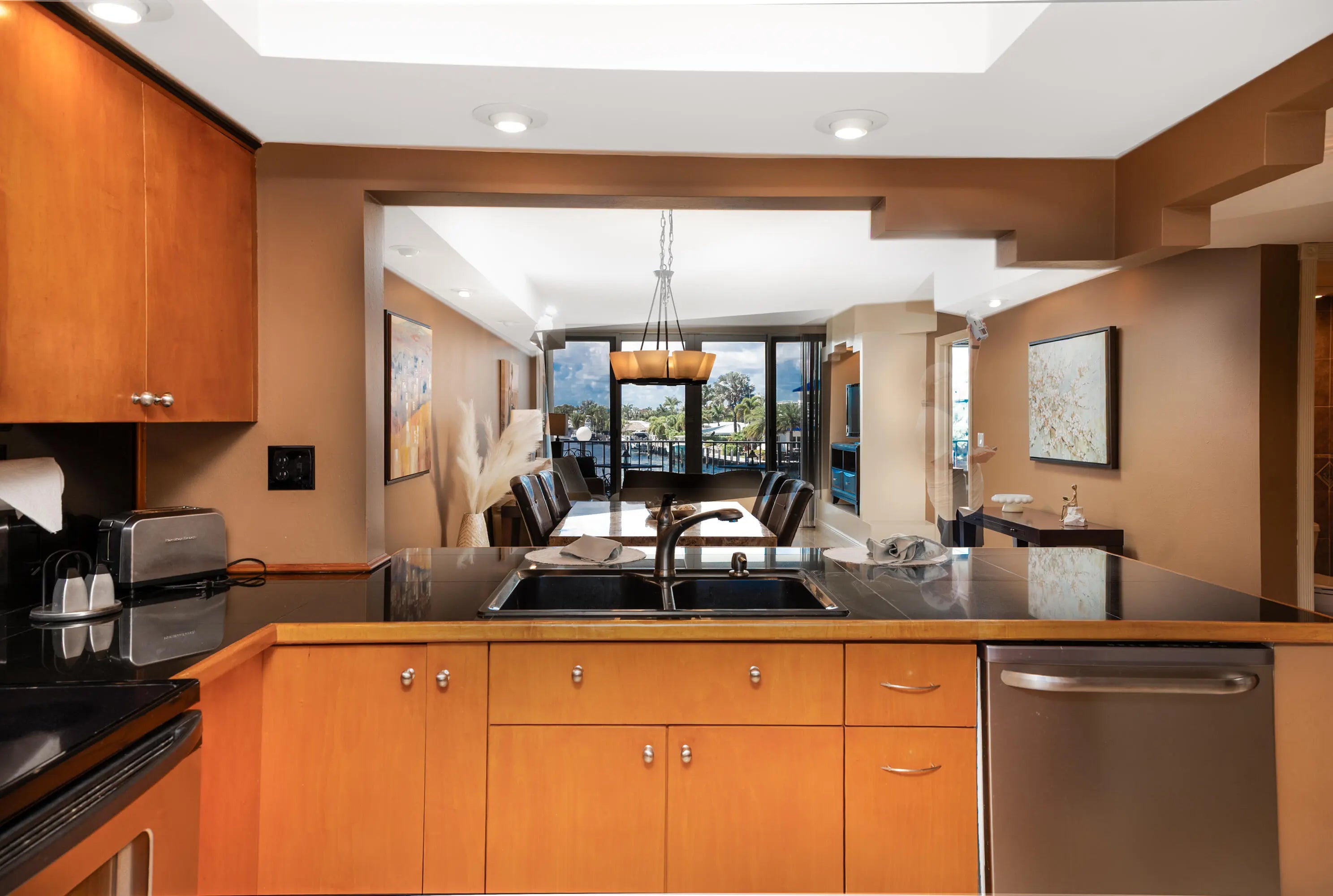 Experience the beauty of Intracoastal living from this bright and well-located residence in the RECERTIFIED Silver Thatch Intracoastal building. Floor-to-ceiling impact windows welcome natural light throughout while the private balcony offers tranquil water views and spectacular Florida sunsets. Interior features include travertine flooring in the main living areas, granite kitchen counters, French doors & new water heater (2025). A rare private second-floor entrance allows direct access without passing through the lobby. Silver Thatch offers a remodeled lobby, heated Intracoastal pool, fitness center, sauna, social room with bar and billiards, BBQ area, community dock, and bike/storage rooms. New roof 2024. No special assessments. Just one block to the beach, pier, restaurants and shops. "Intracoastal lifestyle + recertified building + no assessments + walk to beach."