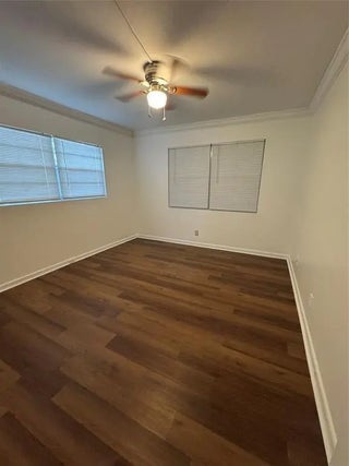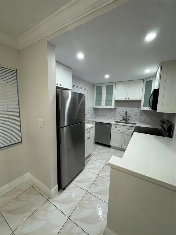 UNFURNISHED & CLEAN Ground floor location with water view from primary bedroom. Park close to your door. Open updated kitchen with new white cabinets, new backsplash, new quartz counters, new s/s appliances, new laminate floors in bedrooms, fresh paint, new toilets, new bathroom vanities and shower, new light fixtures, Crown moldings and No popcorn ceilings. Corner unit has kitchen and dining room windows offer lots of light. Basic cable included. Century Village is an active. secure, 55+ community with many amenities, and close to shopping, restaurants and more.