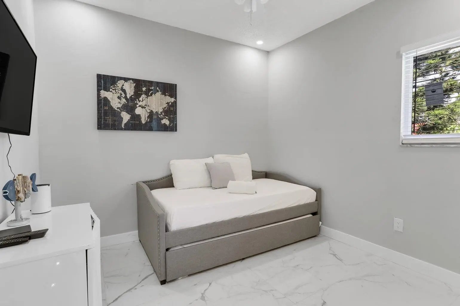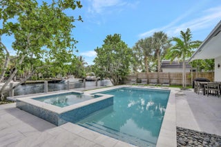 Discover refined waterfront living in this beautifully upgraded 4-bedroom, 2-bath residence with 75 feet of prime waterfrontage and a private 50-foot boat dock. Inside, soaring cathedral ceilings and a fireplace create an elegant and inviting living space, complemented by a bright open-concept design. The chef's kitchen features quartz countertops, white shaker cabinetry, stainless steel appliances, and sophisticated coastal finishes. The tranquil primary suite offers a private courtyard and spa-inspired bath with soaking tub, glass shower, and dual vanities. Outdoors, enjoy a resort-style setting with a heated saltwater pool, Jacuzzi, and generous entertaining space—perfect for embracing the South Florida boating lifestyle near premier shopping, dining, and nightlife.