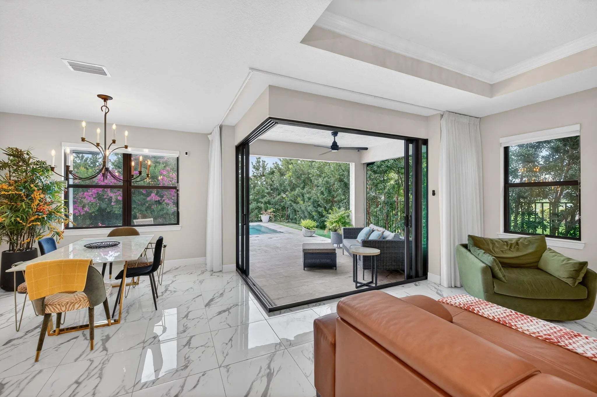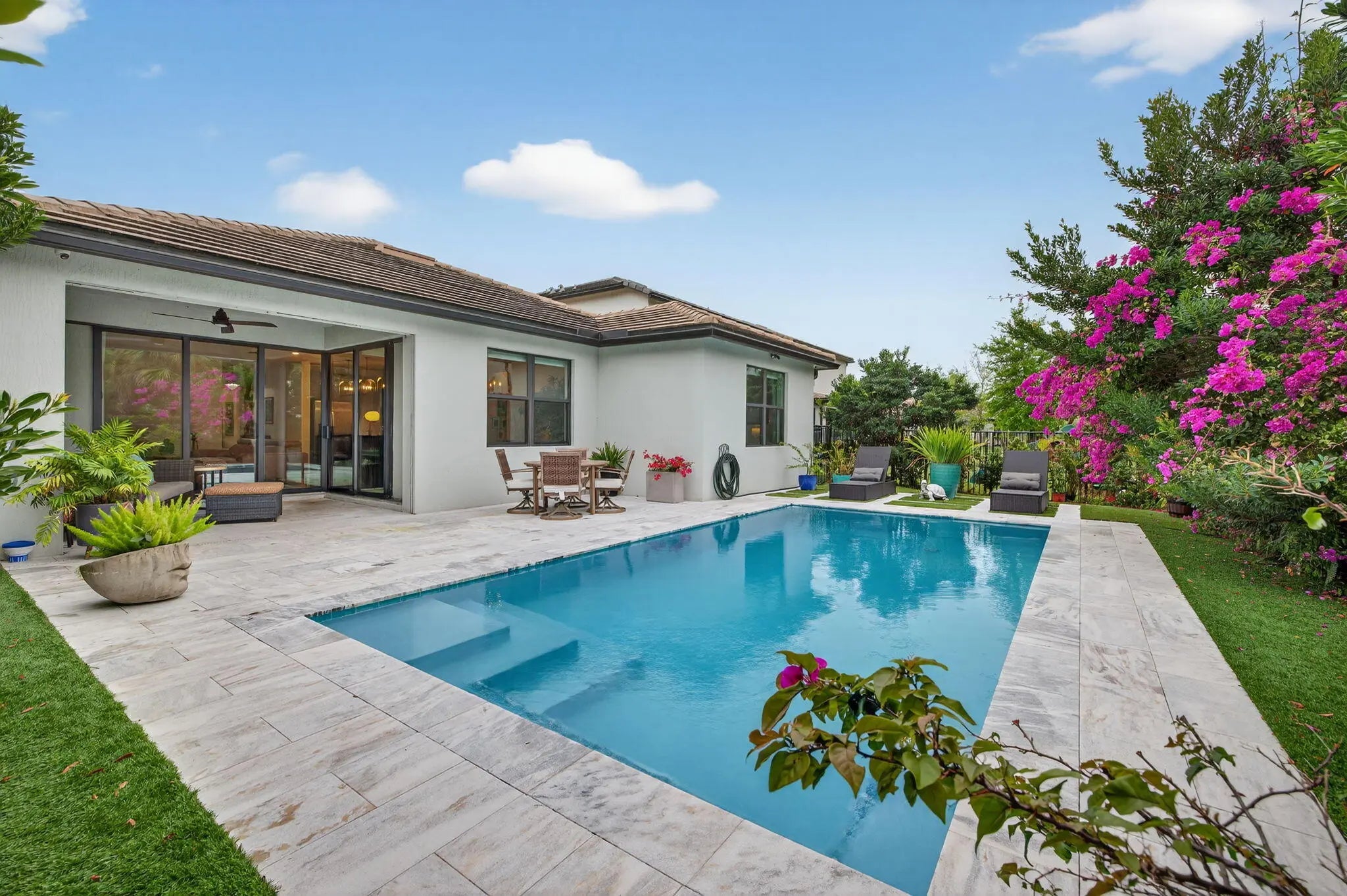 Experience the perfect blend of modern luxury and functional design in this stunning newer construction. This beautifully appointed home features 3 spacious bedrooms, 2 elegant bathrooms, and a versatile den/office ideal for today's flexible lifestyle. The open-concept living space is designed for effortless entertaining and comfortable everyday living. A spacious double garage provides ample parking and storage. Step outside to your private backyard oasis, complete with a sparkling pool and lush landscaping that creates a truly serene and intimate setting perfect for relaxing or hosting guests. Beyond the home, enjoy access to resort-style amenities, including a fully equipped fitness center, pickleball courts, and a cozy fire pit. This is more than a home it's a true lifestyle upgrade.