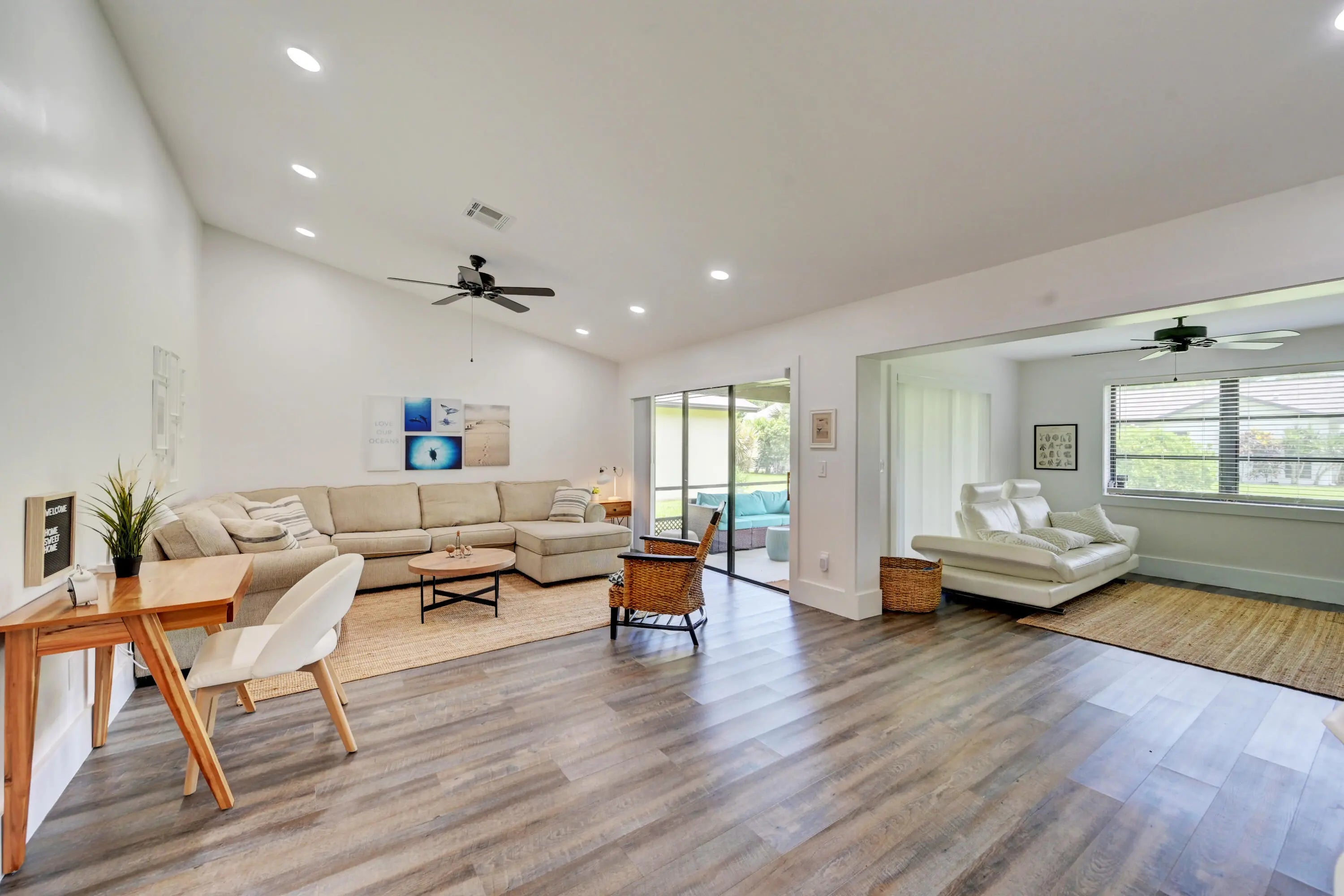 Just 3 miles from the beach and minutes to downtown Delray, this 1,407 sq. ft. home features an open kitchen overlooking the dining and family rooms, plus a versatile den perfect for an office, nursery, or guest room. Located on a quiet street near shopping and dining, it offers a screened patio, spacious backyard, and access to a clubhouse, pool, sauna, gym, and event space ideal for both relaxing and entertaining.