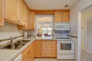 This beautifully renovated corner villa offers a perfect blend of comfort and style, set against a serene lakefront backdrop. The home features elegant porcelain tile flooring throughout, impact-resistant glass windows, and a fully enclosed, air-conditioned patio with glass panels and window treatments—ideal for year-round enjoyment. The kitchen is thoughtfully updated with stainless steel appliances, rich wood cabinetry, and a convenient pantry. Enjoy breathtaking lake views that create a tranquil, retreat-like atmosphere right at home. Located in the gated community of Golden Lakes Village, residents have access to a wide range of amenities.