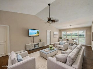 Move in Ready! Beautiful & well-maintained 3BR/2BA/1CG one floor Villa offers an upgraded oversized eat-in kitchen w/granite countertops, ample wood cabinetry, & SS appliances. Extended living/formal dining area with wine bar/refrigerator for entertaining. Primary suite features brand new carpet & large walk-in closet. Both baths partially updated! Upgrades include engineered wood floors, new lighting, plantation shutters, & freshly painted garage w/attic storage! Brand new 2026 AC & 2026 Washer/Dryer just installed! Accordion shutters for easy hurricane prep! HOA incl. exterior mtce., roof, insurance, gated security, cable, internet & lawn! 2 Community pools, 1 heated, tennis & more! Minutes to I-95 & FL TPKE! Top-tier school district!