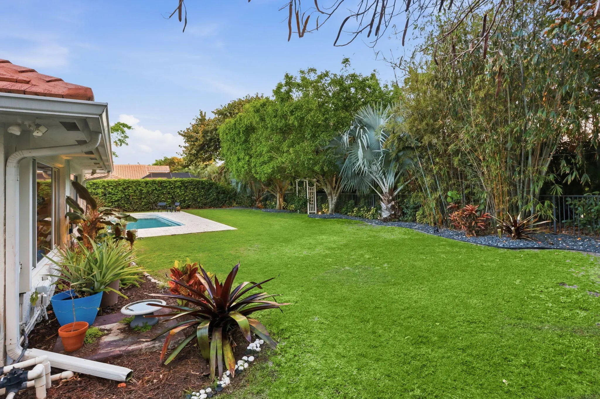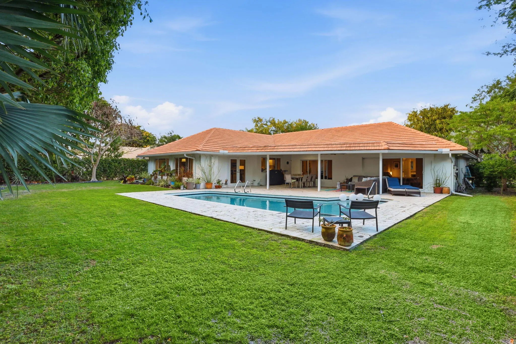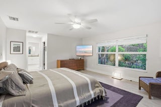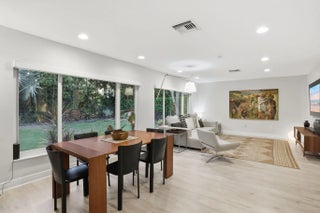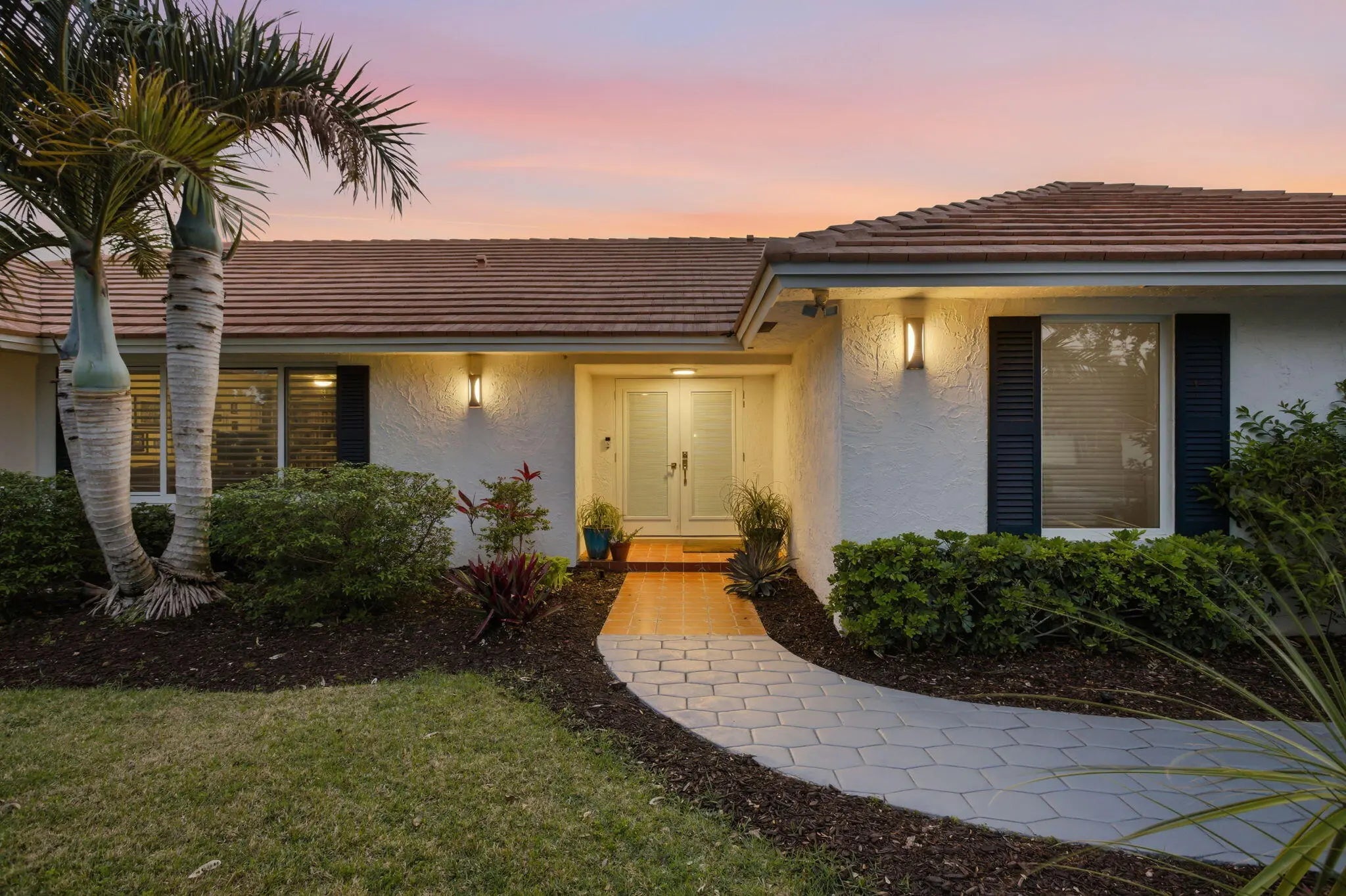 Welcome to an exceptional residence tucked within one of East West Palm Beach's most exclusive gated communities, ideally positioned east of I-95 along a mature, tree-lined street. This refined home offers the perfect balance of privacy, sophistication, and convenience—just minutes from premier shopping, dining, Tanger Outlets, and Palm Beach International Airport for effortless travel. Ideally located, the home offers easy access to downtown West Palm Beach, Rosemary Square, and Palm Beach Island—placing world-class dining, luxury boutiques, waterfront promenades, and vibrant cultural venues just moments away. Enjoy an elevated lifestyle with nearby fine dining, rooftop lounges, art galleries, and some of South Florida's most sought-after restaurants and social destinations. Set along the renowned Jack Nicklaus golf course, the home is recorded as a 4-bedroom per the property appraiser, currently configured as 3 bedrooms plus an expansive great room that showcases volume and versatility. The existing layout allows for a seamless conversion to a fourth bedroom, office, or private retreat, depending on your needs. Designed with both elegance and comfort in mind, the split-bedroom floor plan creates a natural flow for elevated living and entertaining. Laminate flooring runs throughout the main living areas, complemented by porcelain tile in the wet spaces. The recently updated kitchen and primary bathroom feature refined, modern finishes, with the primary suite offering a spa-inspired experience highlighted by a stunning freestanding soaking tub. Major system upgrades—including a new A/C (2022) and water heater (2024)—provide peace of mind. Natural light pours in through large picture windows and impact-rated sliding glass doors, framing the home's most captivating feature—its private outdoor sanctuary. The backyard is a true oasis, complete with a gas-heated pool, lush landscaping, and thoughtfully designed exterior lighting that creates a resort-like ambiance day and night. The indoor-outdoor connection allows for effortless entertaining, whether hosting intimate gatherings or larger events. The garage is equally impressive, featuring a private sauna for relaxation and an electric vehicle charging space to support a modern lifestyle. This is a rare opportunity to own a thoughtfully upgraded home in a discreet, high-demand enclave—where luxury meets livability in the heart of West Palm Beach.