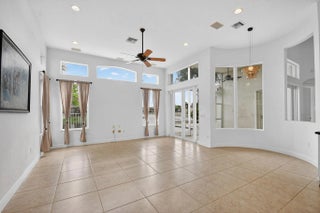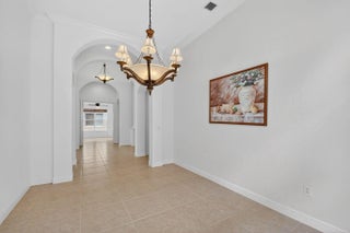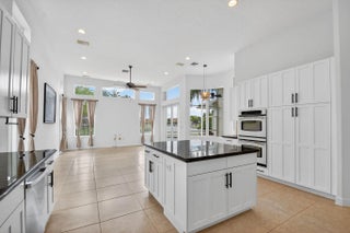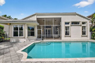 This inviting one-story home offers 3 bedrooms + office and 2.5 baths with a bright, open layout and volume ceilings with crown molding. Features include high-hat lighting, neutral tile. The kitchen boasts a large island, freshly painted cabinetry, granite countertops, marble backsplash, and stainless steel appliances. Spacious primary suite with 2 walk-in closets. Enjoy lake views from main living areas. Screened patio and private pool create ideal outdoor living. Well-maintained and move-in ready with 2025 AC and 2025 water heater, hurricane protection, and a clean, meticulously cared-for interior.