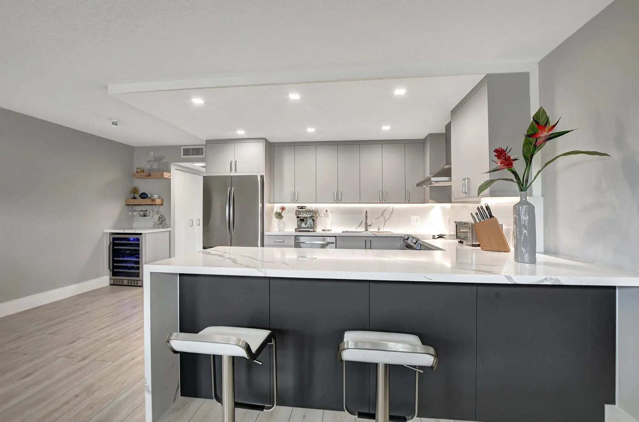 PENTHOUSE STYLE FULLY RENOVATED AND RARE FIND, 3RD FLOOR UNIT WITH MAGNIFICENT LAKE VIEW IN THE MOST DESIRABLE ARE OF CENTURY VILLAGE EAST!! This beautiful fully renovated and remodeled unit is one in a million in the community, open concept kitchen with custom cabinetry and quartz countertop and bar. New Stainless Steel appliance. Master Bedroom extended into patio, increasing square footage, with panoramic windows for view of the entire lake. Hurricane impact windows throughout. Close to the club house and shops. Century Village East has an array of amenities including clubhouse, theater, tennis court, indoor/outdoor pickleball courts, game rooms, courtesy shuttle and SO MUCH MORE!!!