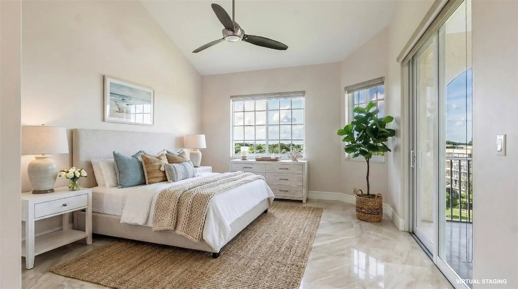 An exceptional opportunity to own an updated penthouse of this size and caliber in Vizcaya. Over 2,400 sqft of open living with sweeping golf, pond, and city skyline views, this 2-bedroom residence features 20' vaulted ceilings, skylights, and floor-to-ceiling impact windows that fill the home with natural light - including a screened balcony of ~350 sqft overlooking the Cypress Golf Course. The gourmet kitchen showcases Jenn-Air appliances, quartz countertops, and an eat-in island. A functional, move-in-ready layout with laundry and semi-private elevator access for added privacy. Vizcaya’s gated community offers a pool, fitness center, clubhouse, BBQ area, covered parking, access to golf, tennis, and pickleball. A rare combination of space, updates, and lifestyle at a compelling value.