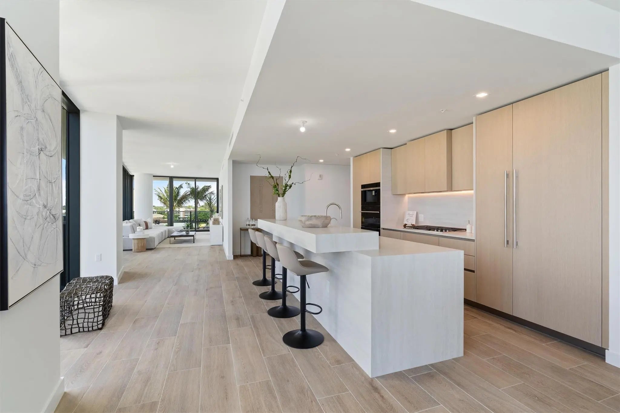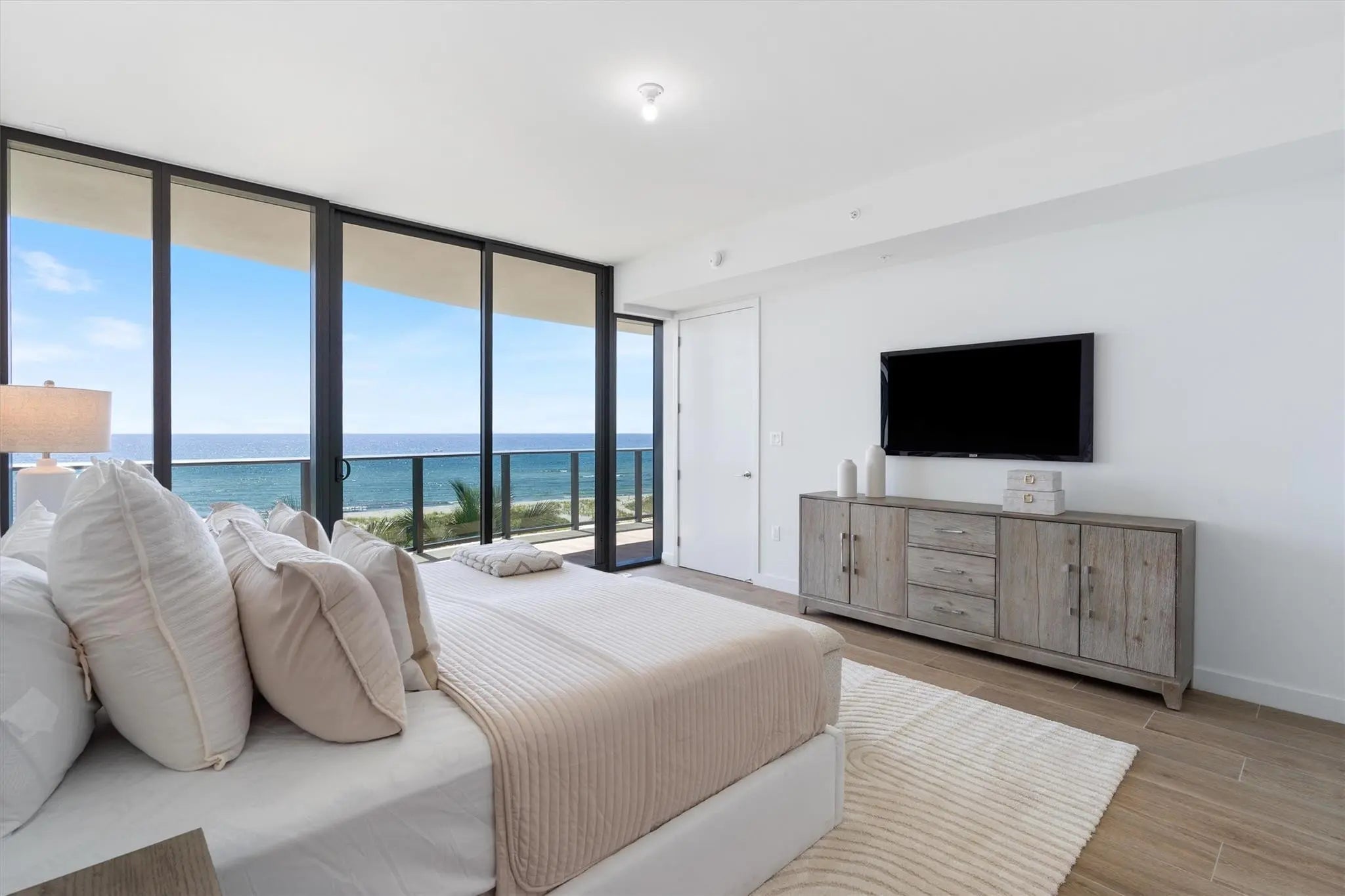 The newest standard of luxury living on the beach - CASAMAR 401 is the premier 4 bedroom floor plan in the building. The entire south side of the building, almost 4700 sqft inside and out, wrapped in glass. Spacious living areas ideal for entertaining that open to the east and west balconies for indoor-outdoor living. Finished with italian kitchen cabinetry, wolf & sub zero appliances including an espresso machine and gas range. Spa like primary suite with 2 walk in closets. 3 ensuite guest rooms and large flexible den. Includes 2 parking spaces 1 is self parkResort style amenities: sunrise & sunset pools, cabanas, bbq area, fitness center with saunas, concierge, valet, club lounge, VR golf simulator, pickleball court, water-sport storage and security.