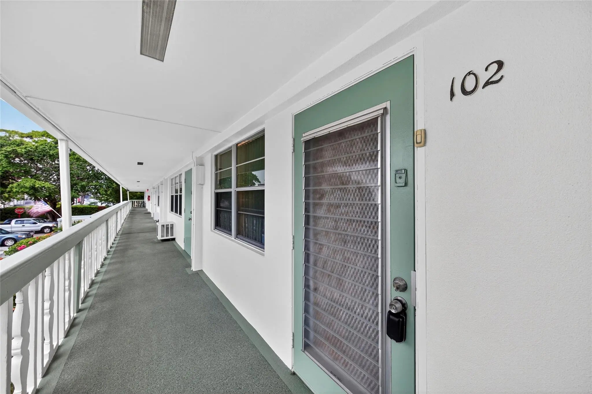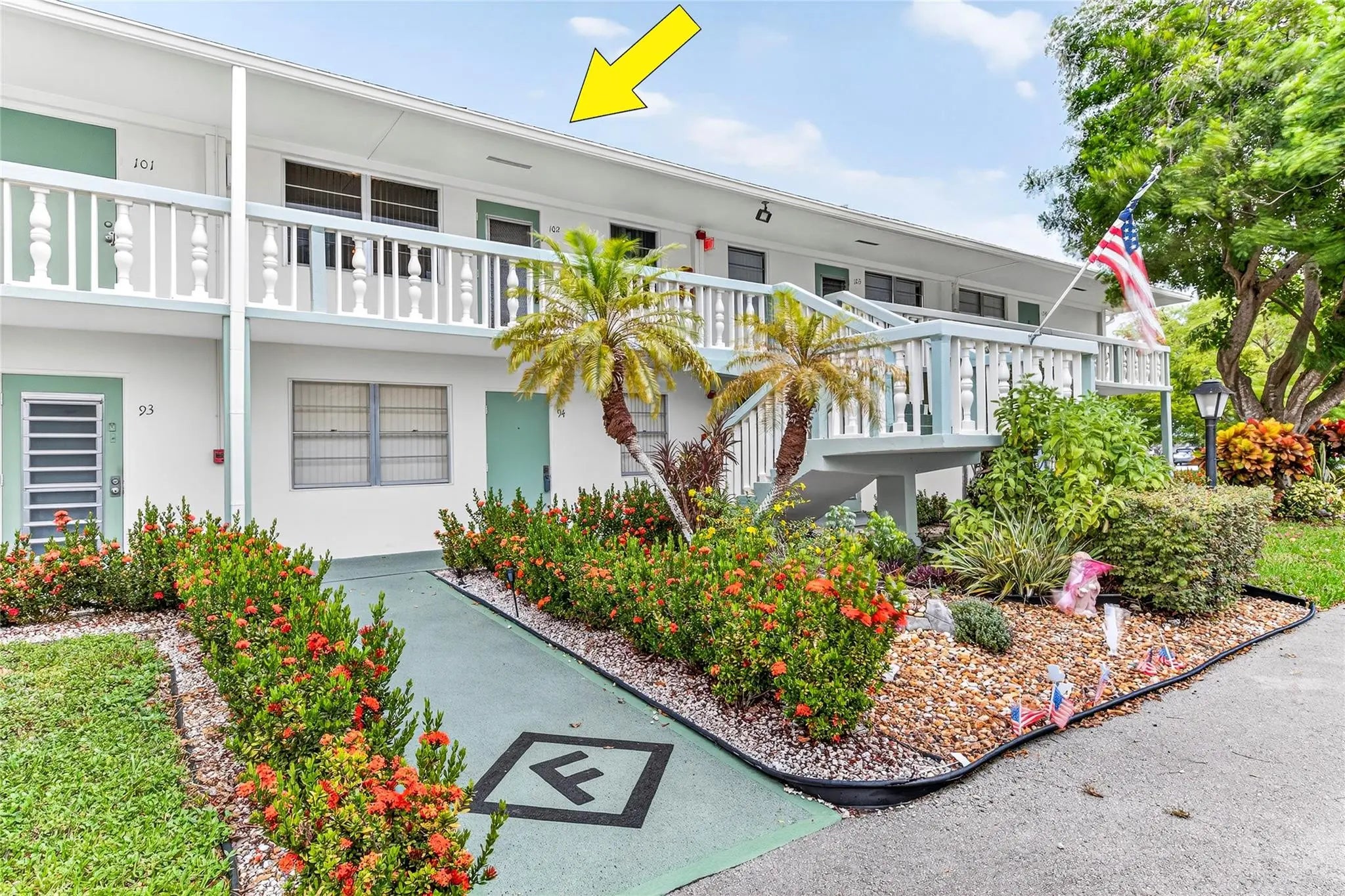 This Great Condition, Pre-Loved Condo comes furnished & features 2 Bedrooms & 1.5 Bathrooms with Central A/C (new in 2023), Plenty of Closet Space, & the Best parking spot: directly in front of the building! Screened-in Patio features a serene nature's view. Newport F is in the Heart of Century Village and has great reserves. Century Village is an Extremely Active 55+ Community offering Resort-Style Amenities: Cafe, Clubhouse, Tennis, Pickleball, Craft/Painting Workshops, Hobby Classes Fitness Centers, Free Movies, Free Shuttles