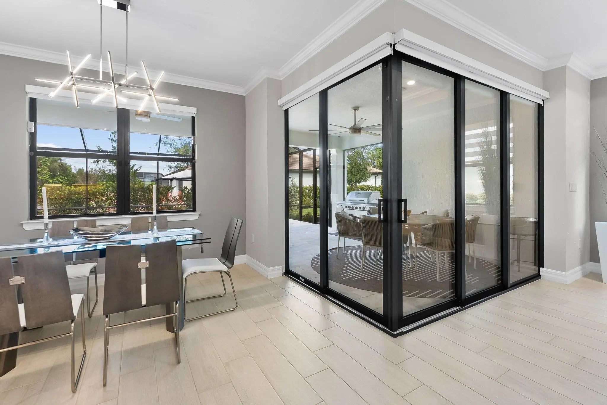 Spectacular 3 Beds + Den (can be 4th Bed), 2 Baths newer construction home in the gated community of Oak Tree. This exceptional home features over $220,000 in upgrades. Inside you will find tile floors, crown molding, tray ceilings, custom window treatments, designer light fixtures. A true Chef's kitchen with KitchenAid stainless steel appliances, gas cooking, shaker cabinets, Quartz countertops, tile backsplash, pantry overlooks the spacious family and dining areas. Enjoy true outdoor/indoor entertainment with the Zero Corner sliding glass doors into extended covered lanai (equipped for future summer kitchen) and your own private heated, screened-in pool w/bench and jets. HOA includes high speed fiber optic internet, landscaping, sprinklers, clubhouse w/pool, pickleball & fitness center.