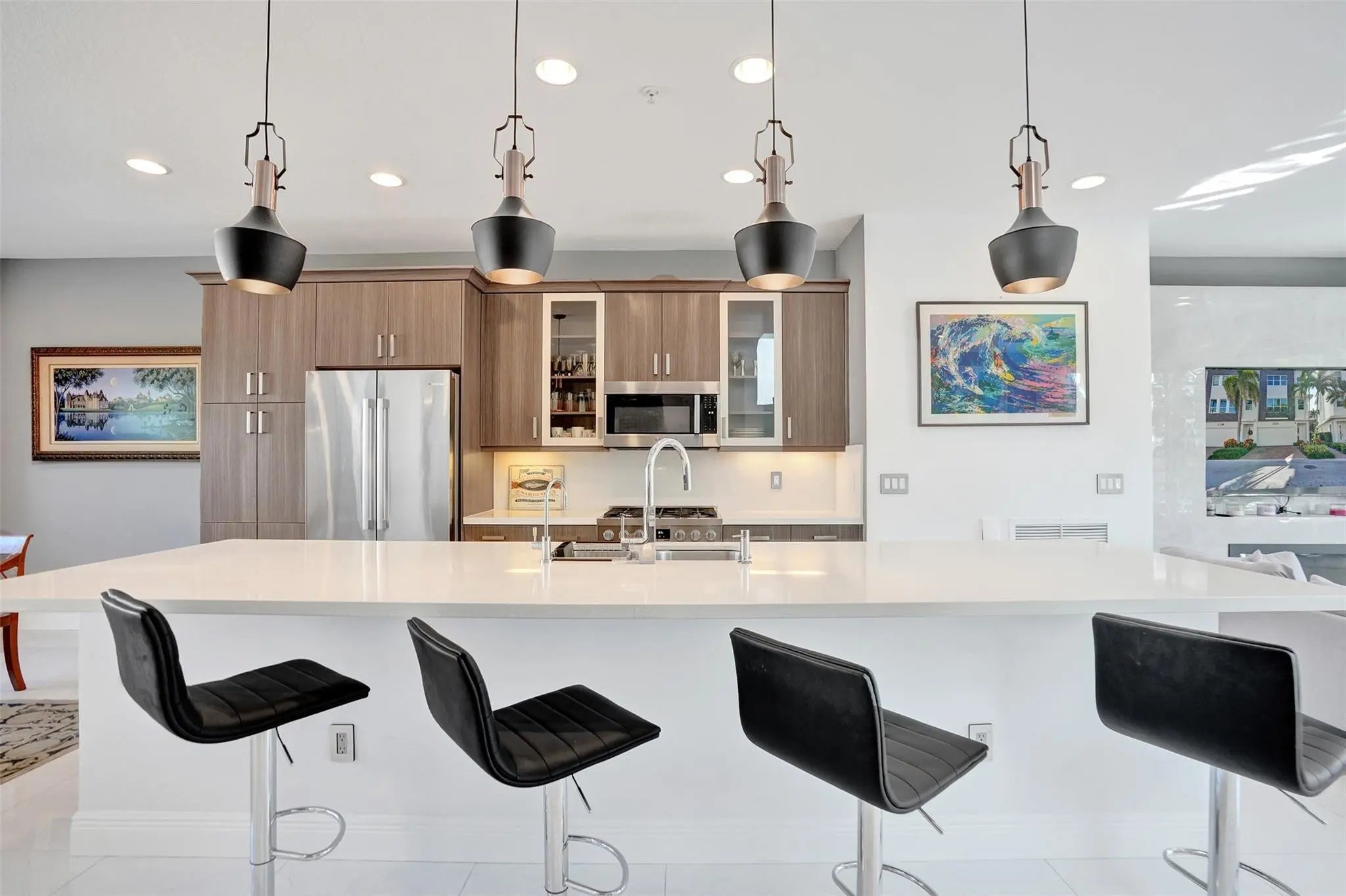 Welcome to your exquisite riverfront retreat! This stunning, rarely available 3-story corner end-unit townhome, in the coveted community of The Pointe at Middle River gated community & offers nearly 2,300 sqft of refined modern living w/3 spacious bedrooms, 2 full baths, 2 half baths, and a double garage. This 2017 newer construction features the open-concept chef’s kitchen that flows seamlessly into a bright, elegant living area filled with natural light and upscale finishes. Step onto your balcony to enjoy breathtaking sunrises & sunsets over the serene river. Relax, workout or entertain at the gorgeous riverside pool & clubhouse. Experience effortless, low-maintenance tropical waterfront living in a prime location near Wilton Manors nightlife, beaches, dining, shopping and major routes.