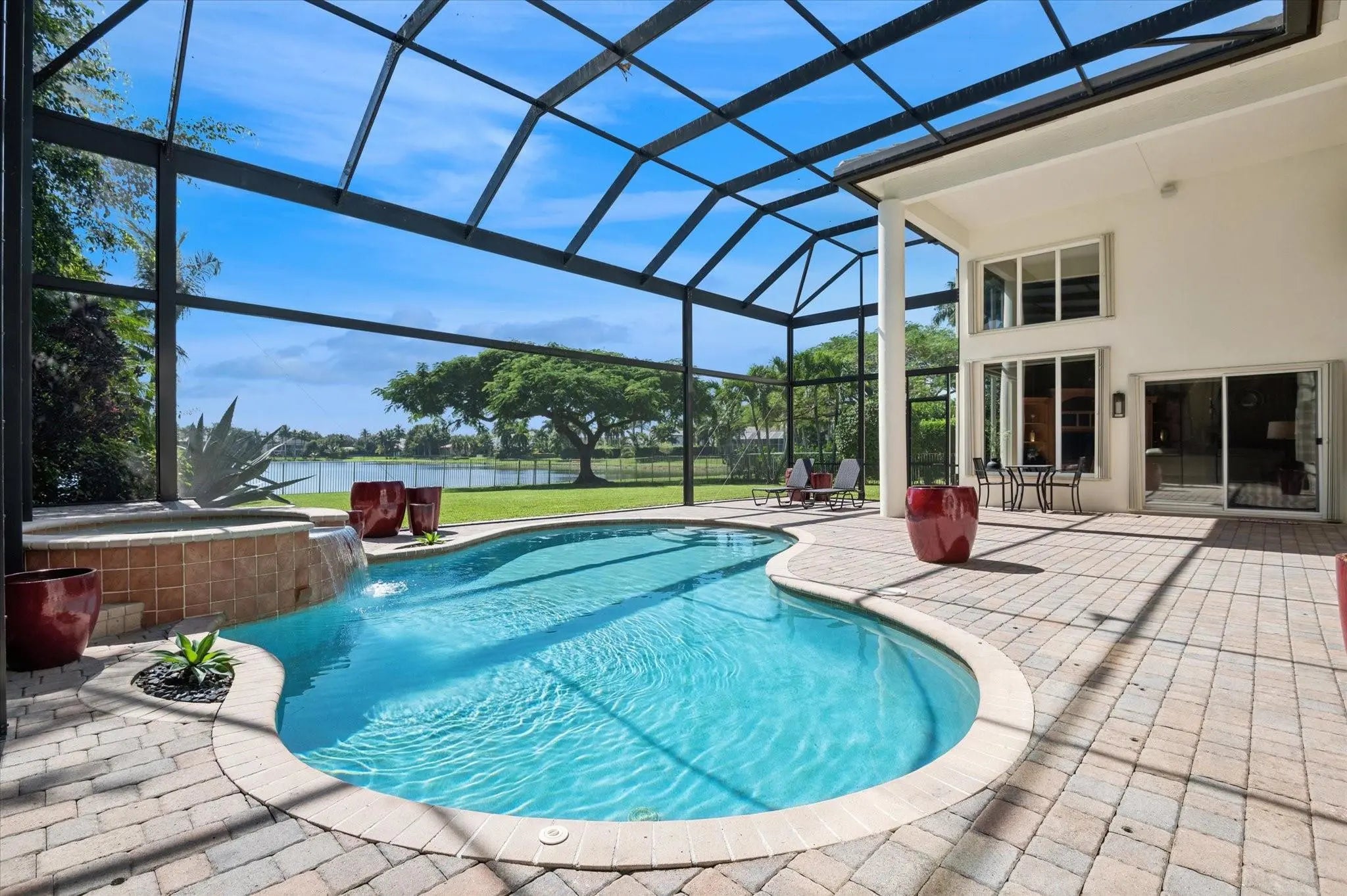 Experience breathtaking lake views from this elegantly designed residence offering refined finishes and spacious living. The grand foyer welcomes you with polished marble floors and a sweeping staircase w/custom wrought-iron railings. A sophisticated living area features a cozy fireplace and multiple custom built-ins, flowing into a chef-inspired kitchen beautifully appointed w/premium wood cabinetry and granite countertops. The 1st floor primary suite provides tranquil water views, complemented by a private den/office and an additional guest bedroom. Upstairs, find 3 generous bedrooms, 2 full baths, and a large open loft offering panoramic lake vistas perfect for additional living or work-from-home space. Roof was completed in 2024. Full house generator.