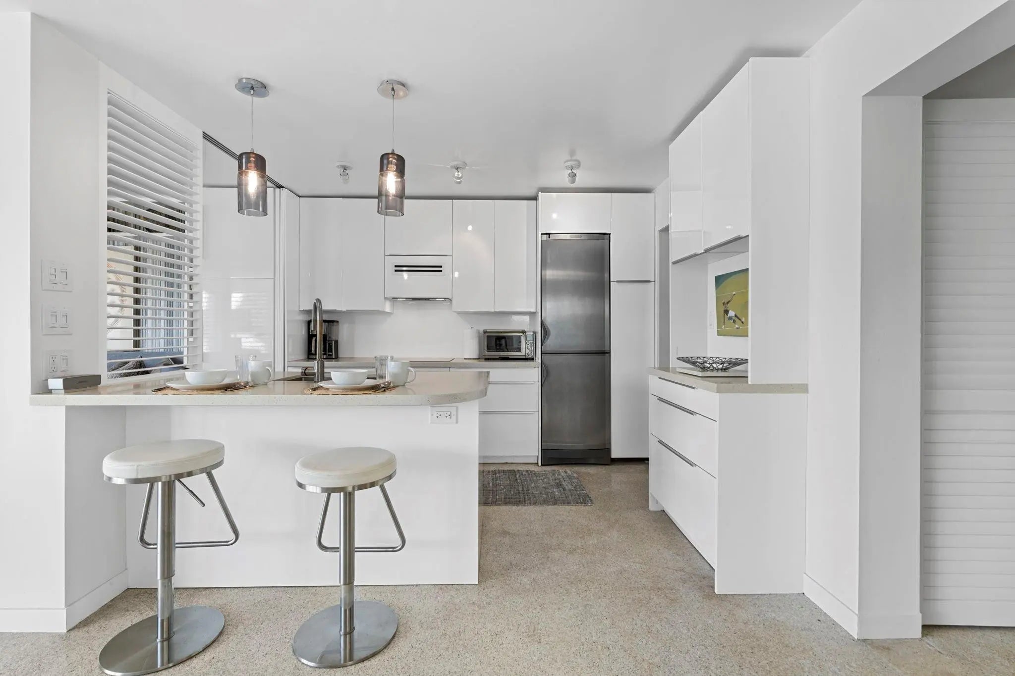 Enjoy one of the best views of the Intracoastal from your beautiful one bedroom/den apartment being offered fully furnished available March 23, 2026 through December 23, 2026. This waterfront apartment was previously featured in a magazine and has been professionally updated featuring high-end furnishings, artwork, and appliances, including washer/ dryer,The small community is gated and features inground pool, tropical landscaping, chairs and tables on the seawall overlooking the Intracoastal. It is currently tenant occupied but will be available March 23, 2026 through December 23, 2026. Panama Club is close to the beach, restaurants, shopping. Sorry, no pets.
