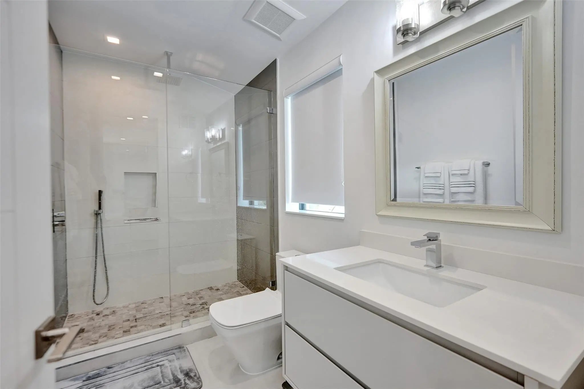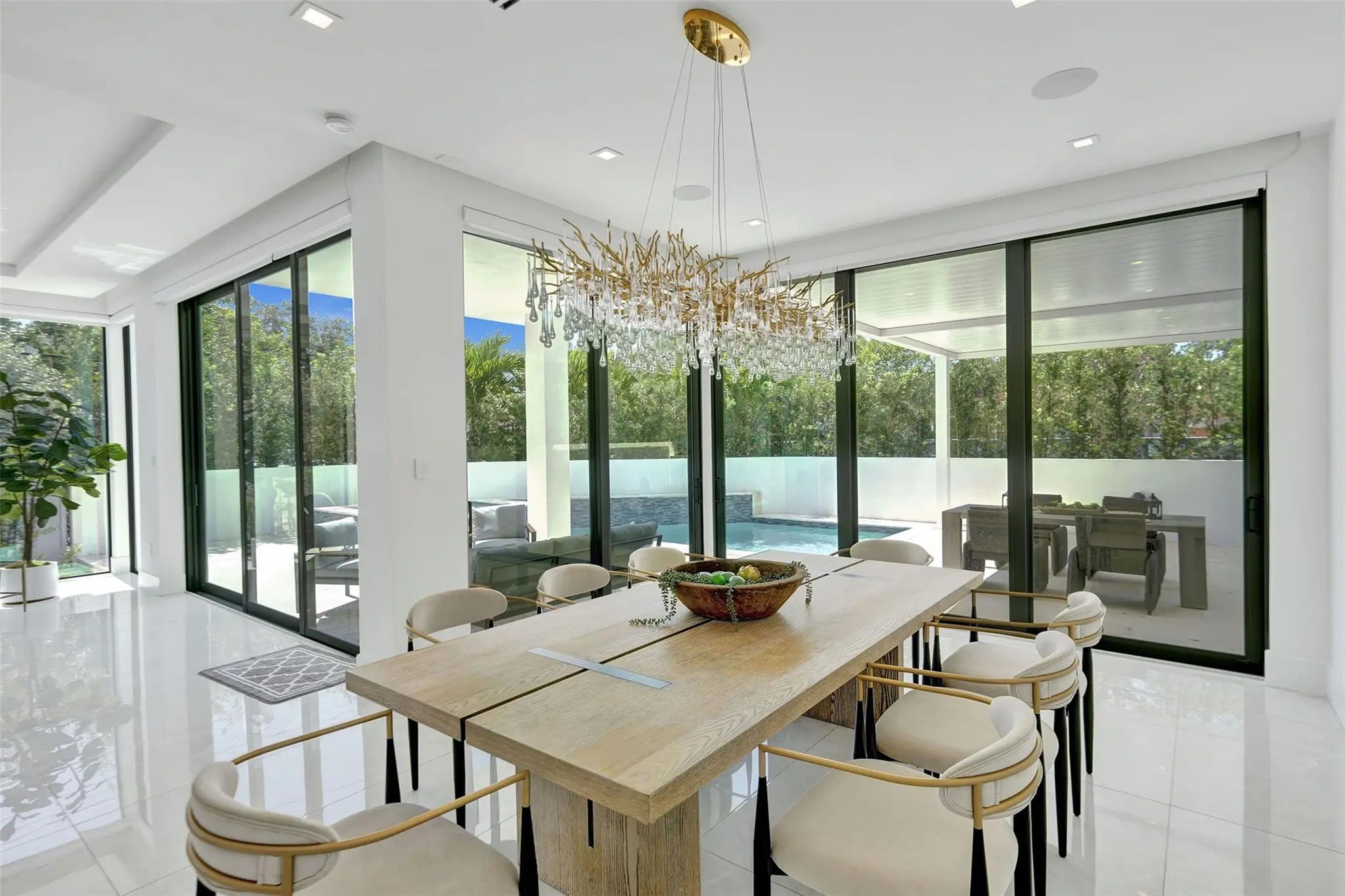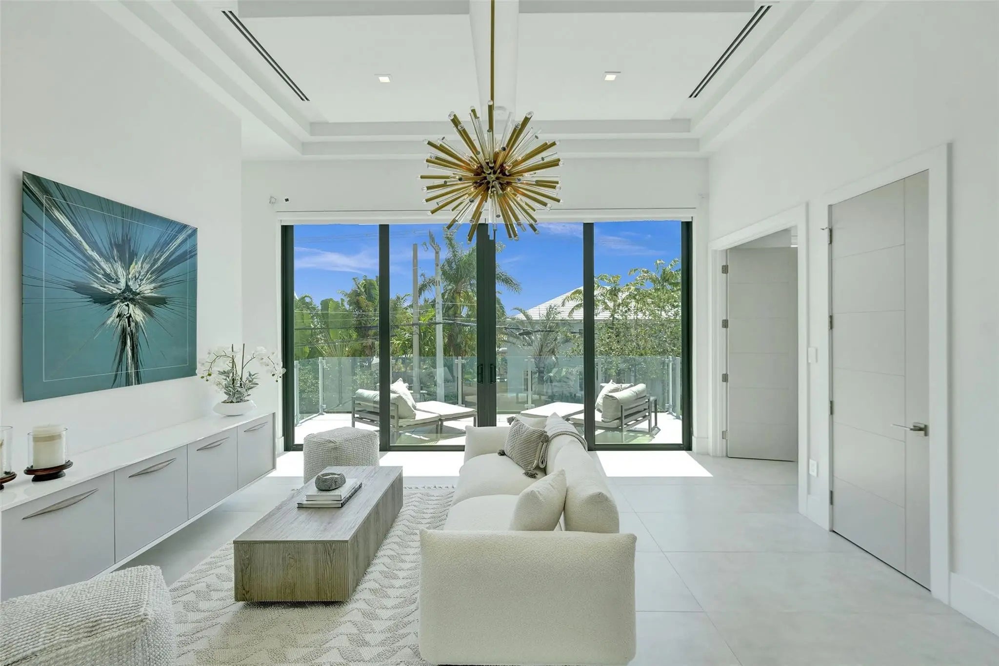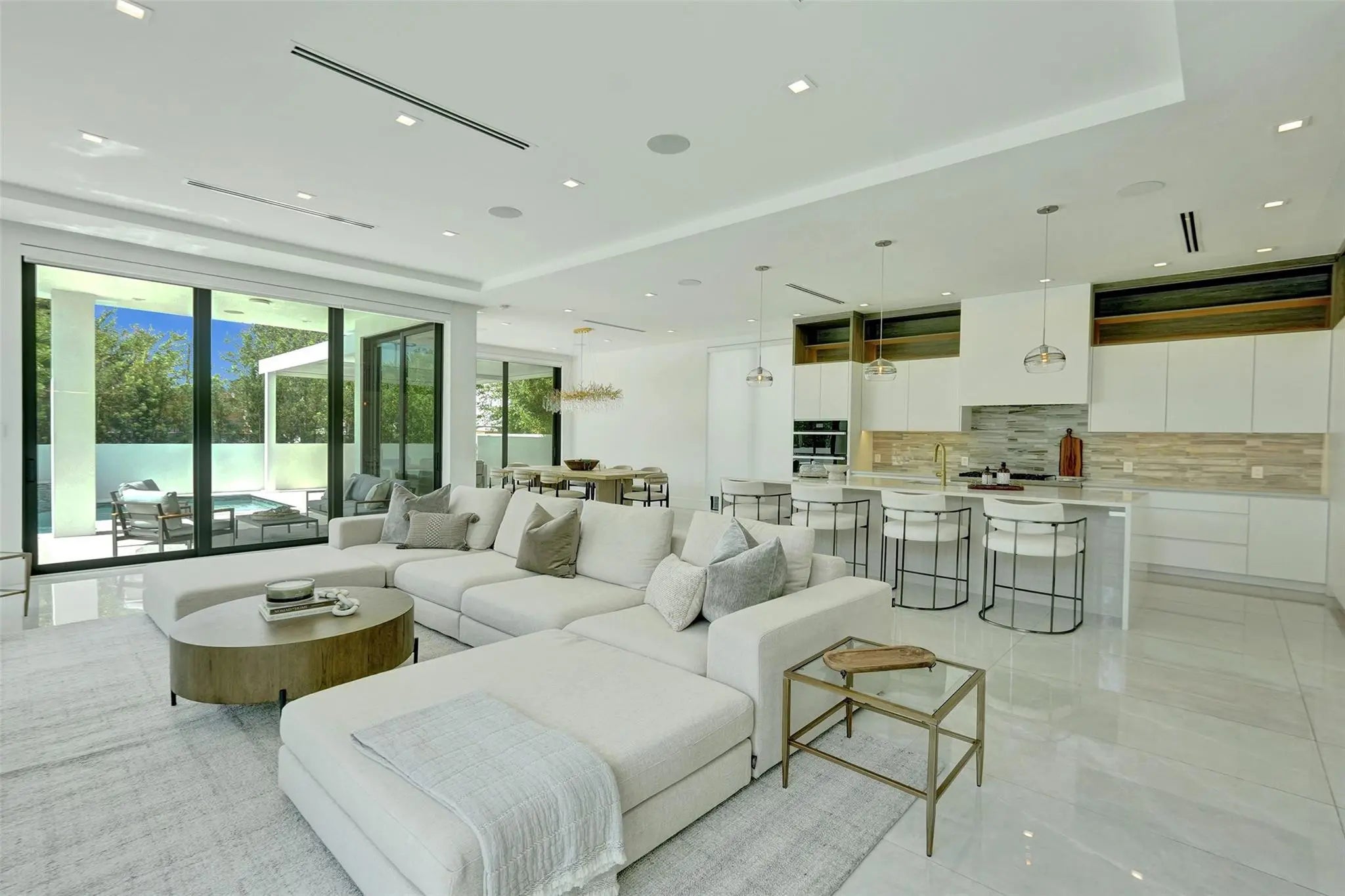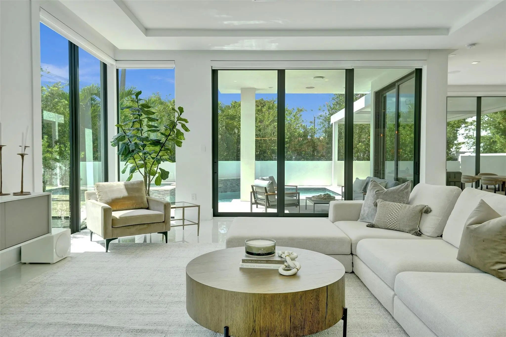 Experience the extraordinary in this elegant contemporary marvel located on a lush corner lot in charming Rio Vista. New construction home boasts over 10'5" ceilings, floor-to-ceiling high impact windows, & travertine terrace with saltwater pool & hot tub. Enjoy 3 spacious balconies, en-suite bedrooms, & an upstairs loft/living area. The primary suite features 2 walk-in closets, a rainfall shower, a soaking tub, and more! The gourmet kitchen includes top-tier Jenn-Air appliances, a 10' island, a wine fridge & more! Fully integrated with a SmartHome system, automated blinds, a security system, a mudroom, a 2 car garage, gated golf cart space, a water filtration system, a generator, astro turf dog-run & more! Just steps from parks, canals & watch club!Minutes to Airport, Las Olas, & beach.
