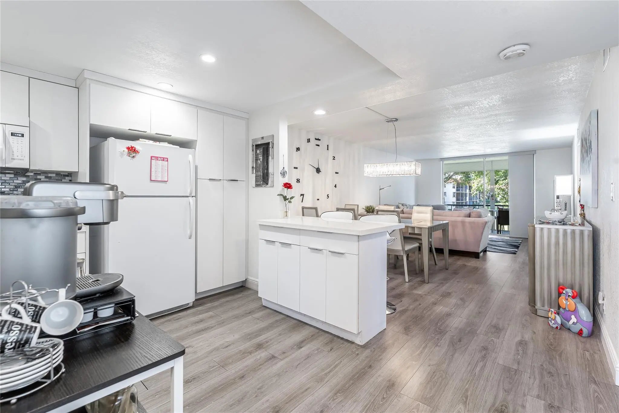 BEAUTIFULLY UPDATED 2BR/2BA bright corner apartment. Enjoy sunsets overlooking Par 3, lush, 11th green. Wide Open Kitchen features high ceiling, glass tile backsplash and large snack bar. Fully & very nicely furnished. 100% vinyl plank flooring throughout. 2 updated showers. 3 TV's. Recreation Lease PAID IN FULL. Amenities include Restaurant, Billiard Room, Bbq/Picnic Area, Clubhouse, Courtesy Bus, Exercise Room, Heated Pool, Library, Putting Green, Sauna, Shuffleboard, Tennis, Pickle Ball, Vehicle Wash Area, Electric Car Charging Station. Close to shopping, dining & highways. 15 min. to the beach. COMFORTABLE AND TURNKEY! ALL YOU NEED IS YOUR TOOTHBRUSH! (NEW ONE TO BE PROVIDED)