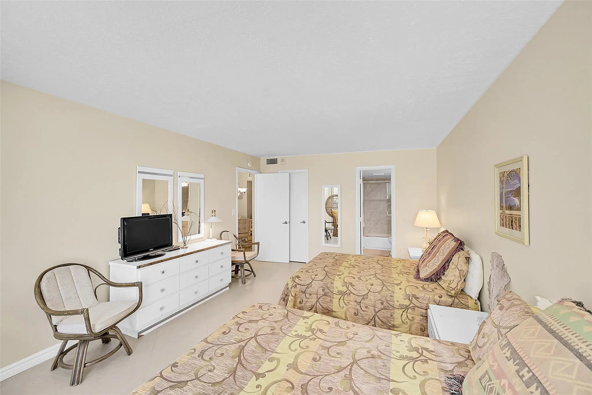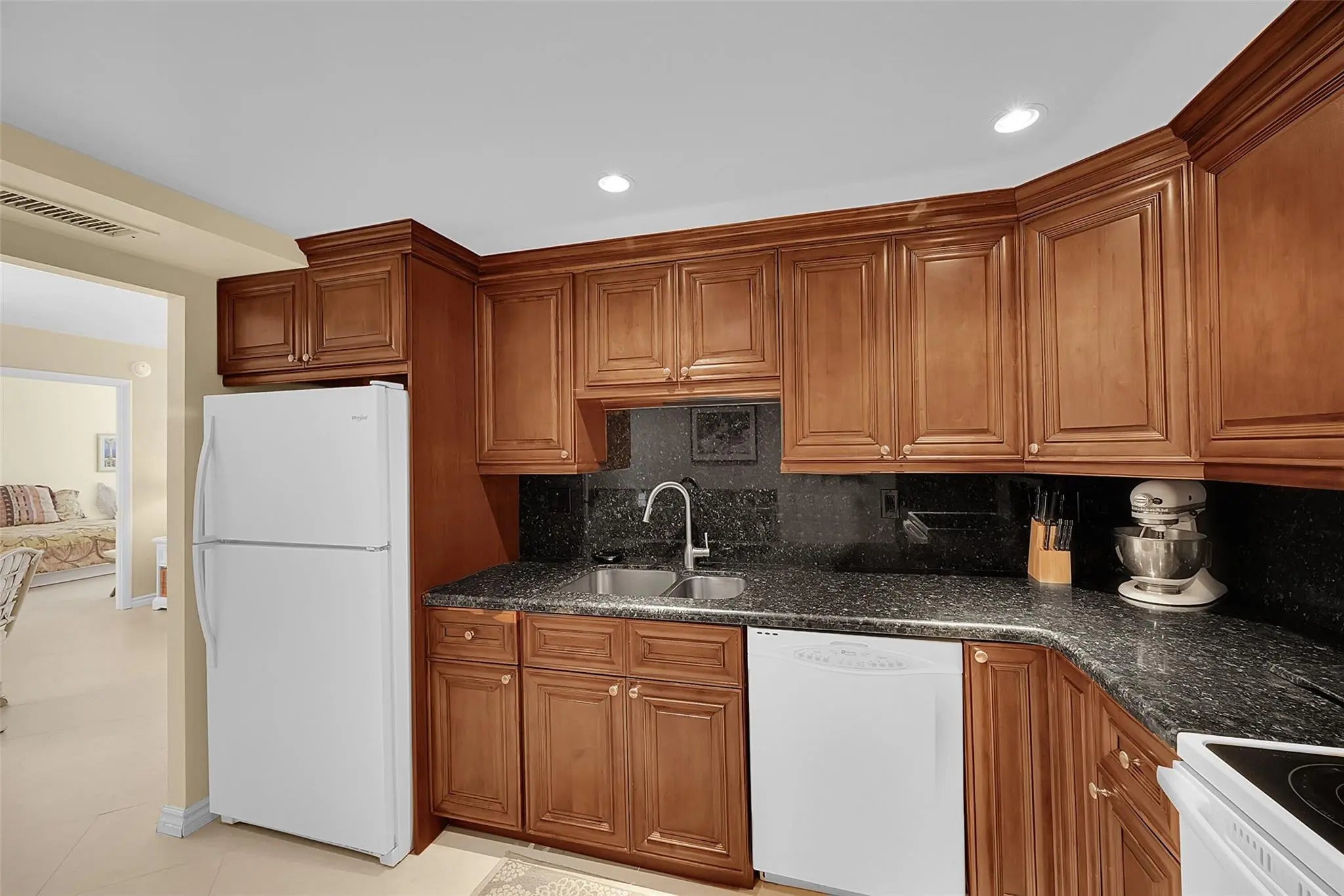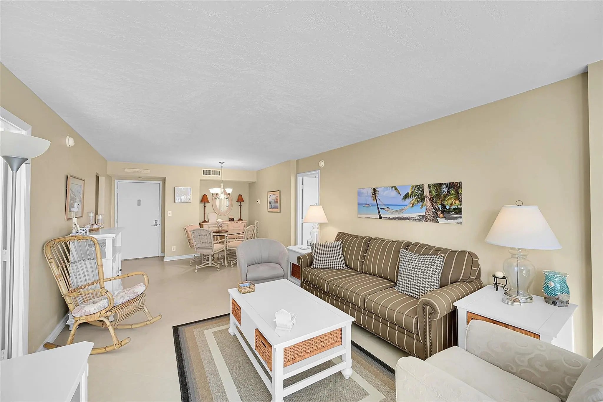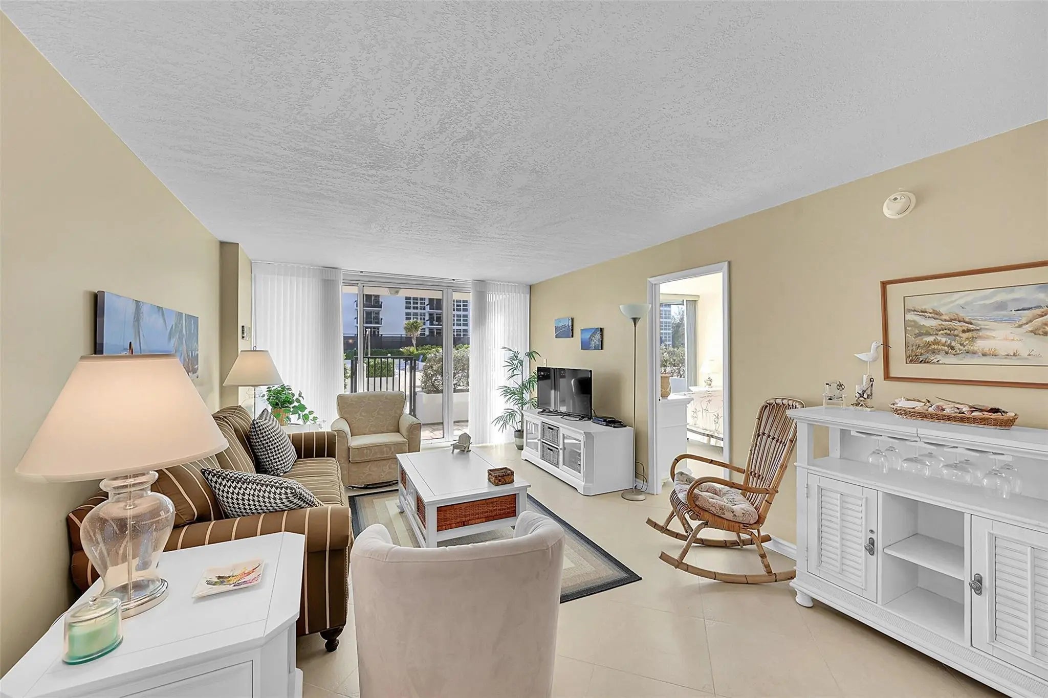 Welcome to coastal living at its finest in this 2 bed / 2 bath condo in the heart of Pompano Beach. This desirable residence offers a bright, airy interior and a functional floor plan designed for a relaxed lifestyle. Featuring black granite countertops, cherry wood cabinetry, tile flooring, and floor-to-ceiling hurricane-impact sliders. Both en suite bathrooms are fully renovated. Direct access to the amenities deck from the unit include 2 pools, tennis, pickleball, bocce, and BBQ area. Enjoy 24/7 security, fitness center, game room, and garage parking, Ideally located steps from the ocean where you can enjoy refreshing sea breezes. The building is situated near the revitalized Pompano Beach Pier with dining, shopping and entertainment. Perfect for year round living or a seasonal retreat.