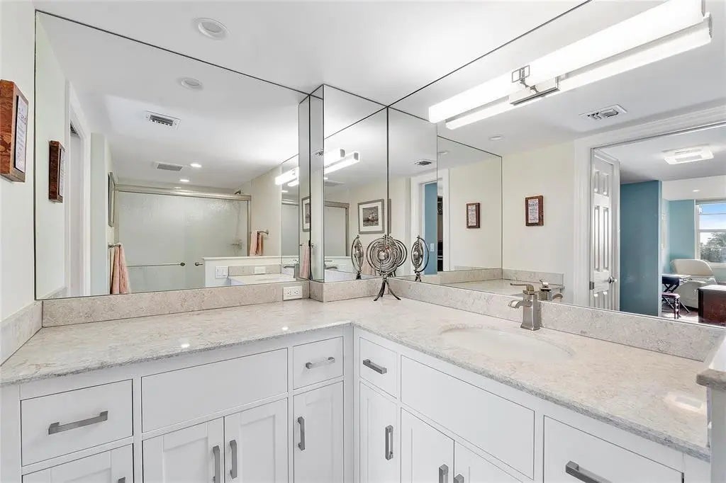 DECORATOR COMPLETELY REMODELED THREE BEDROOM SPLIT PLAN, TWO FULL BATHS & 1/2 BATH. All impact windows including sliders to screened porch. All ceilings have low profile recessed lighting in entire unit. Engineered wood floors. All bathrooms and kitchen updated. All substantial upgrades were fully permitted. THIS IS THE GENEROUS POPULAR "F" MODEL. Custom window shades with blackout features. Pet friendly, 2 pets allowed! Separate laundry room with pocket door. 2 heated pools. 4th floor view of the 13th and 14th holes on one of the 2 golf courses. Recreational amenities and high speed wifi included in fees. No assessments. 40 year milestone has been completed. Strong reserves. New roof. Charming walkable neighborhood. Close to Top Golf and many great restaurants. Just 5 miles to the beach!!