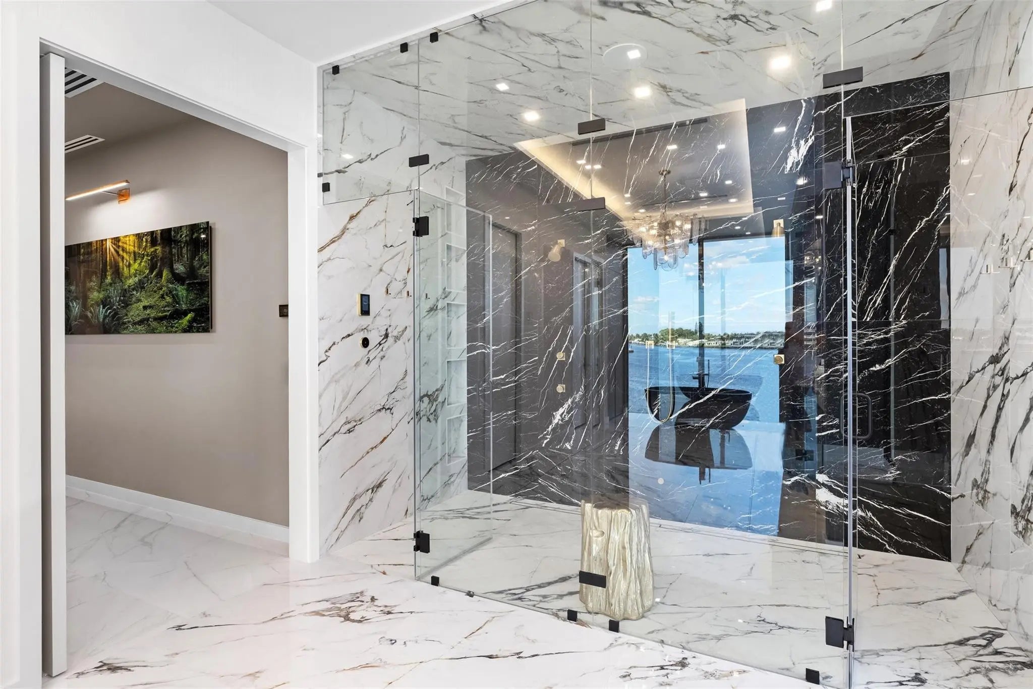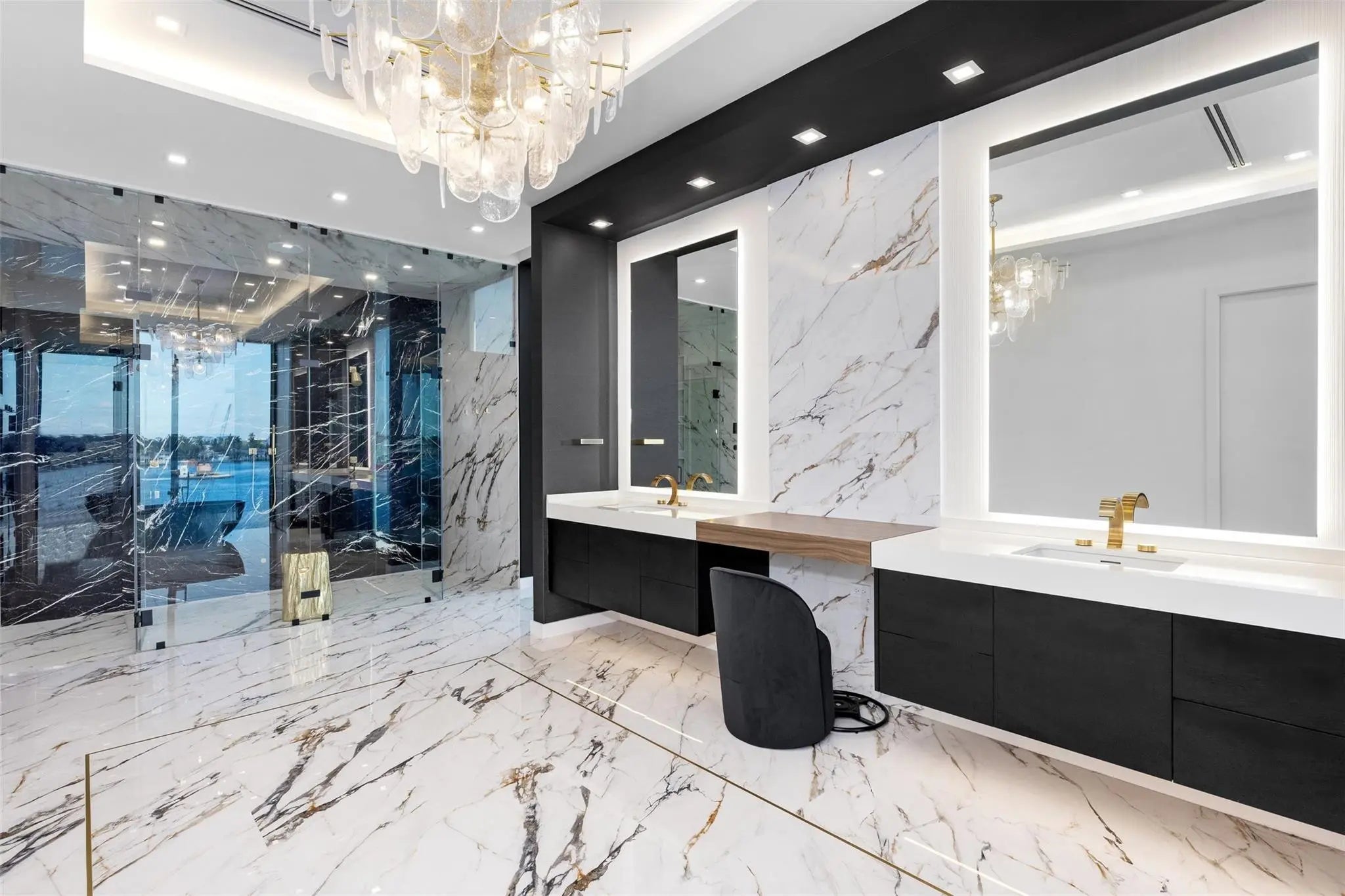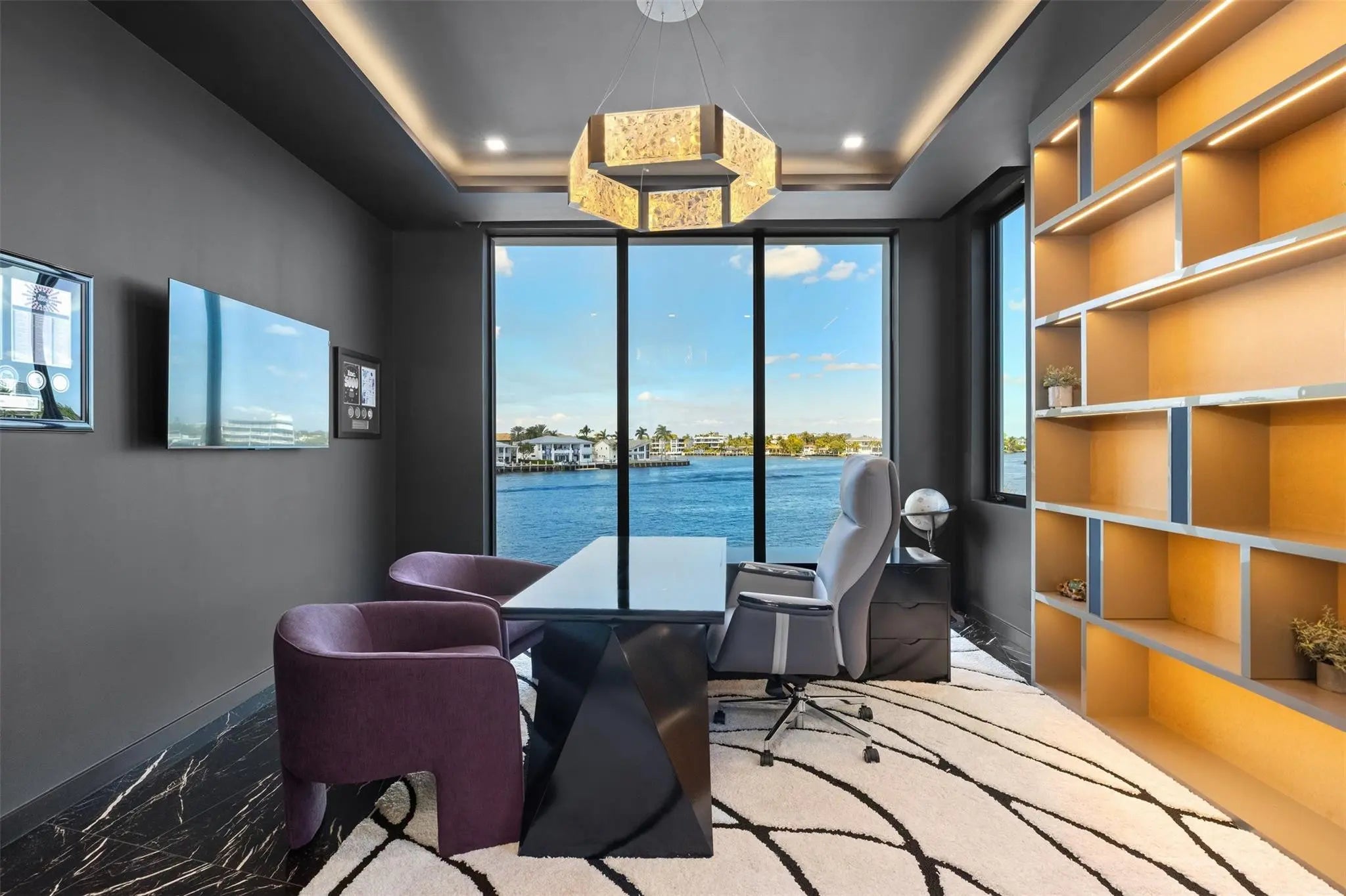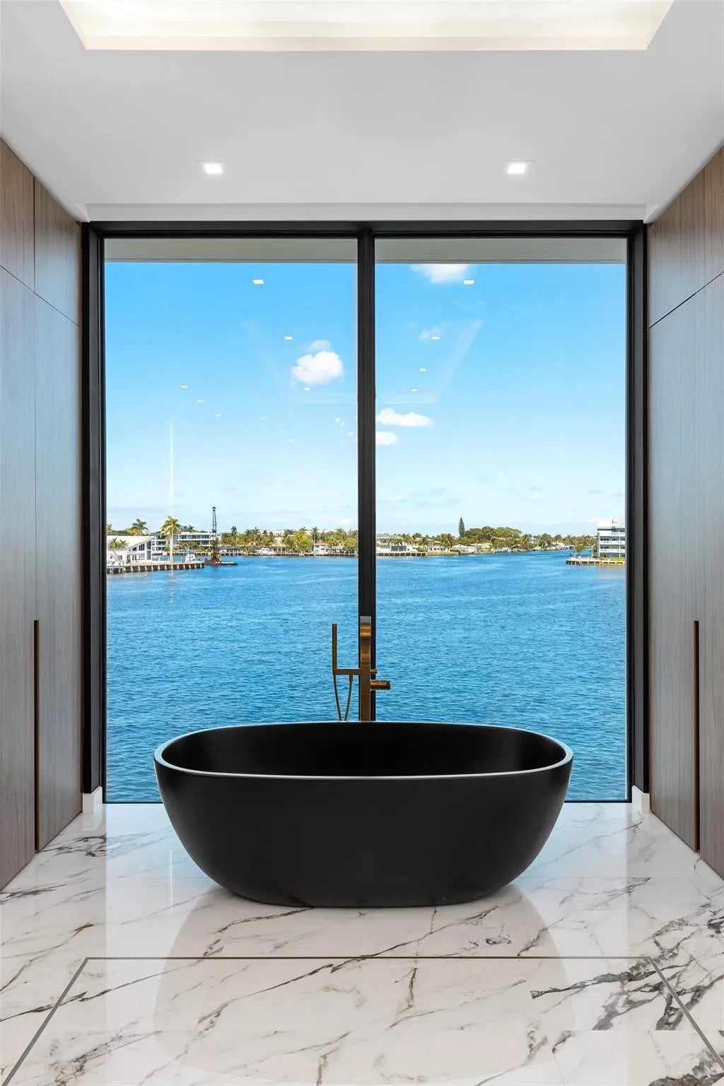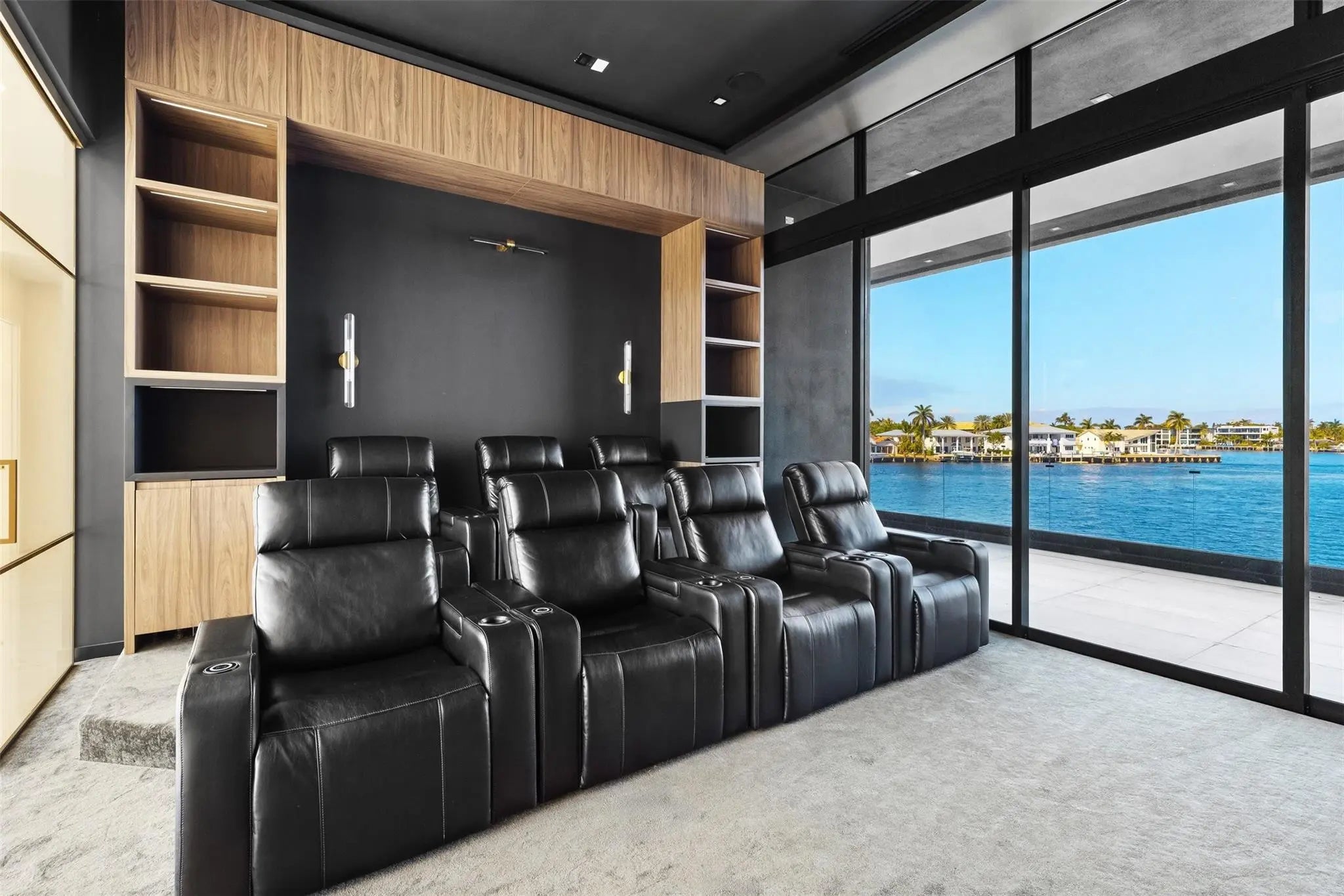 Positioned along 90 feet of prime Intracoastal frontage, this newly completed coastal contemporary estate is defined by its unobstructed, open bay views. Expansive walls of glass dissolve the boundary between indoors and out, capturing sweeping vistas from nearly every room and filling the home with natural light from sunrise to sunset.Thoughtfully designed for both refined daily living and elevated entertaining, the open-concept interiors are anchored by a dramatic architectural staircase and enhanced with bespoke finishes throughout. A chef’s kitchen with a full catering pantry, private theater, home office with floor to ceiling glass and waterfront bar complement the seamless flow to the resort-style pool terrace, where fire features and a summer kitchen overlook the wide-open bay.